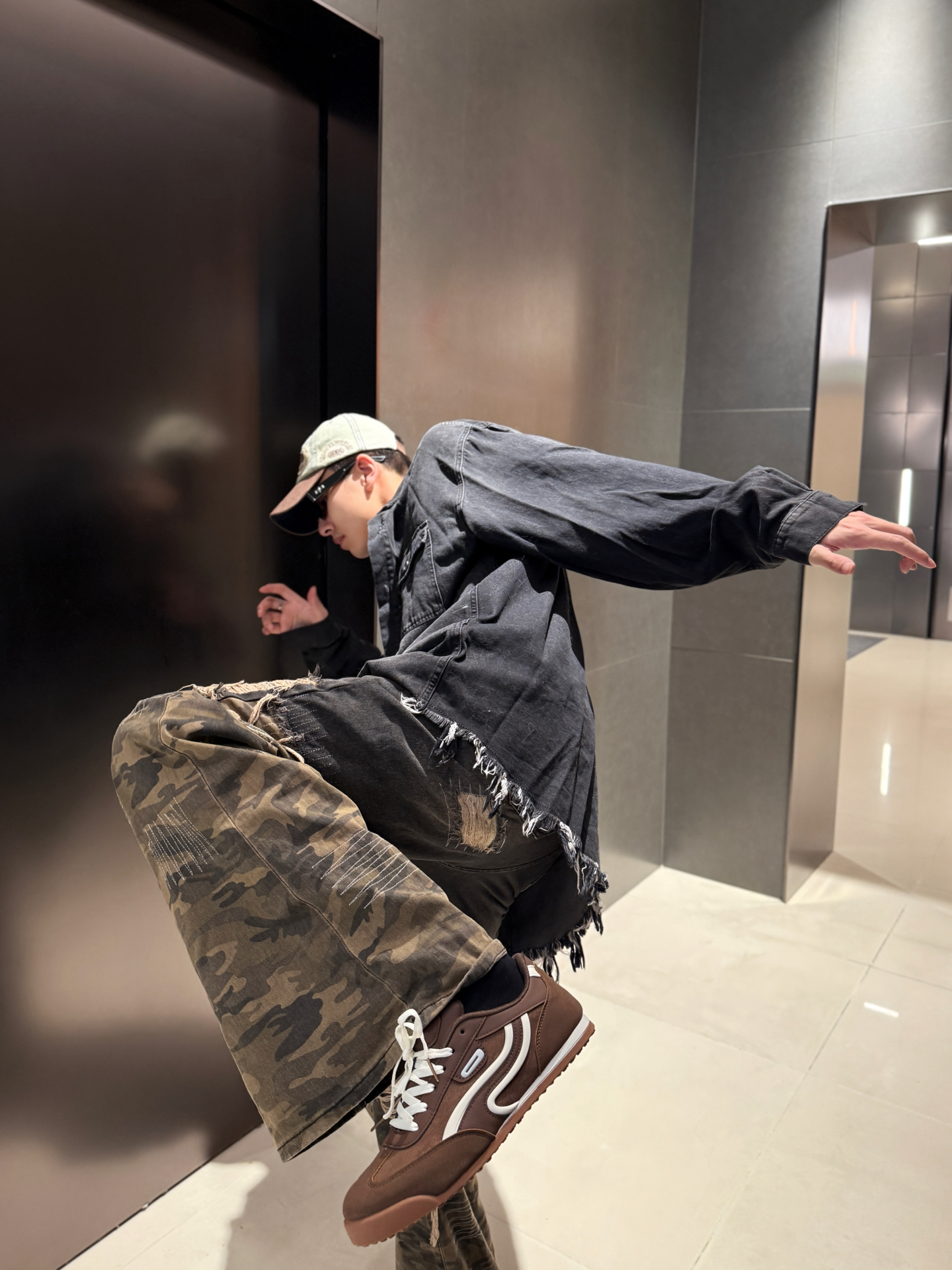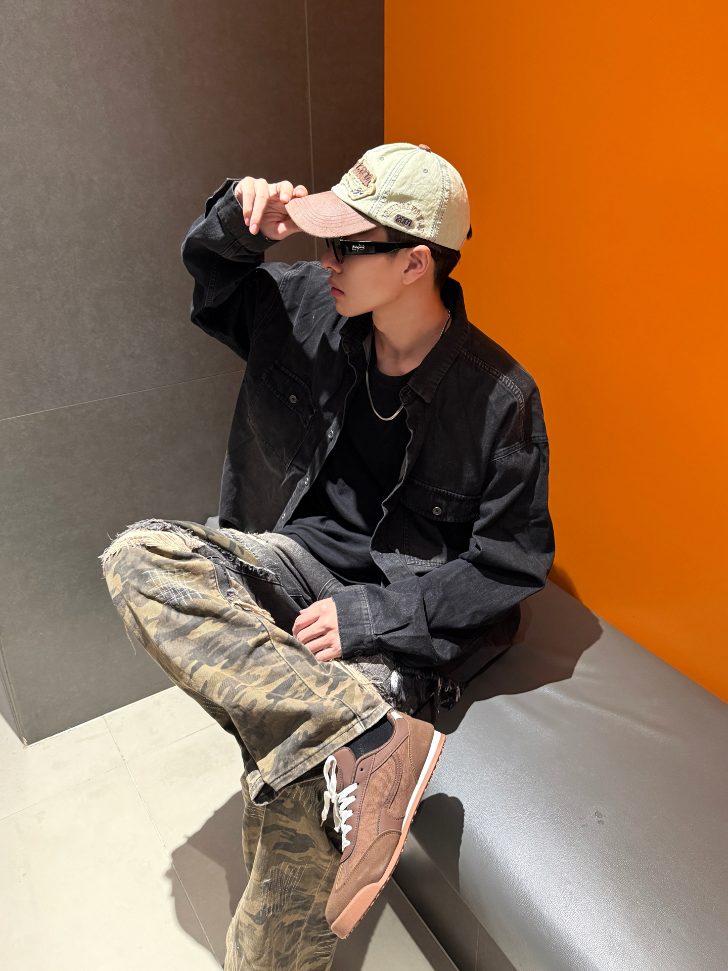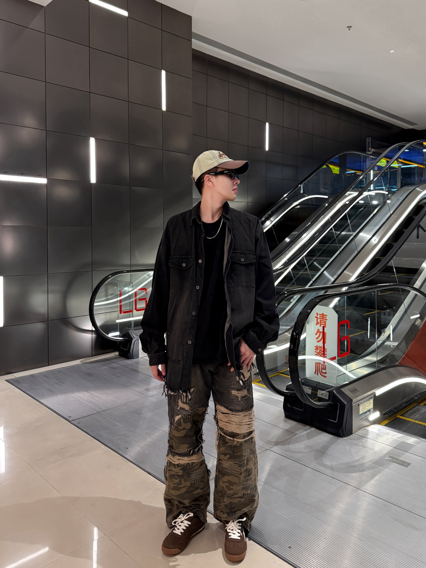 家人们谁懂啊!这套复古风穿搭直接戳中我的心巴💥 做旧黑牛仔衬衫版型巨宽松,美式工装感拉满,内搭黑T+金属项链,层次感这不就来了~ 裤子也是超绝迷彩+破洞+做旧的拼接设计,简直是复古潮人的天菜👍 裤型宽松还显腿长,走在街上回头率直接拉满!脚上这双棕色复古鞋也很绝,来自 #TCELLARS 的设计和整体风格完美呼应,复古感瞬间拉满~ #Tcellars #预热一下秋冬穿搭 #请把这双鞋焊在脚上 ...