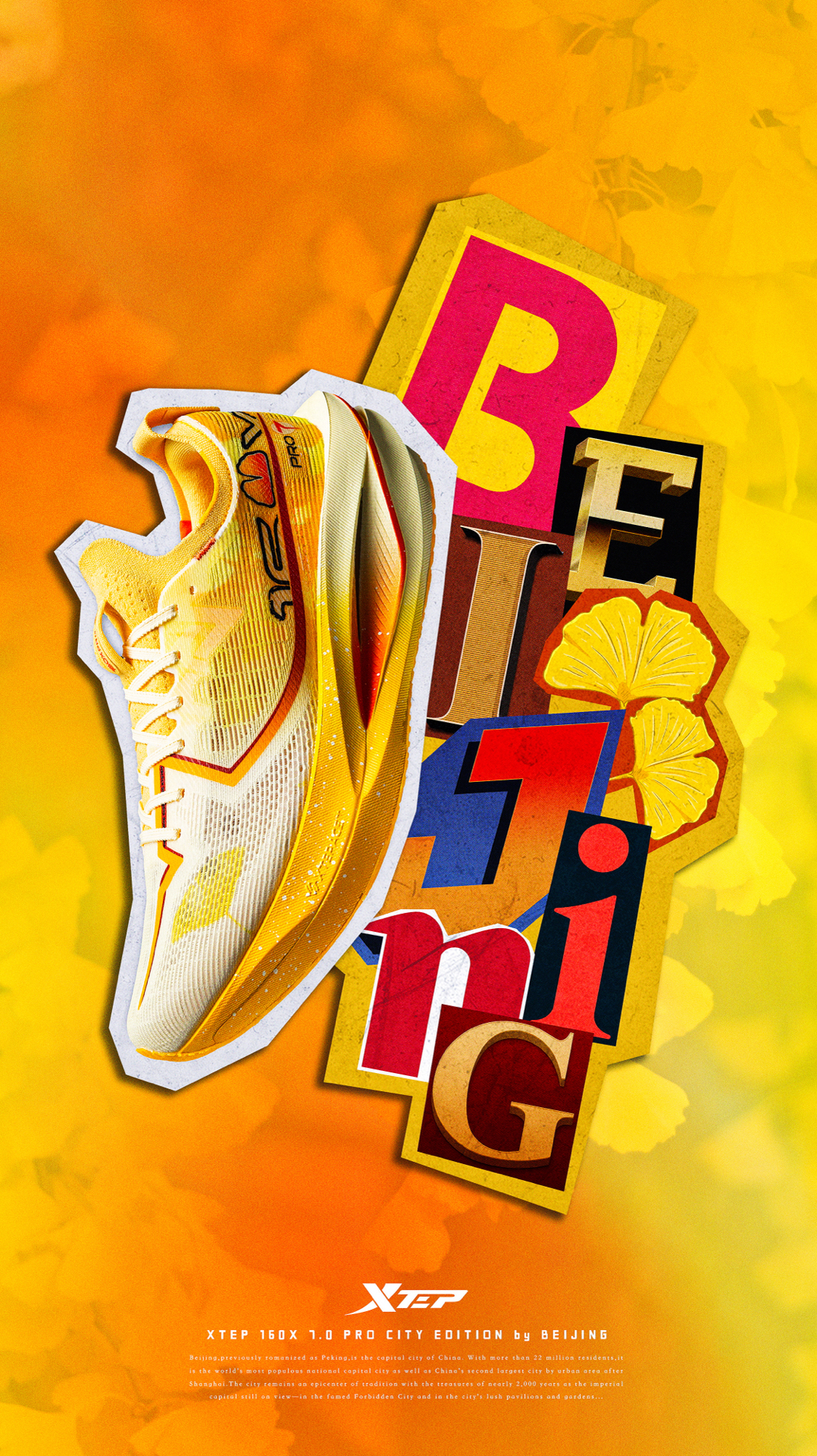 特步的160X 7.0 PRO这次的《北京》限定,真的满满的有一种“皇城根儿”的调调。鞋面黄色的涂装很有故宫的色系味道,同时也呼应了秋日北京银杏叶满地的氛围感。特别是鞋垫还做了具象化的设计,很有细节质感。 作为一款专为追求卓越成绩的跑者打造的高性能跑鞋。该鞋款采用XTEP ACE+双密度中底科技,上层提供柔软回弹脚感,下层具备更强的韧弹特性,整体回弹性能较上一代提升15%。内置GT700黄金碳板...
