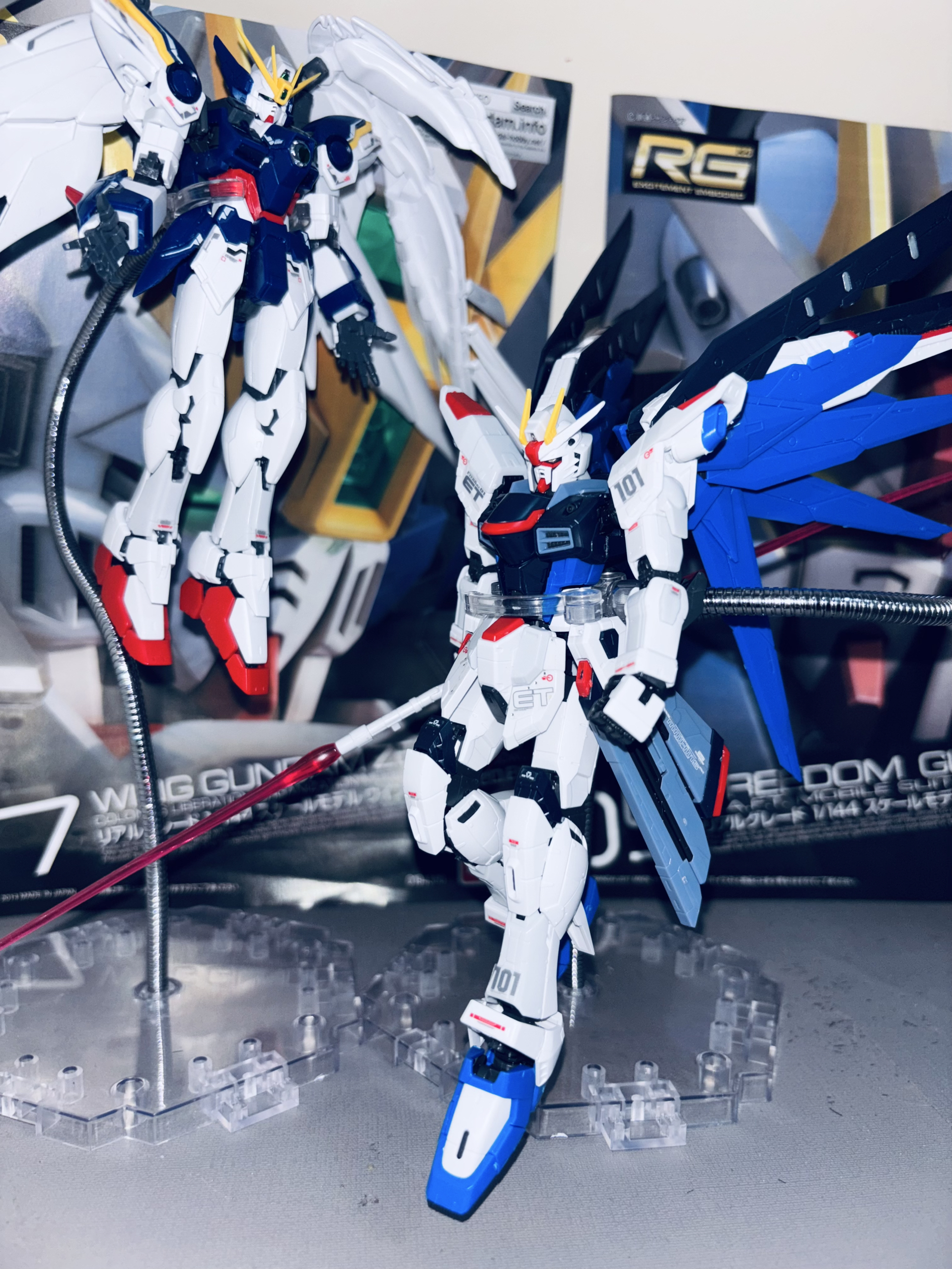 RG飞翼零式高达 标志性的巨型羽翼还原度极高,多段可动+大尺寸设计,摆姿势时“天使降临”的氛围感拉满;分件分色精细,素组就能呈现出蓝白红的清爽配色,隐藏水口减少了后期处理的麻烦;腿部变形机构还原TV版机设,关节可动性足够支撑战斗、悬浮等动态pose。 RG自由高达 背部推进器+蓝色光翼的展开结构是亮点,还原了动画中“全装展开”的帅气姿态;没有网上说的那么脆弱,轻一点把玩完全没有问题;分色也做的非...