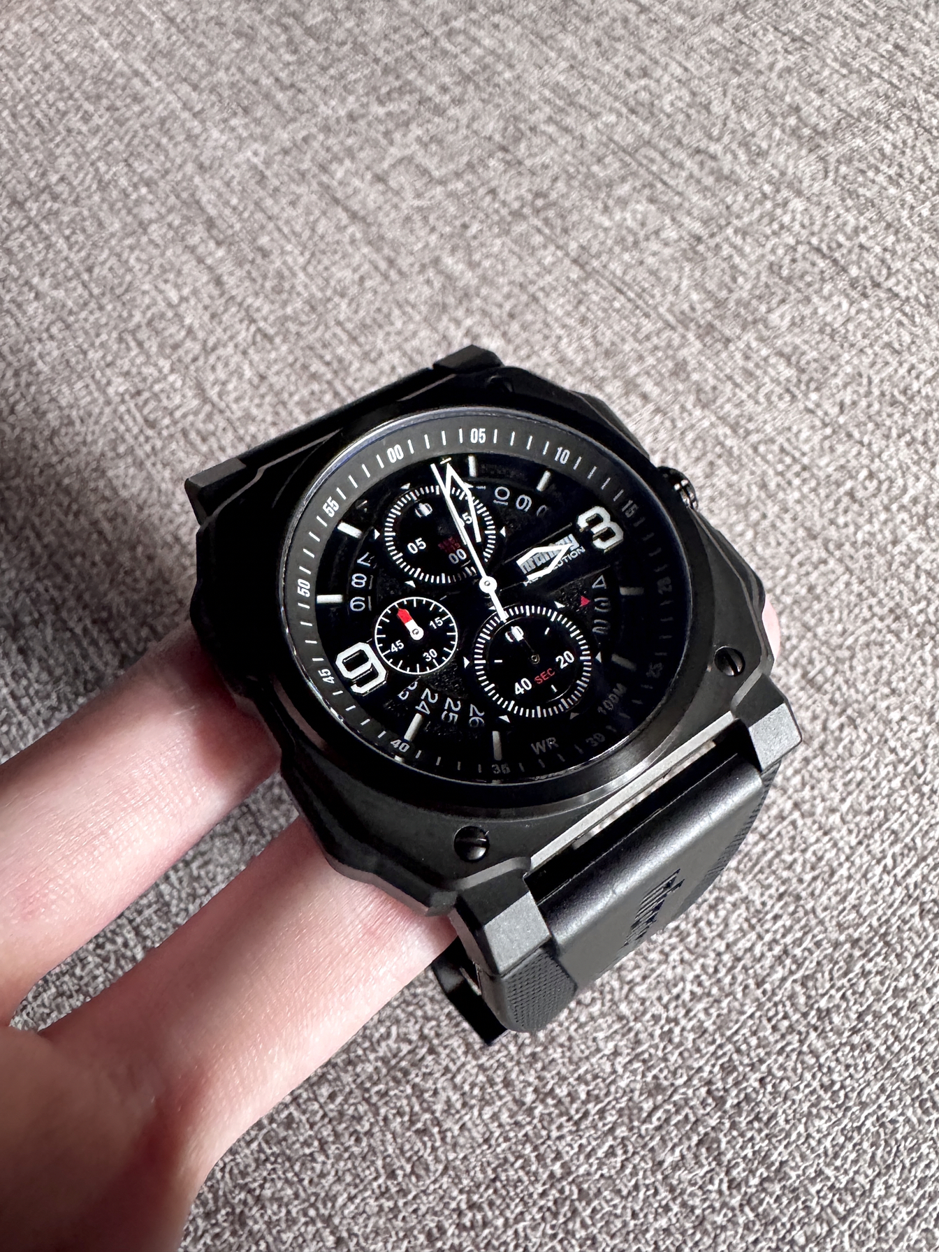 男孩子手上戴块表 气质一下子就上来了! 这块腕表⌚️ 我就觉得挺不错的 三眼六针设计 真滴蛮经典的 当你抬手看时间 细节清晰可见 硅胶表带 戴在手上还是蛮舒适的 通勤约会戴hin不错! 平时搭配衬衫、卫衣都不错