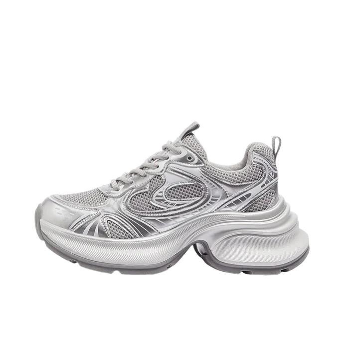 骆驼银熠老爹鞋,2025年春季新款户外休闲鞋,以其独特的设计和卓越的性能,成为时尚潮流的新宠。 产品特点 • 复古设计:这款老爹鞋的设计灵感来源于上世纪90年代的复古风格,搭配银色的外观,既复古又现代。鞋身采用优质皮革材料,触感柔软且耐磨,保证了鞋子的耐用性和美观性。 • 增高厚底:厚底设计不仅能够有效增加身高,还能提供更好的缓震效果,减少脚部疲劳。走在不平的地面上,也不会感到不适,让你每一步...