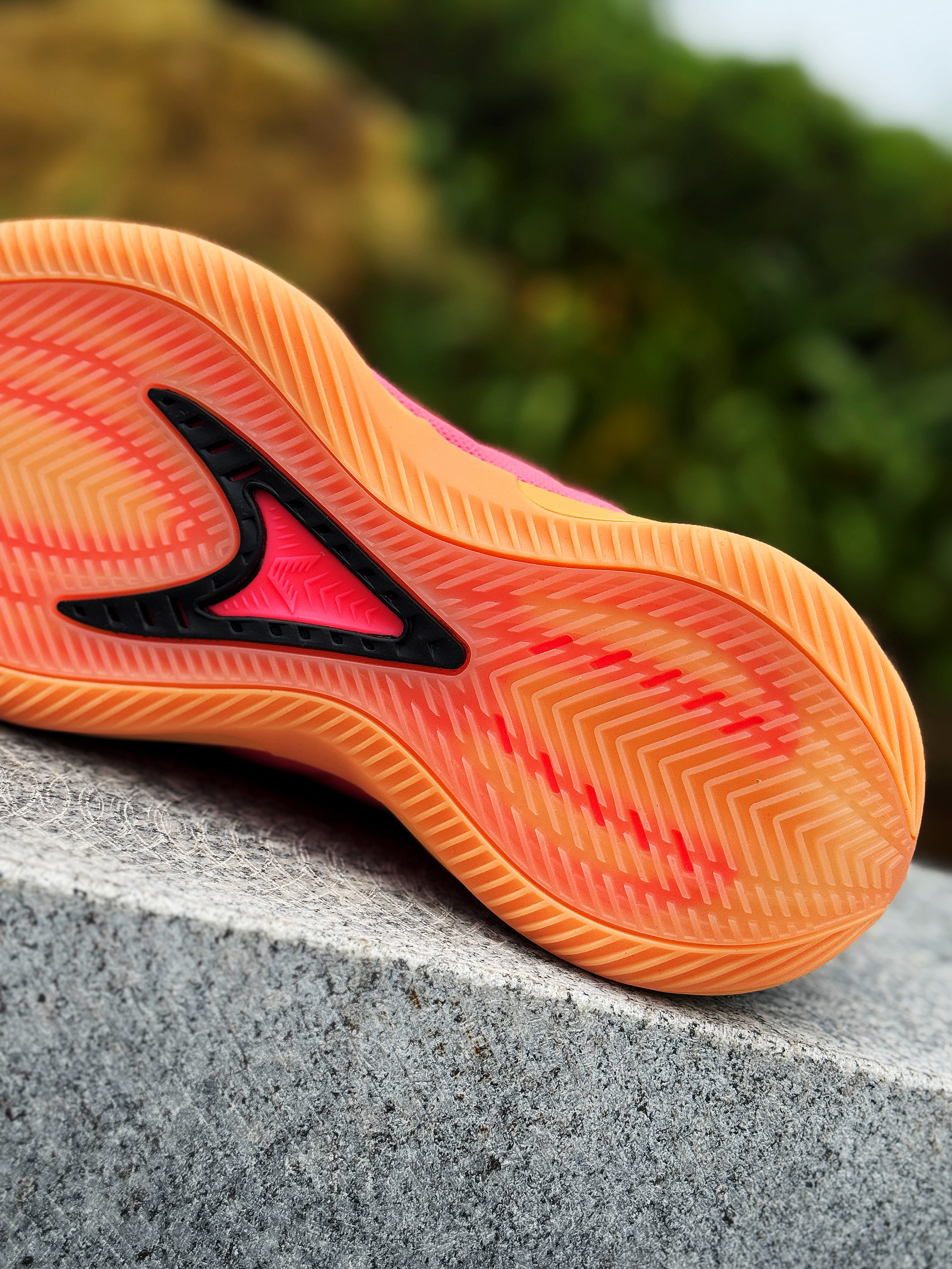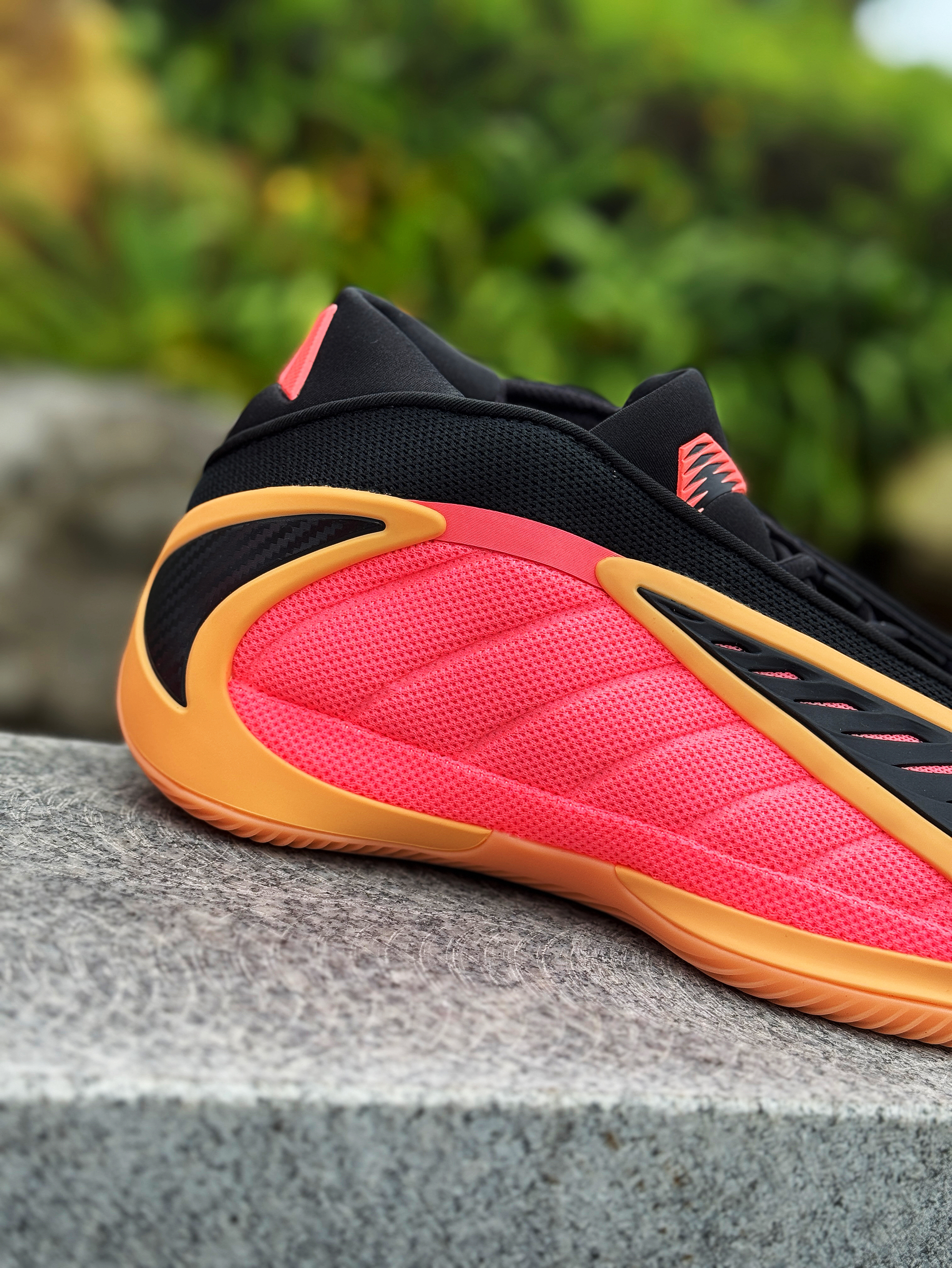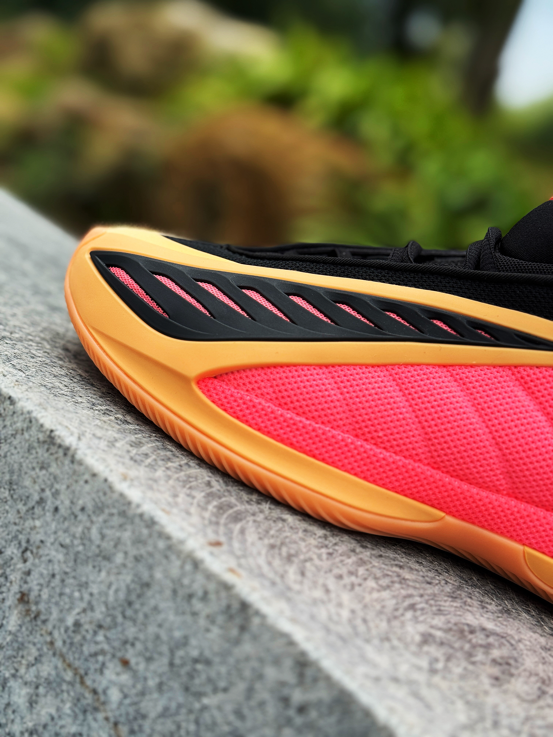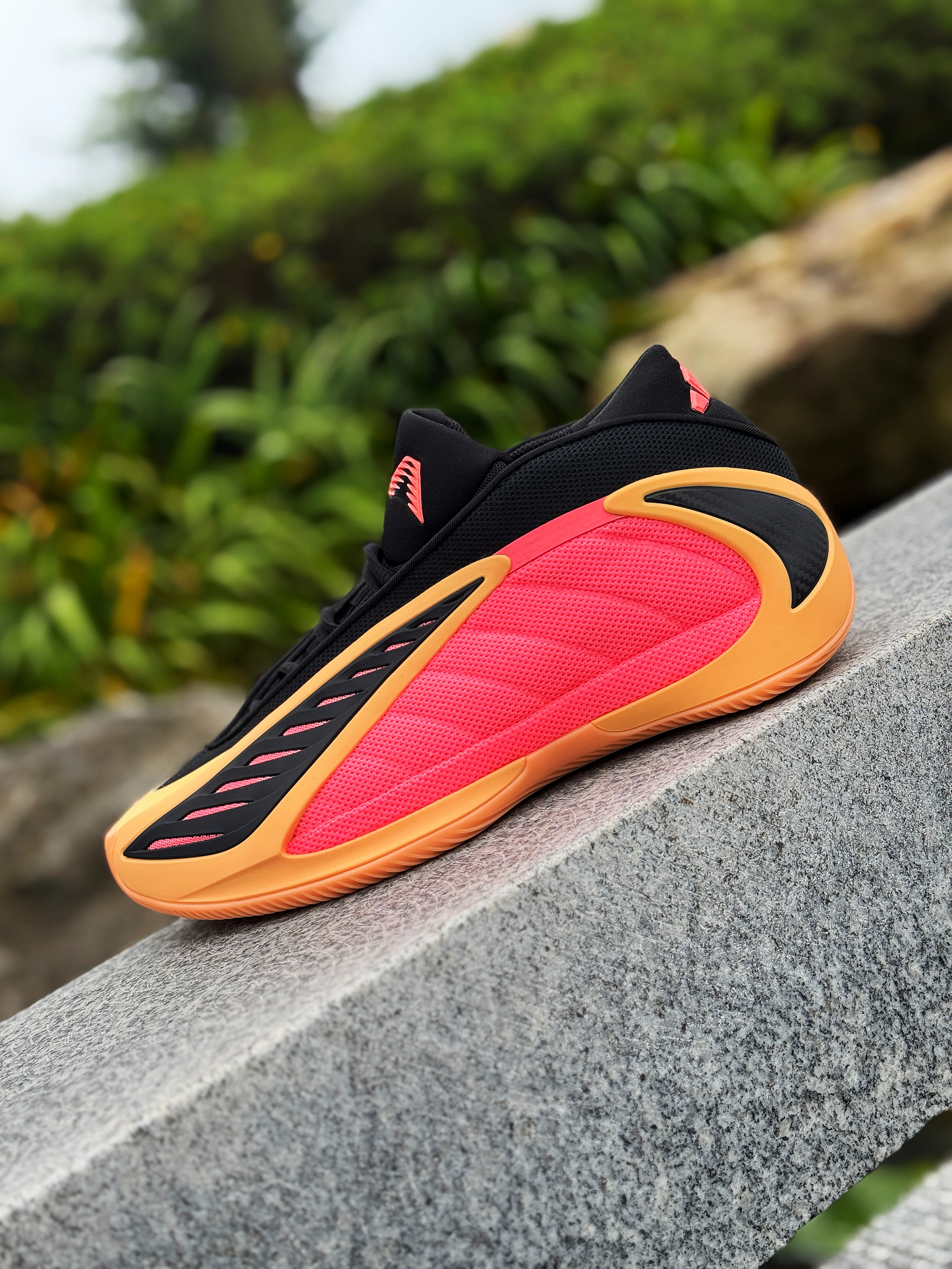 AE1可以说是我最近两年最喜欢的一款篮球鞋 也算是一款现象级的现代篮球鞋代表作!或许是一代给人印象太深刻了 二代拿到实物并没有很惊喜! 首发配色依然延续了“守护之光”的主题 橙色为主 黑色与粉色点缀 视觉效果还是很吸引眼球的! 侧面的獠牙式TPU设计以后个性十足 中帮鞋款相较于前作的确减重了不少 后跟港宝挺有意思 不完全是实心的填充 有一定调节作用! 鞋面感觉就是AE1 全掌LIGHTBOOS...