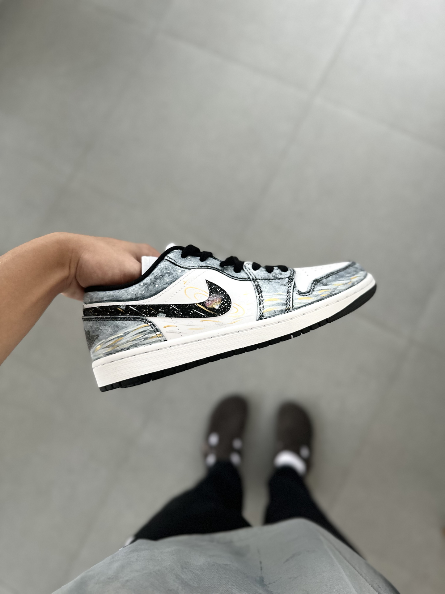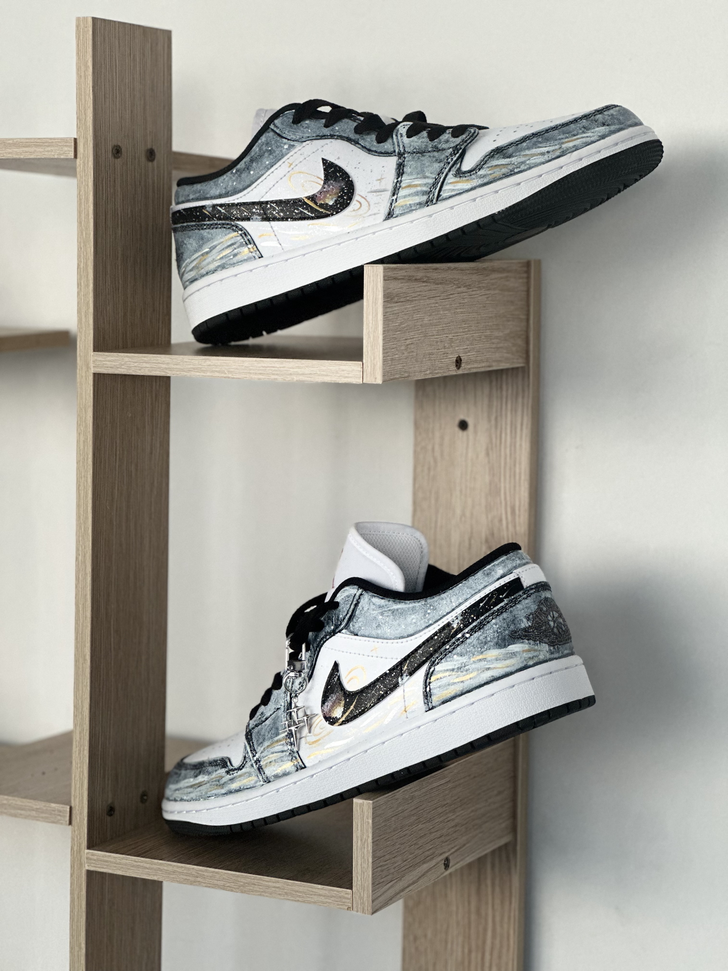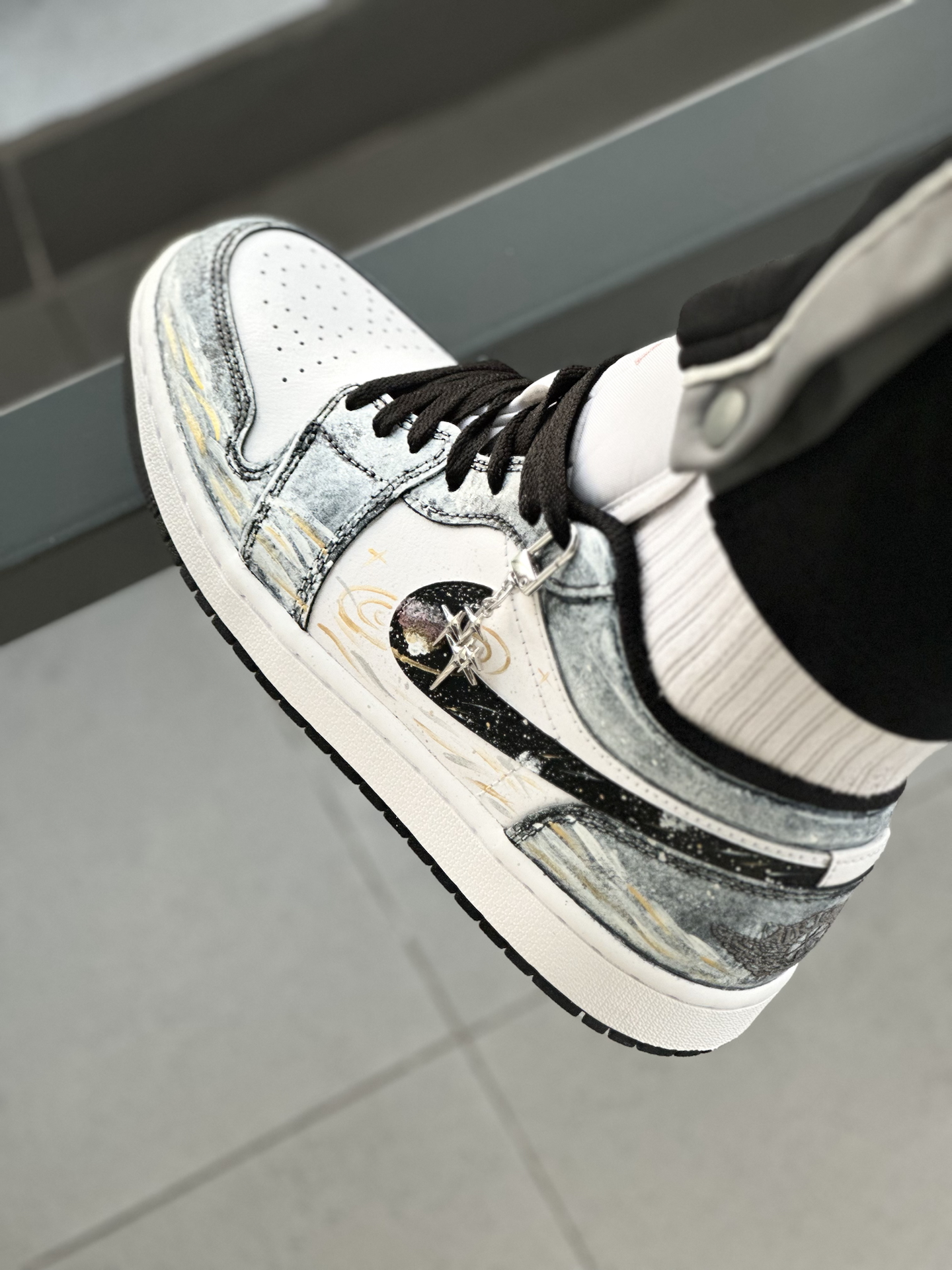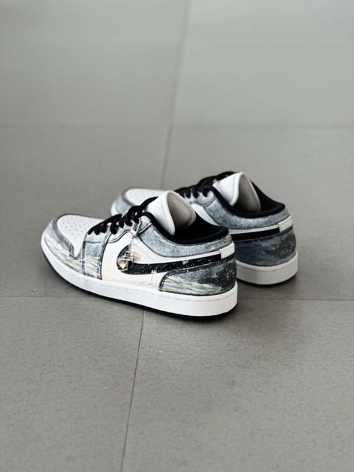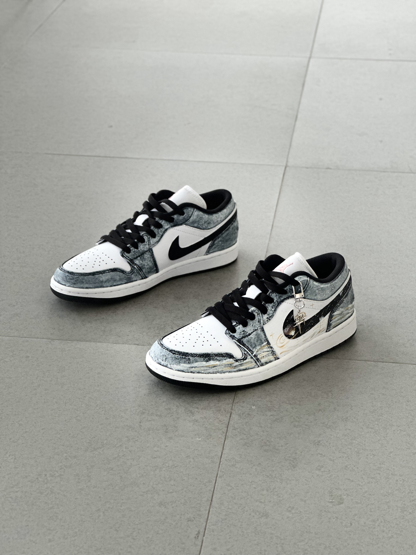 👟:【定制球鞋】Jordan Air Jordan 1 Low “星海漫步” 低帮复古板鞋 男女同款 黑白金 Hello,这里是Sam爱球鞋!今天给大家分享一款梦幻感拉满的定制AJ1板鞋 整双鞋就像把梵高的《星月夜》穿在了脚上,深邃的丹宁蓝💙鞋面搭配细腻的白金双色泼墨,仿佛将整片星空银河洒落在鞋面。独特的晕染笔触勾勒出星云的层次感,鞋带处悬挂的星星✨挂饰更添浪漫气息。 对于日常通勤穿搭来说,...