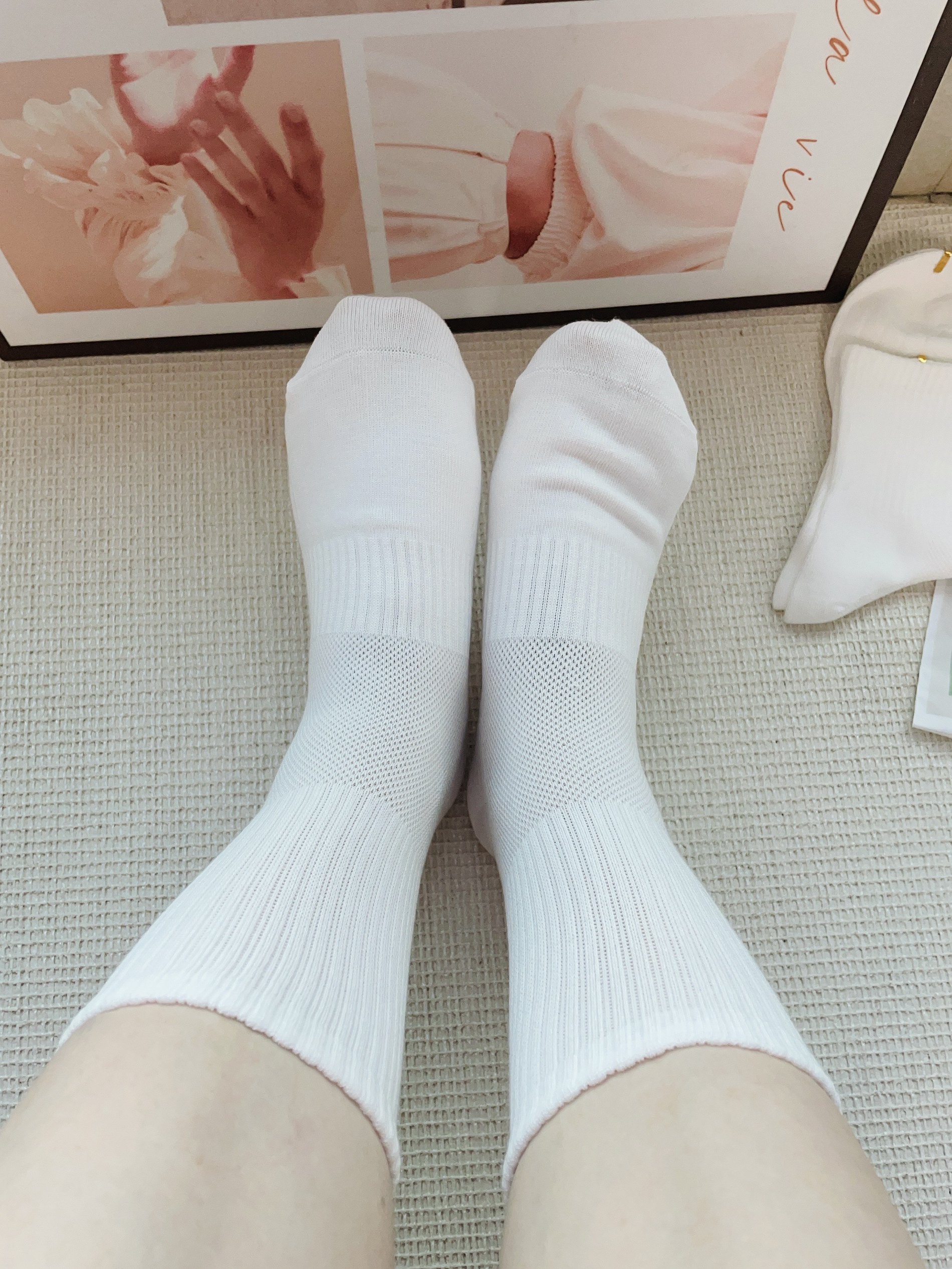 秋冬天了一天比一天冷了 早晚温差是比较大的 当然要准备好新的袜子穿啦 这款袜子白色简约干净蛮好看的 我摸着面料柔软 细节做的可以 没有多余线头 上脚穿舒服 也不会勒脚啥的不错 秋冬天随便搭板鞋都可以