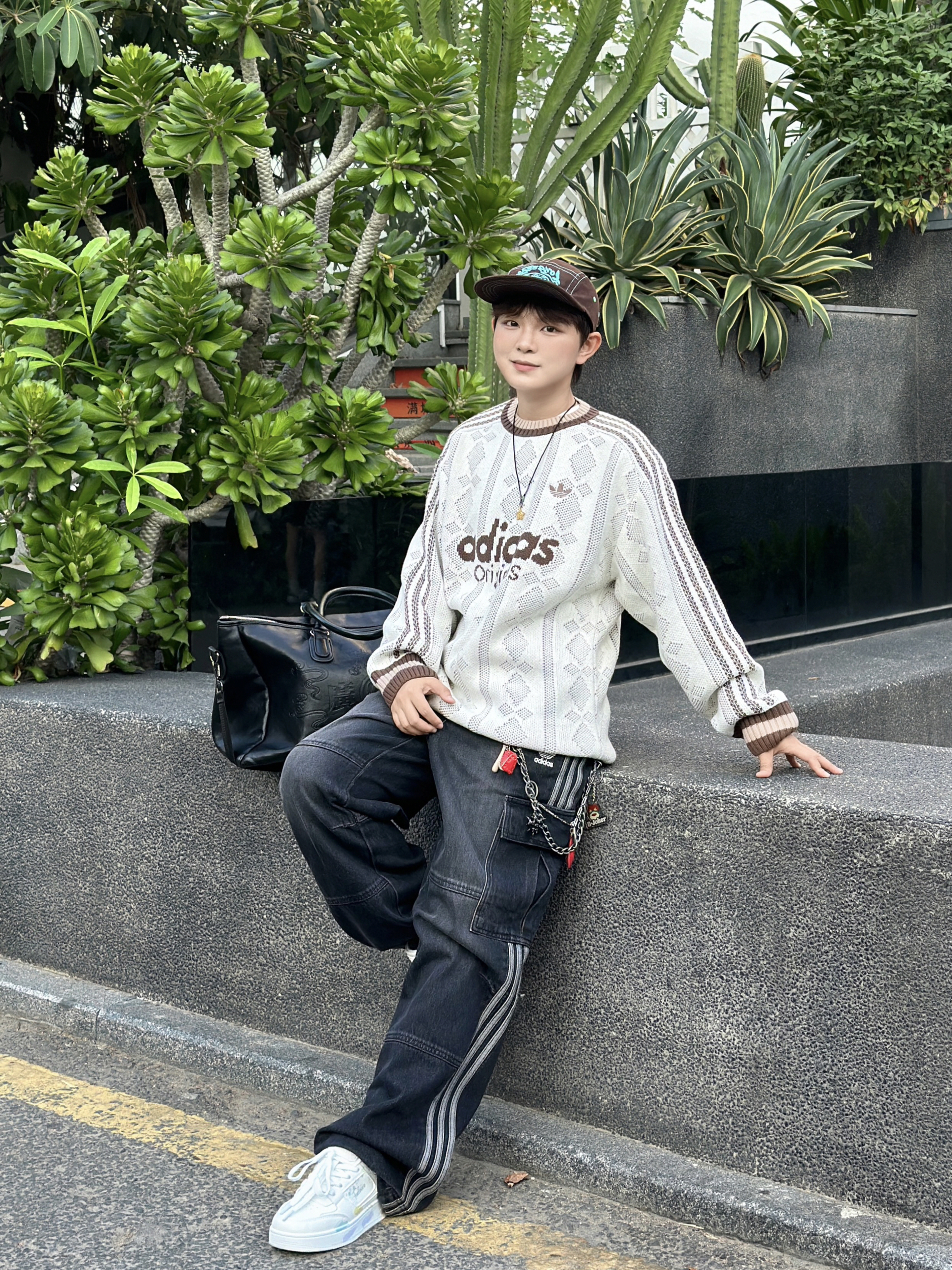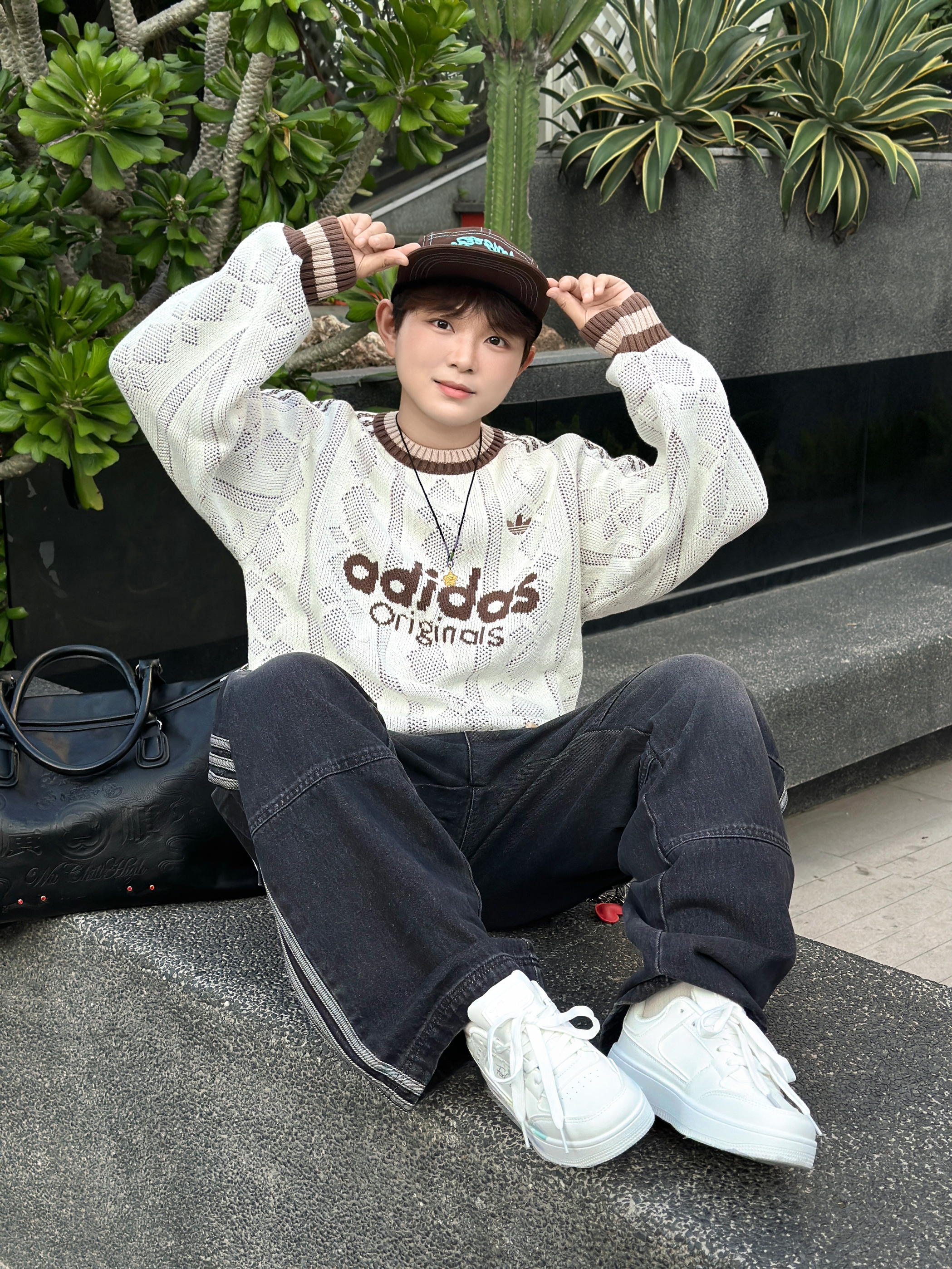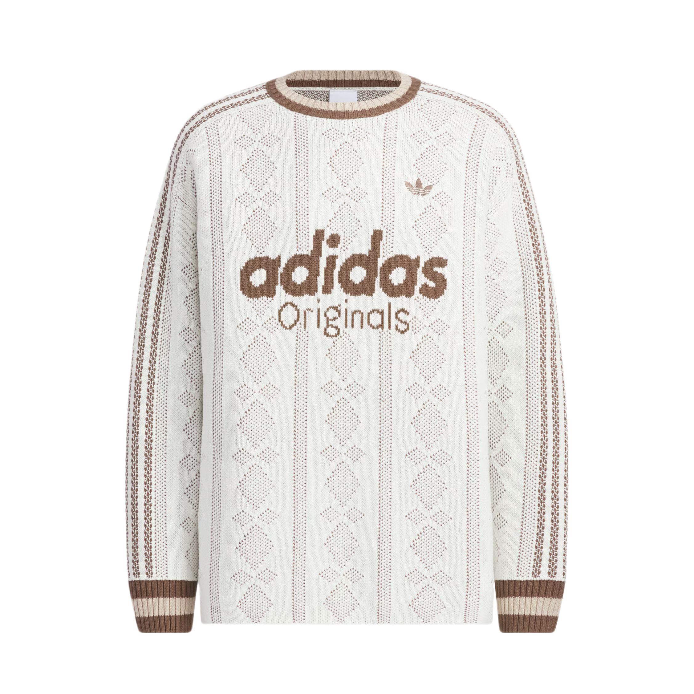 谁懂啊家人们!这件阿迪毛衣也太戳我了🥹 米白针织+复古棕字母,自带慵懒松弛感~ 镂空纹理透气又显质感,配条做旧黑牛仔+小白鞋,随便一坐都像在拍潮人画报📸 戴顶棒球帽更有那味儿了,出门逛街通勤都巨合适,一整个爱住的大动作!❤️
