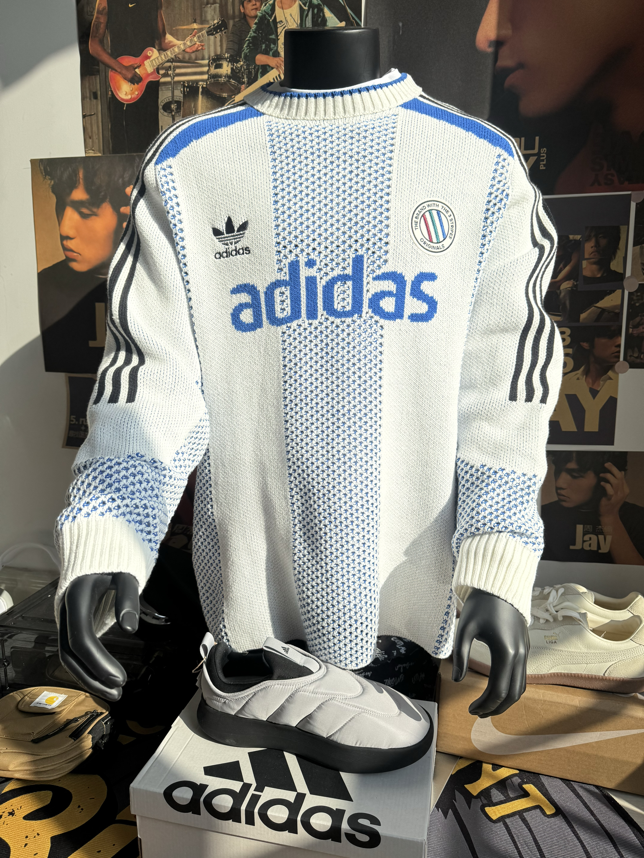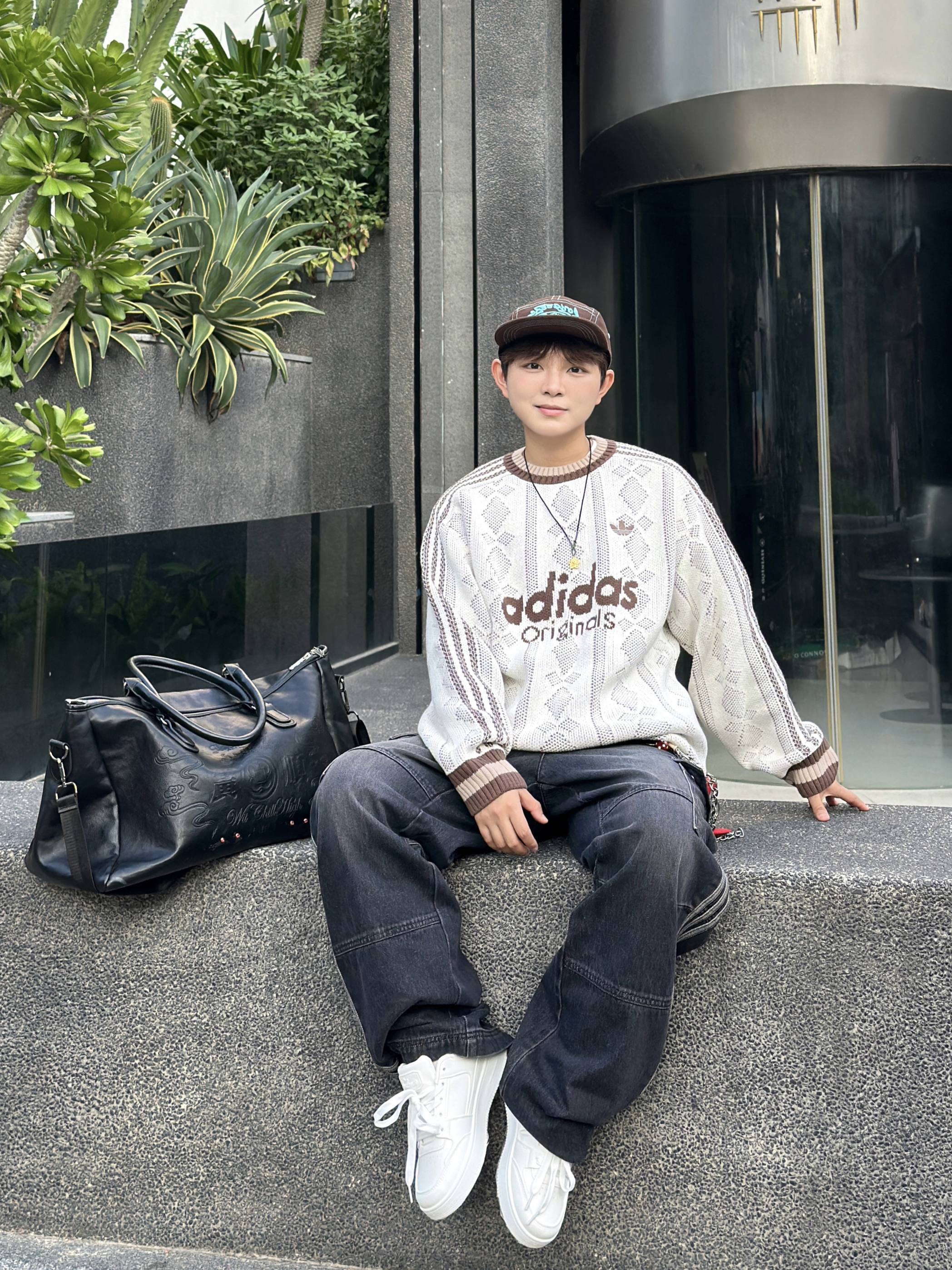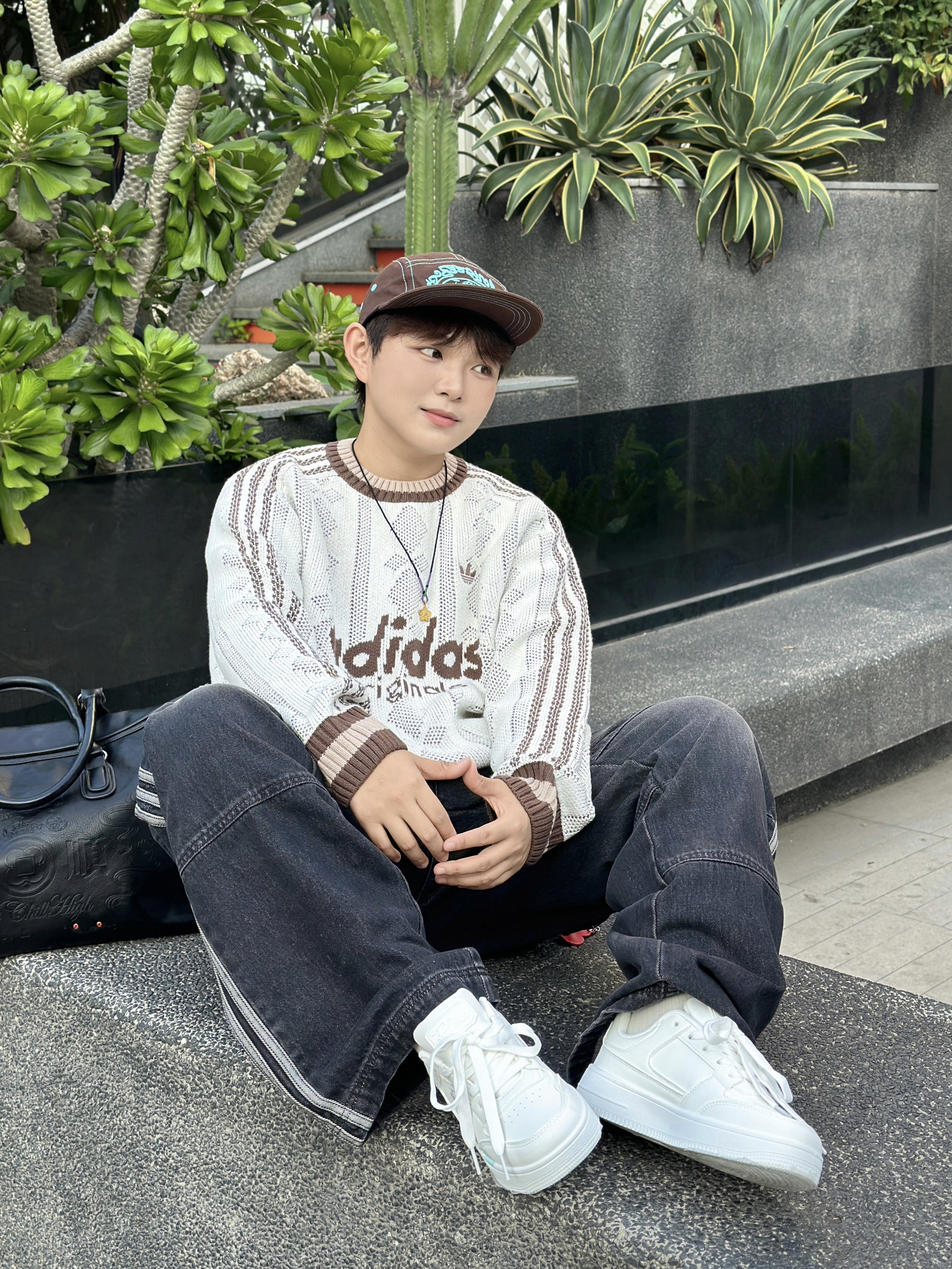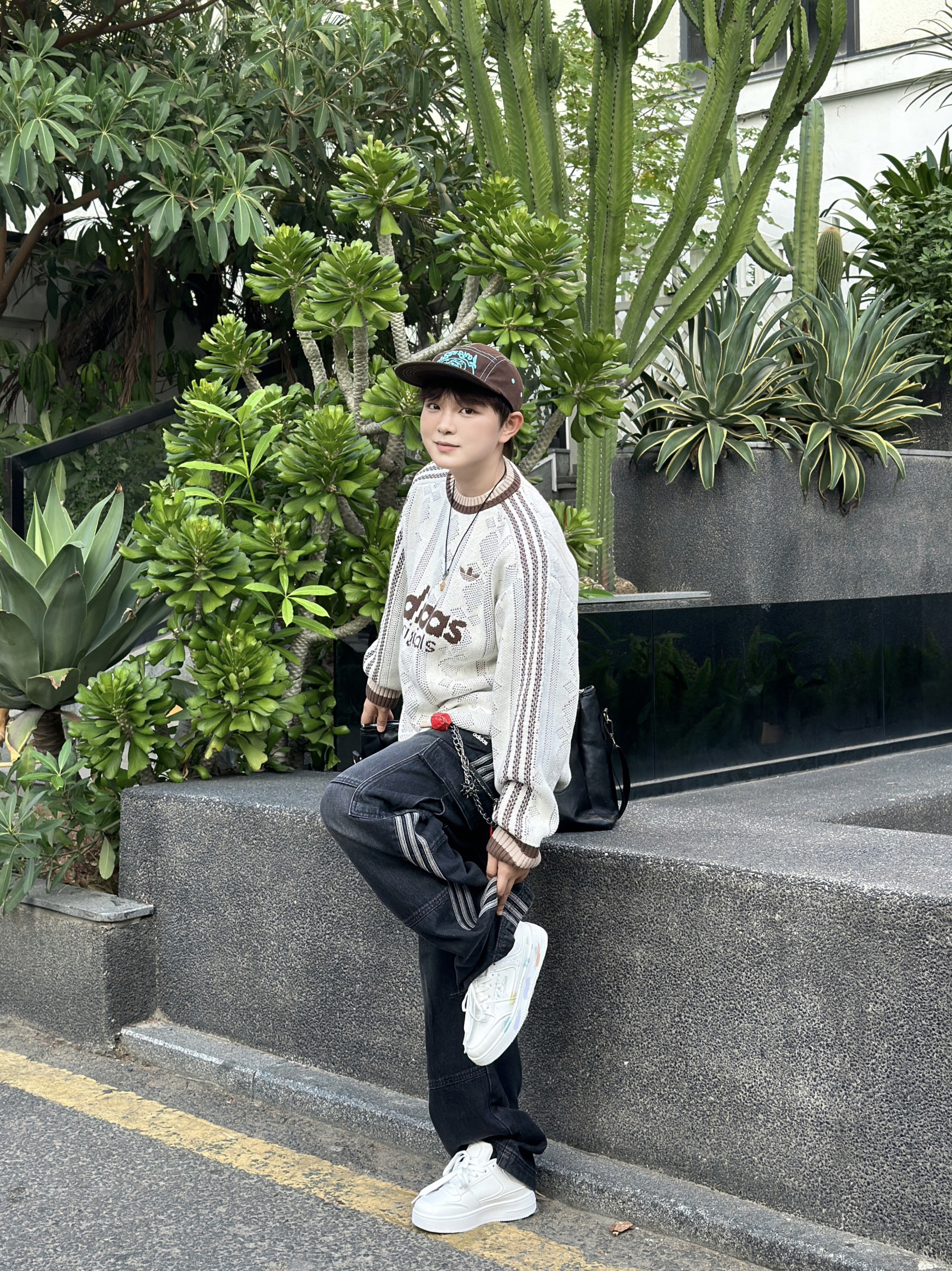 谁懂啊家人们!这件阿迪毛衣也太戳我了🥹 米白针织+复古棕字母,自带慵懒松弛感~ 镂空纹理透气又显质感,配条做旧黑牛仔+小白鞋,随便一坐都像在拍潮人画报📸 戴顶棒球帽更有那味儿了,出门逛街通勤都巨合适,一整个爱住的大动作!❤️