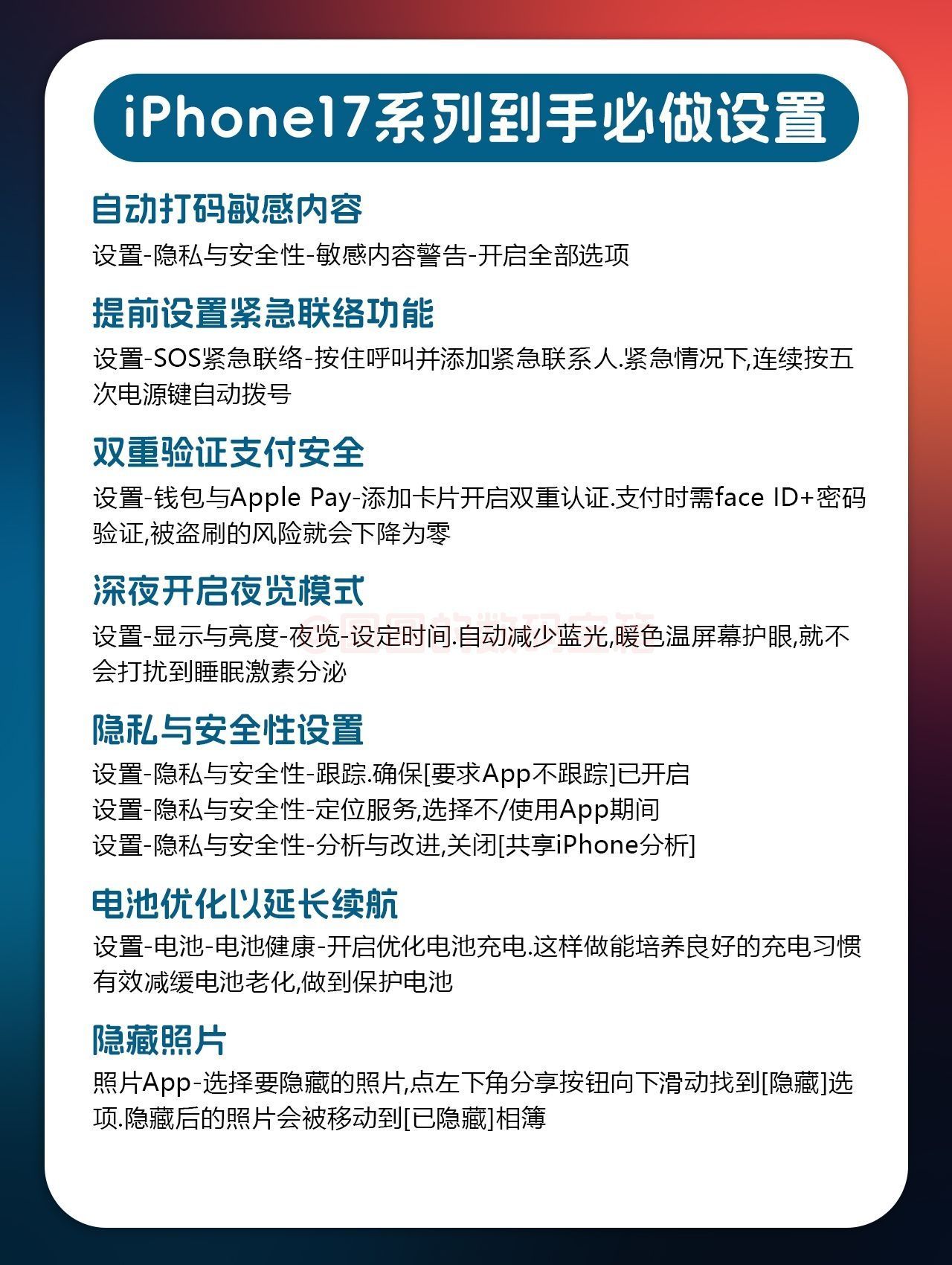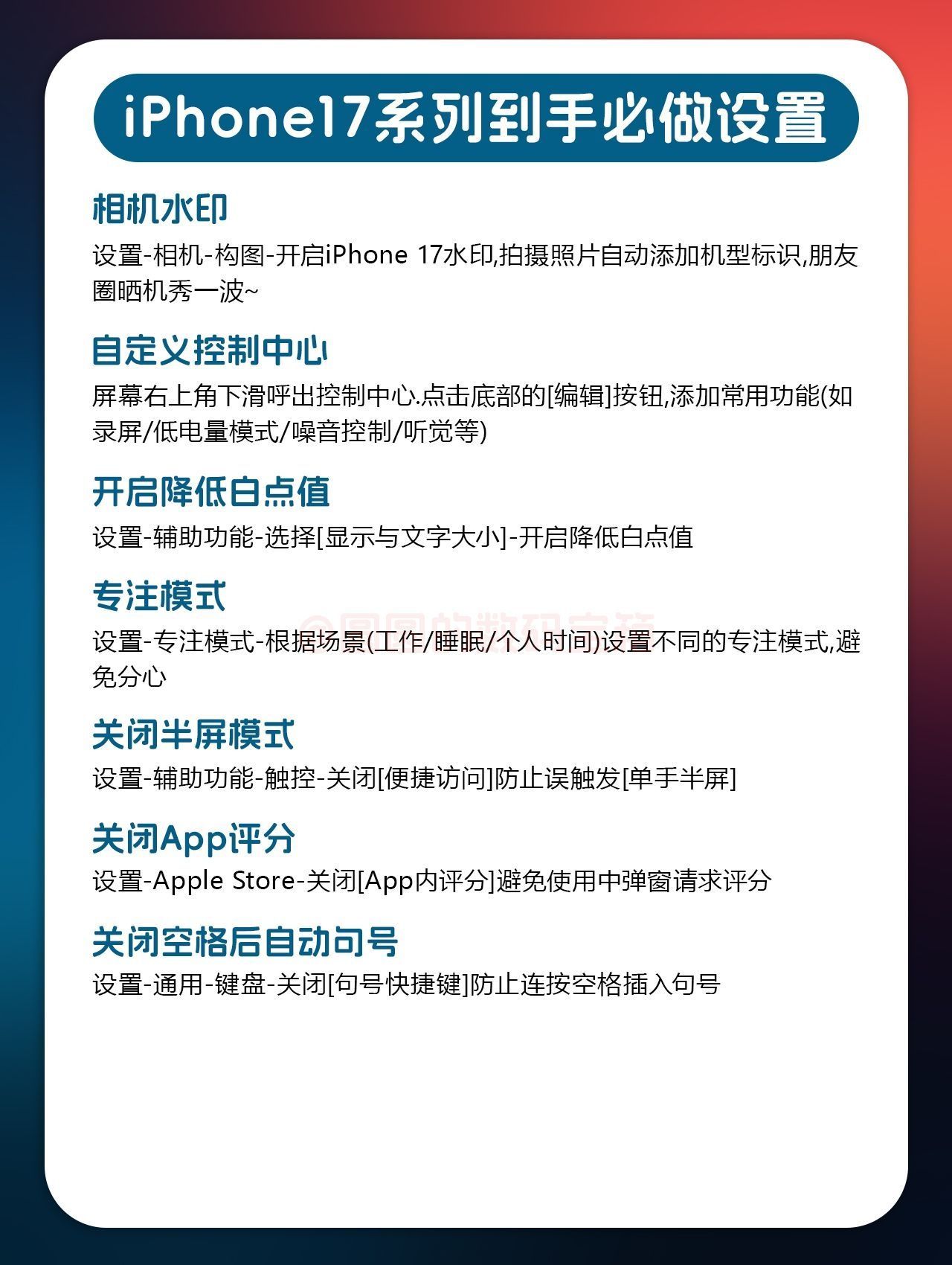 【挖到宝🤤iPhone17系列到手必做设置】,由用户 圆圆的数码宝箱 分享,来自广东。这是一篇来自识货社区的真实用户分享笔记。