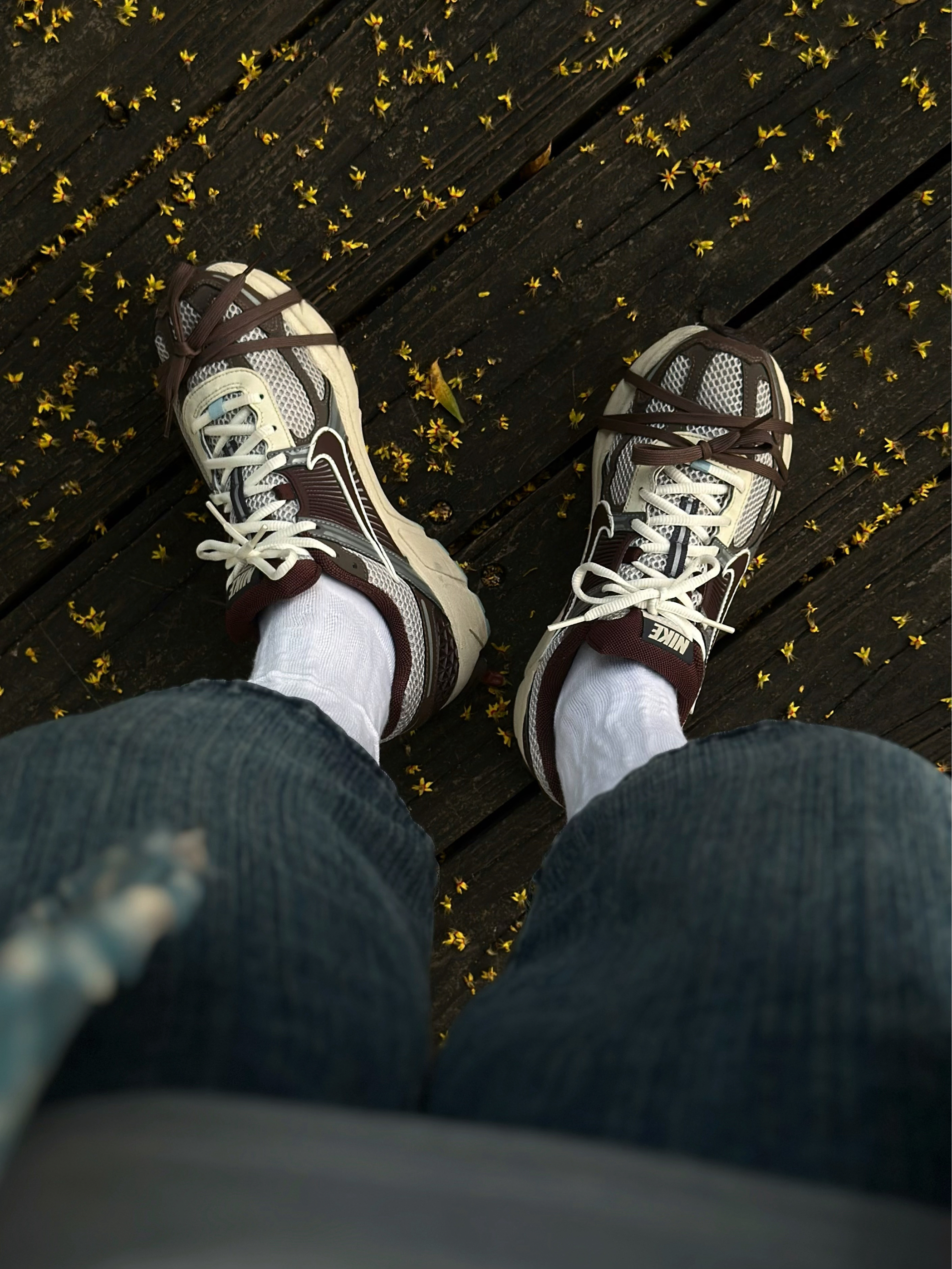 又挖到适合秋冬的复古跑鞋啦! Nike Vomero5棕褐色就很契合秋冬🍂氛围 我自己又给它配了副同色系的鞋带 鞋头看起来不会空空的~ 大家秋冬都穿什么颜色的复古鞋呢?