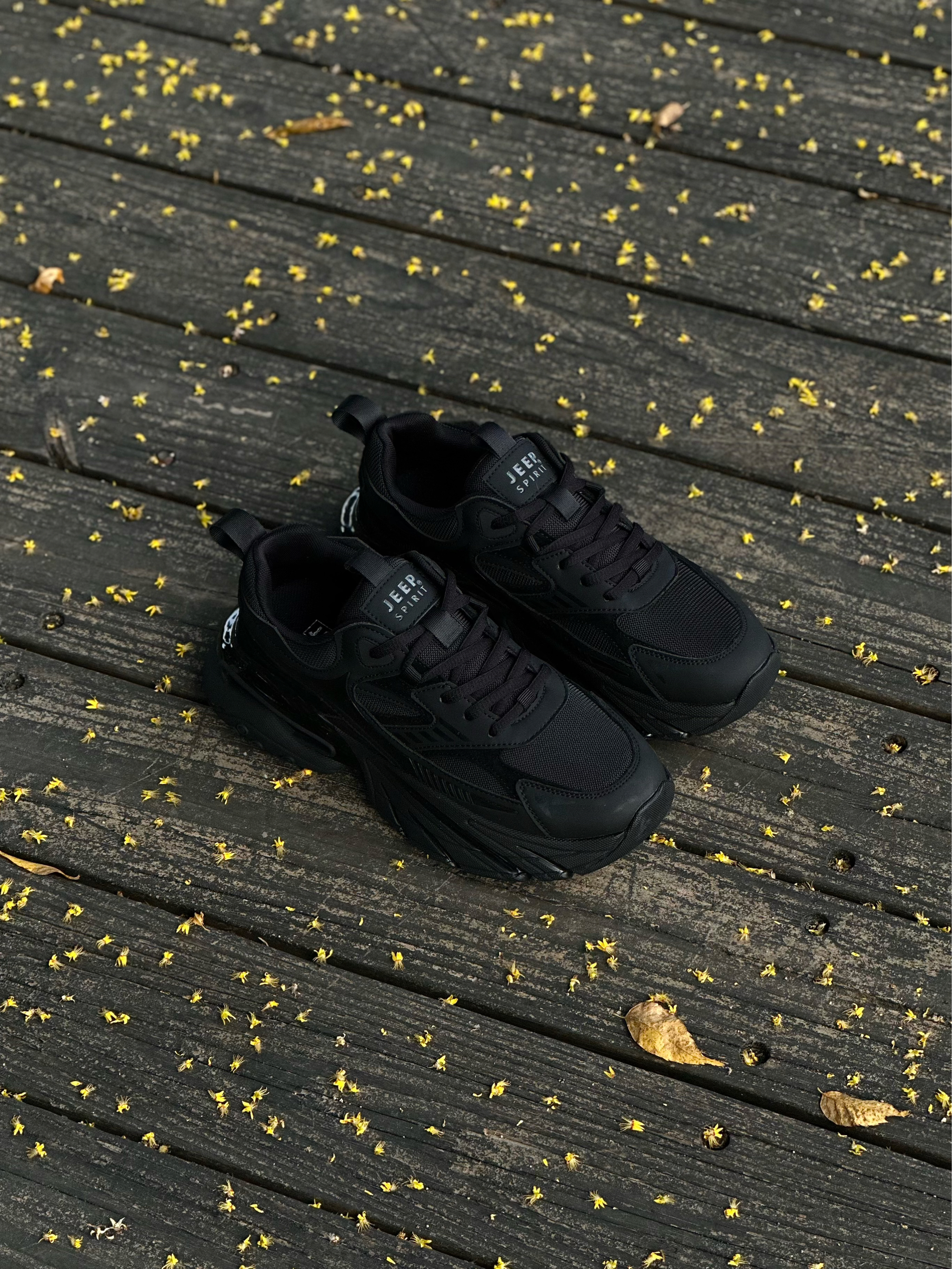 感觉秋冬和黑武士的适配度真的很足! 这双JEEP SPIRIT的老爹鞋 用深邃的黑色🖤和硬核的轮廓 营造出既复古又很街头未来的感觉 日常通勤可以拿去搭牛仔裤👖、工装裤 甚至是一条简单的束脚卫裤 也能瞬间提升整体造型的level 而且它的中底还做了加厚处理 不仅增高同时脚感踩起来也挺柔软的 让我们在城市与户外间无缝切换