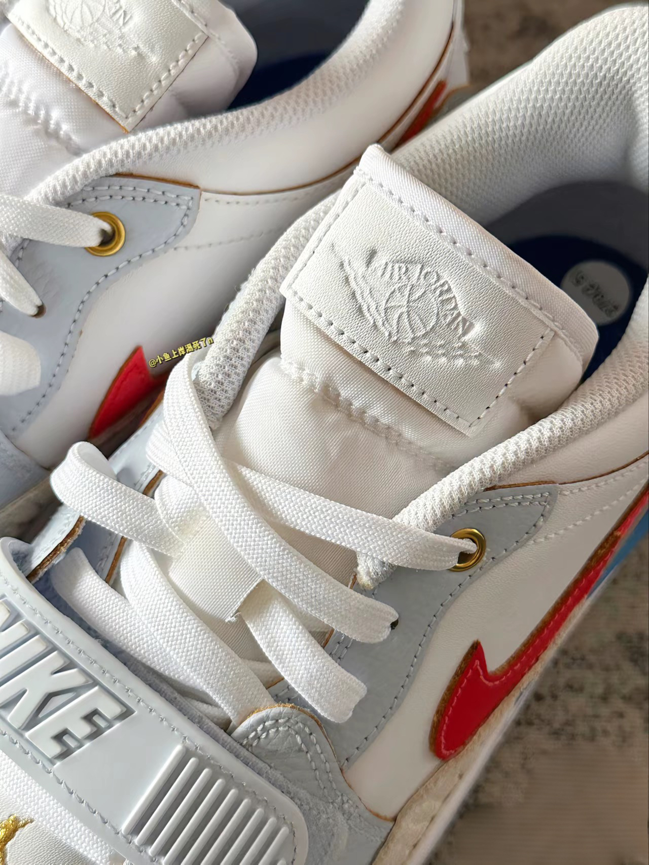 穿了一个多月,这双"三合一"复古鞋是真的越穿越爱。白蓝红撞色太戳夏天,清爽又带点复古街头感,随便搭牛仔裤或运动裤都很出片,回头率比想象中高。 鞋面是质感在线的皮革拼接,细节做得很精致,鞋头透气孔、侧边Swoosh都很有辨识度,还融合了AJ1、AJ3和Air Trainer 2的经典元素,"三合一"果然名不虚传。低帮设计超灵活,走路、开车都不磨脚踝,刚开始穿略有点紧,穿开后包裹感刚刚好。 橡胶大...