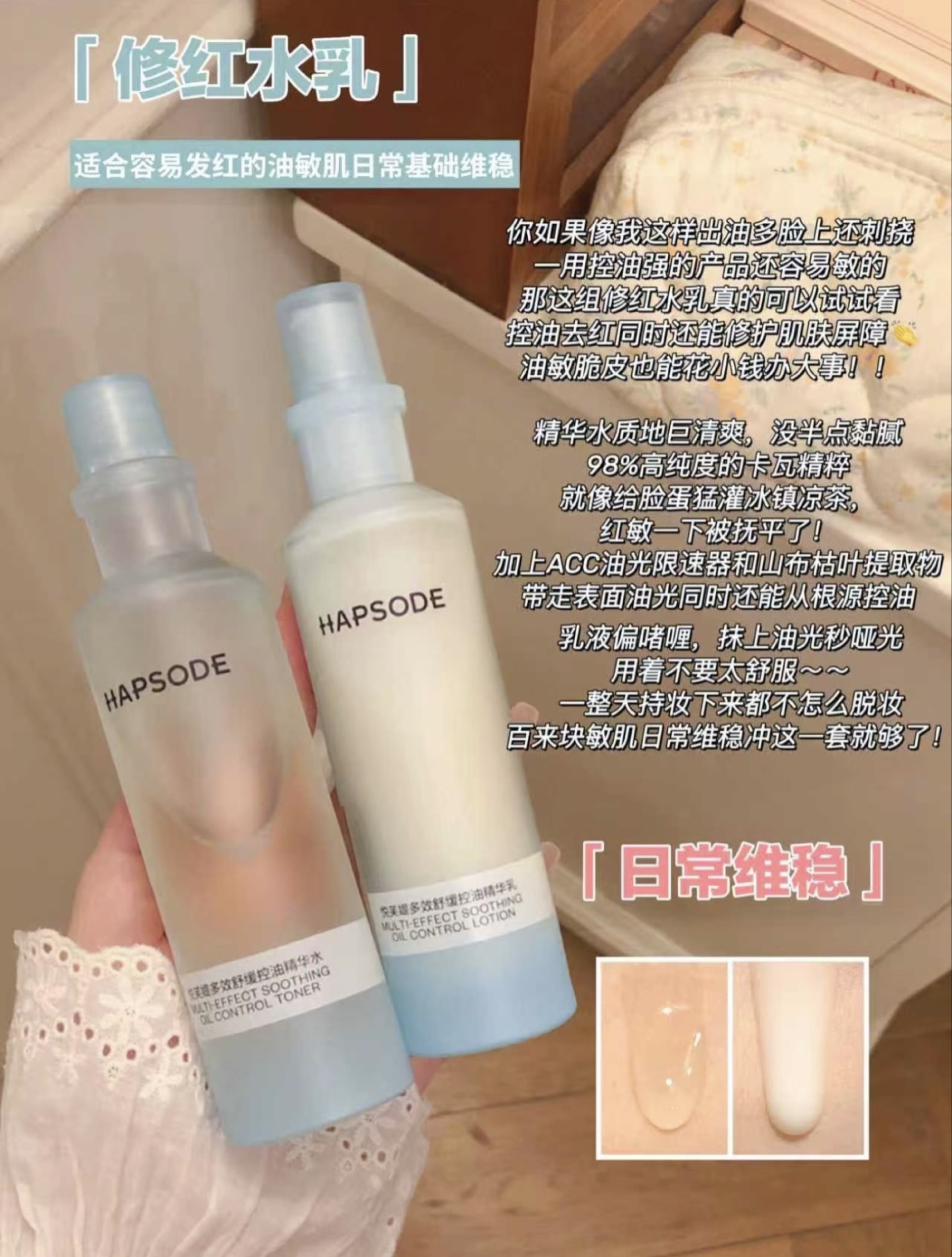 一、多效净澈洁颜蜜 适合肤质:油皮/混油皮/淡妆人群(尤其适合需要洗卸合一的敏肌) • 精华水质地一搓爆绵密云朵泡,T区多揉搓5秒轻松带走脂肪粒 • 含酸但温和到敏肌可用,洗后零拔干,脸蛋软嫩如做完美容 • 旋转锁扣泵头设计,带出门不怕泄漏,真正实现「一瓶洗全脸」 ------ 二、多效舒缓控油水乳(修红版) 适合肤质:外油内干/泛红刺挠的油敏肌 • 98%高纯卡瓦精粹像给皮肤灌凉茶,暴晒后湿...