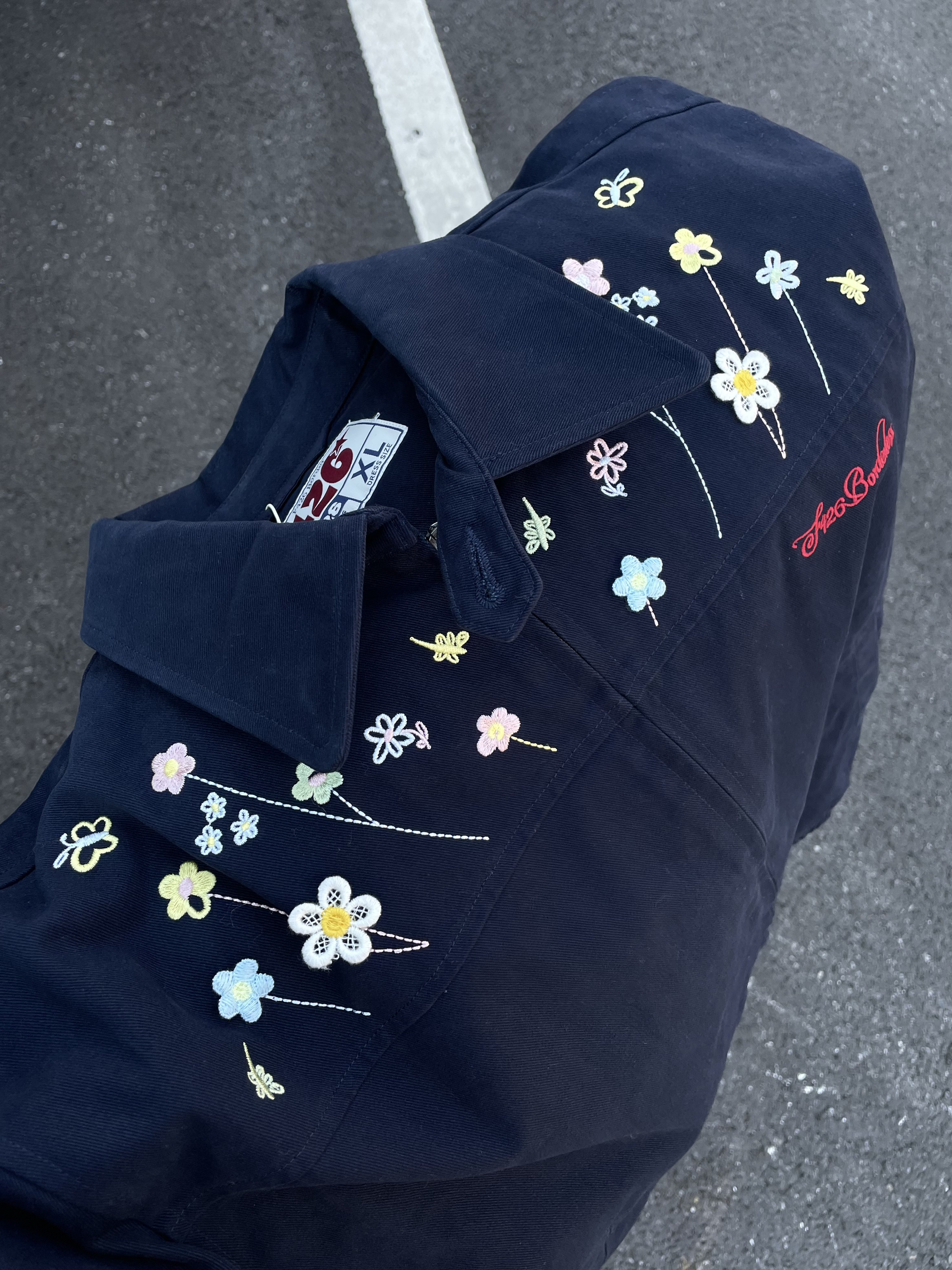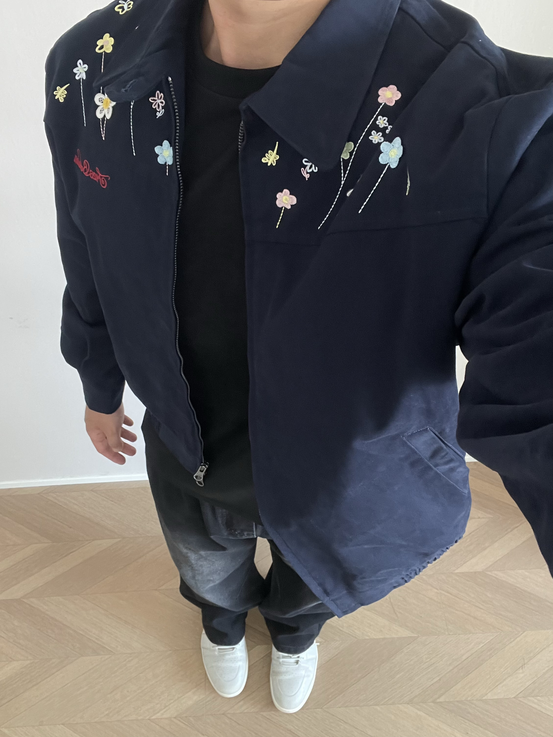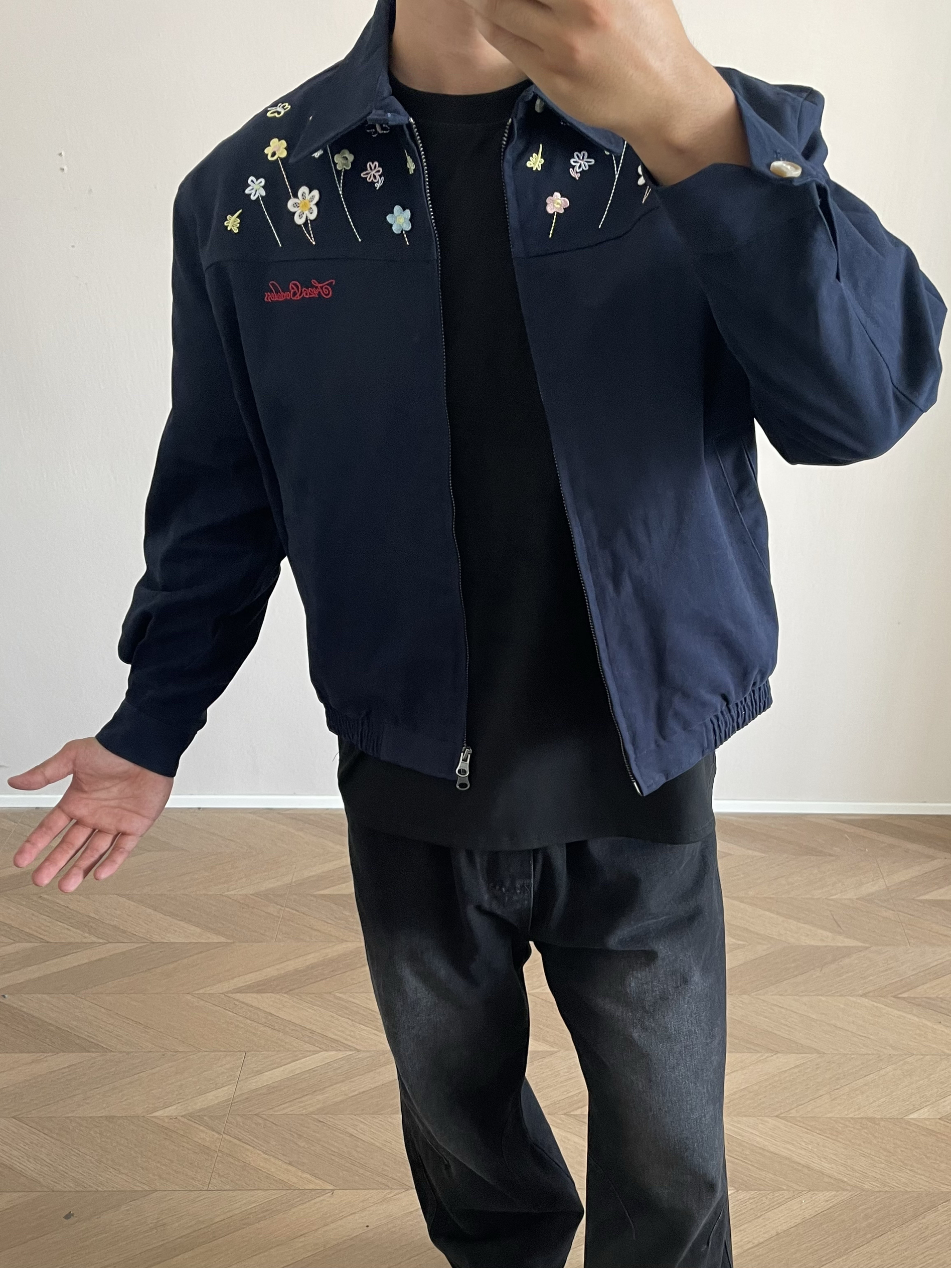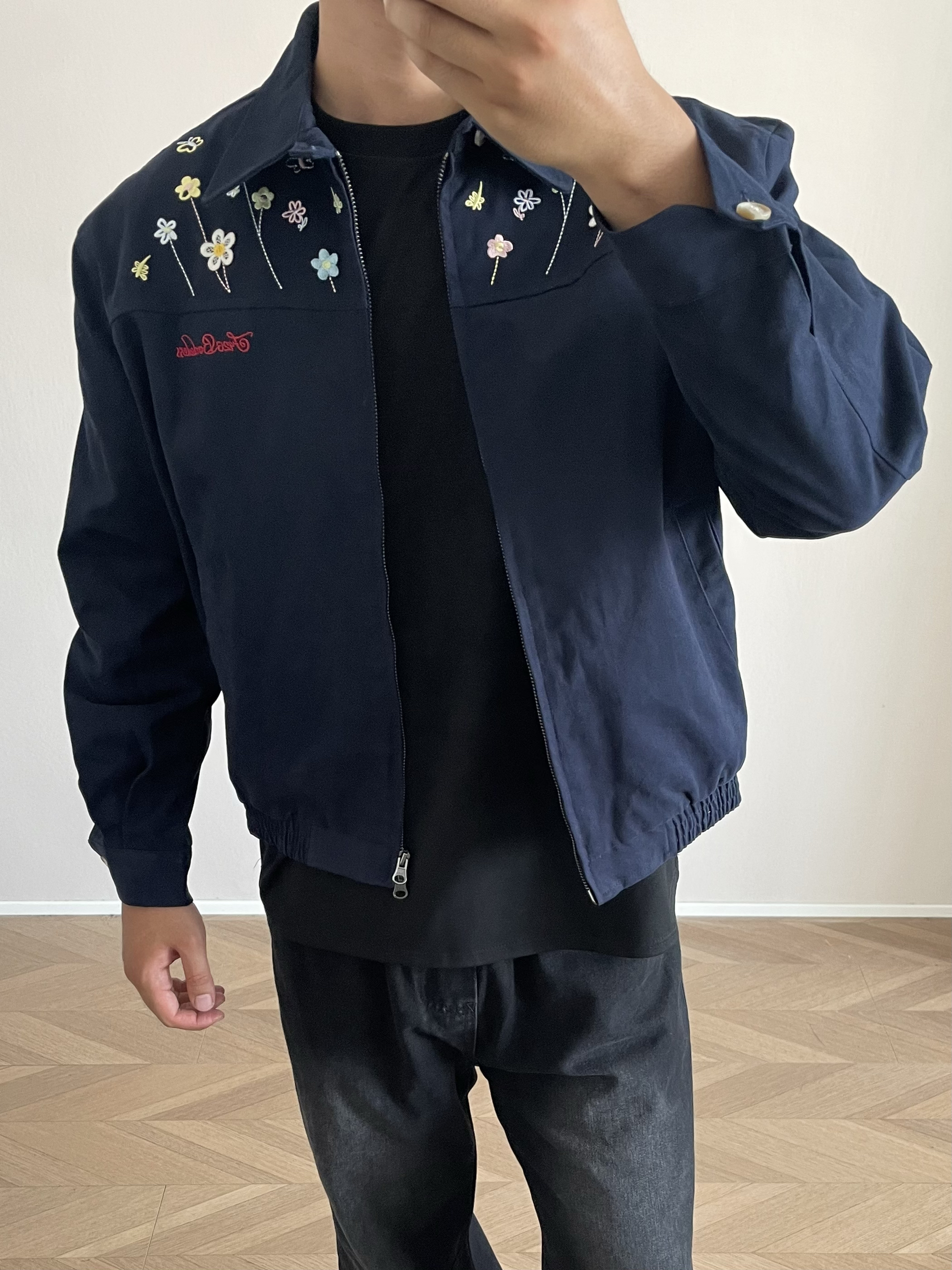 Hi 大家好🤣 今天分享一款“花花”夹克~ 领口的小花🌼🌹🌸🌷💐刺绣🪡 真的太精致了 颜色搭配的也很漂亮😻 很有生命力❤️🔥 短款的小版型 上身真显腿长啊❗️ 男女同款的版型 情侣👫穿不敢想象有多甜啊🥰🥰🥰 面料很舒服 上身的挺阔感很好,不会软塌塌的~ 🙋181cm 75kg Xl合身效果✅