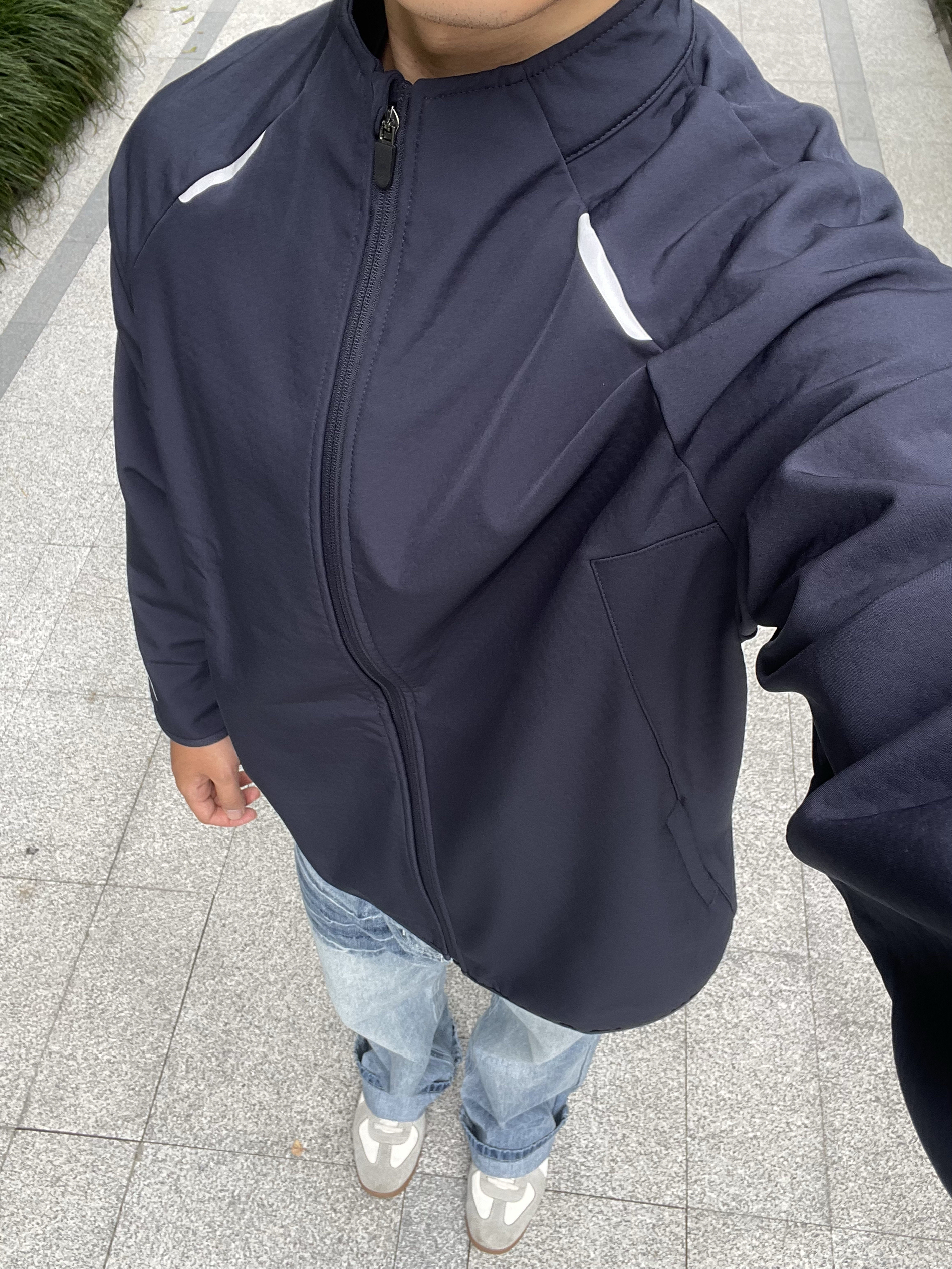 今日穿搭分享😻 好版型🉑 训能外套~ 防水、防风效果嘎嘎的😈 训练就是要穿专业的衣服才舒服💪 衣服有一定的厚度🌟 上身不会软塌塌的~ 面料还挺细腻的 贴身穿也舒服😌 我比较喜欢藏青色 低调奢华的颜色!💙 🙋181cm 75kg 2XL合适效果✅
