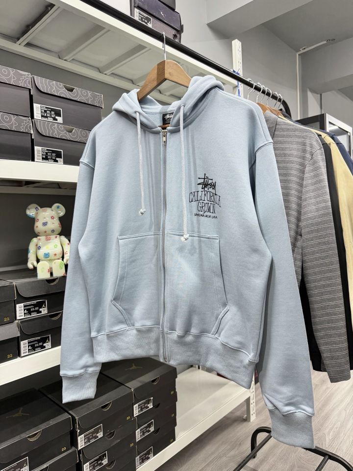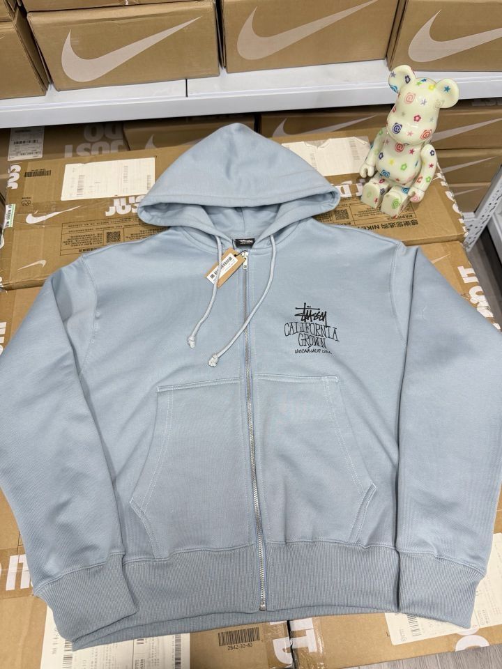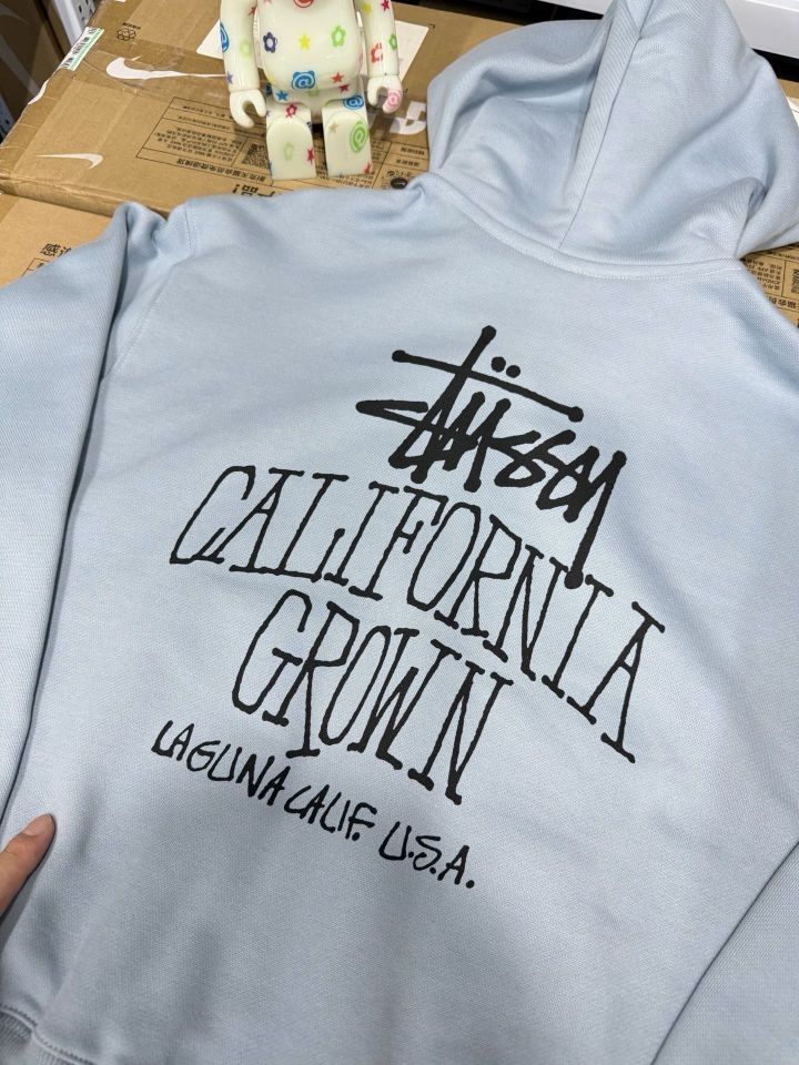 🌴当 Stüssy 标志性涂鸦logo遇上“CALIFORNIA GROWN”的宣言,这件浅蓝连帽衫就成了美式街头与加州阳光的载体。 🤩柔软面料承包日常舒适,oversize 廓形适配各种风格,背后的印花将拉古纳海滩的自由气息一路延伸——无论是搭配工装裤走硬核街头风,还是配牛仔裤玩简约美式,它都能让你在潮流里“躺平式”出彩。 旁边的潮流玩偶更添几分趣味,仿佛在说:穿它出门,你就是街头潮流的...