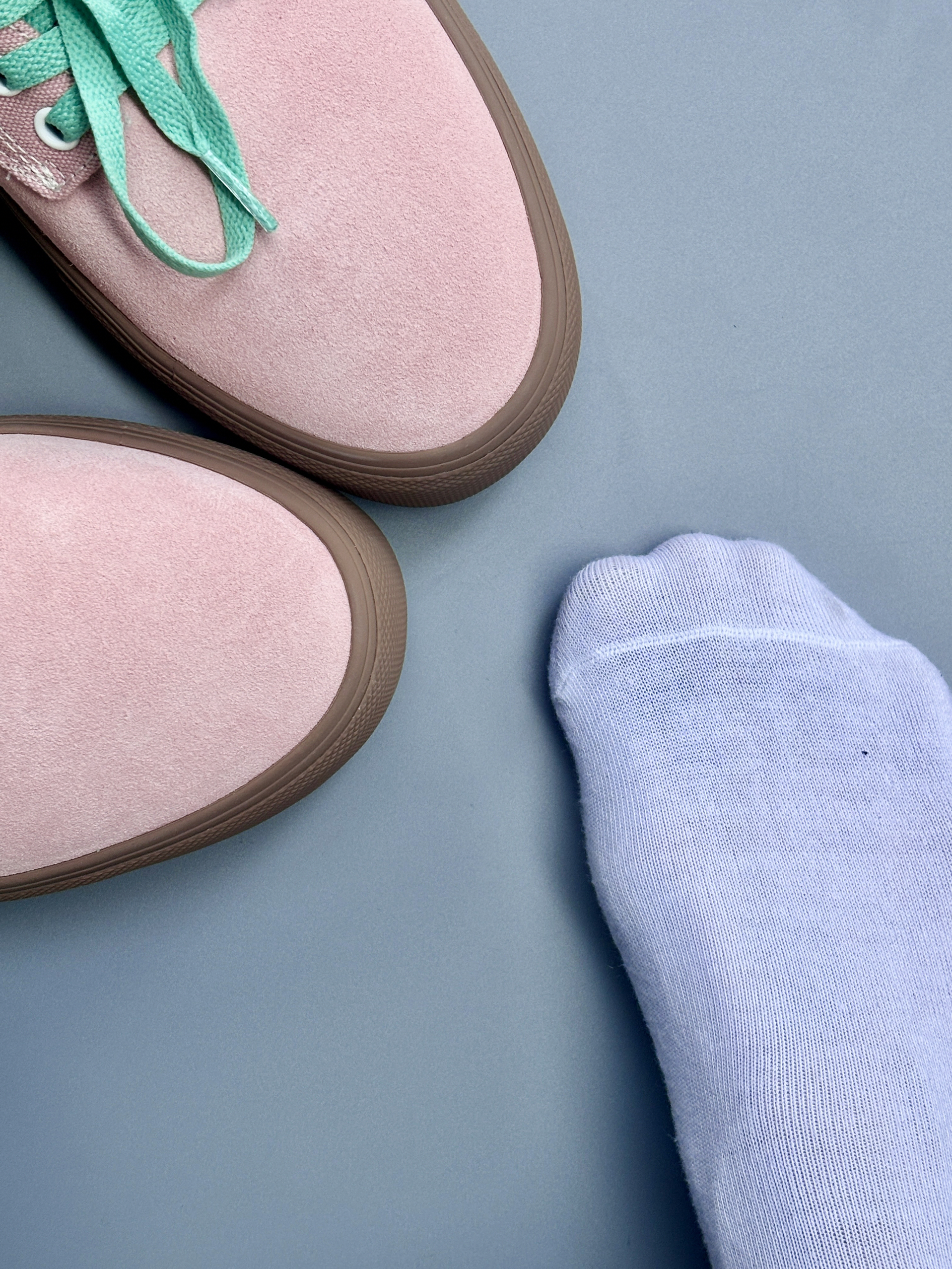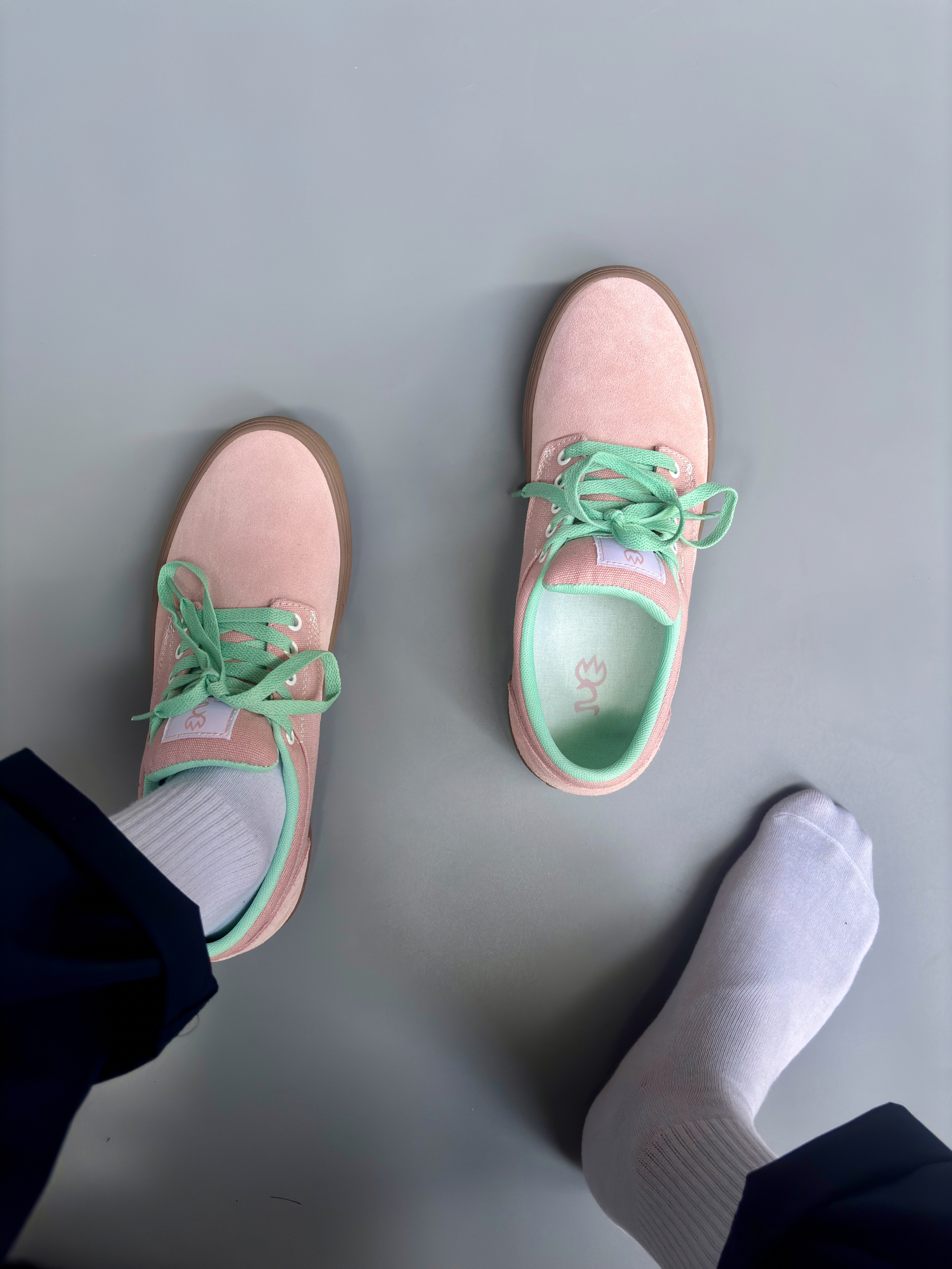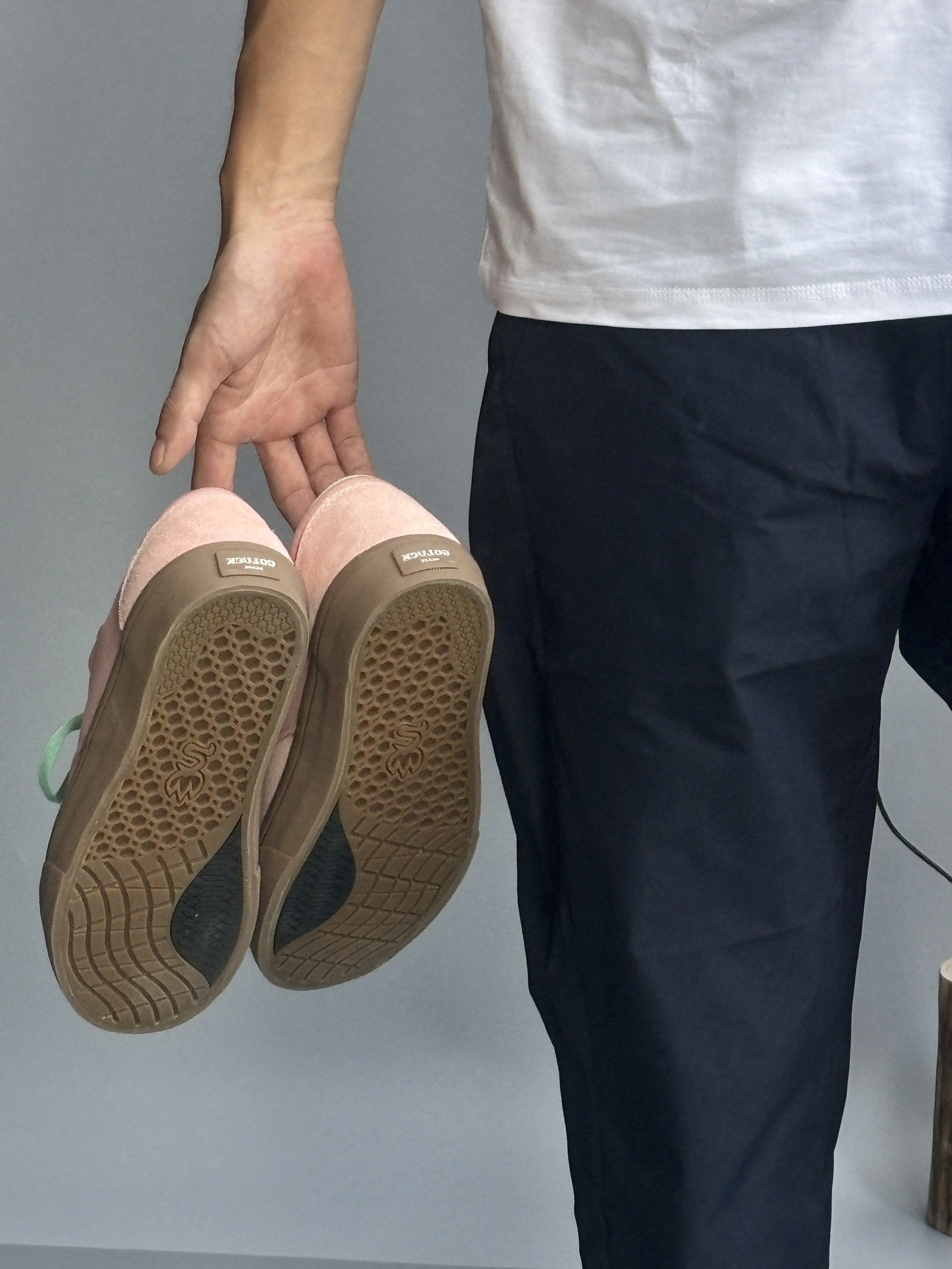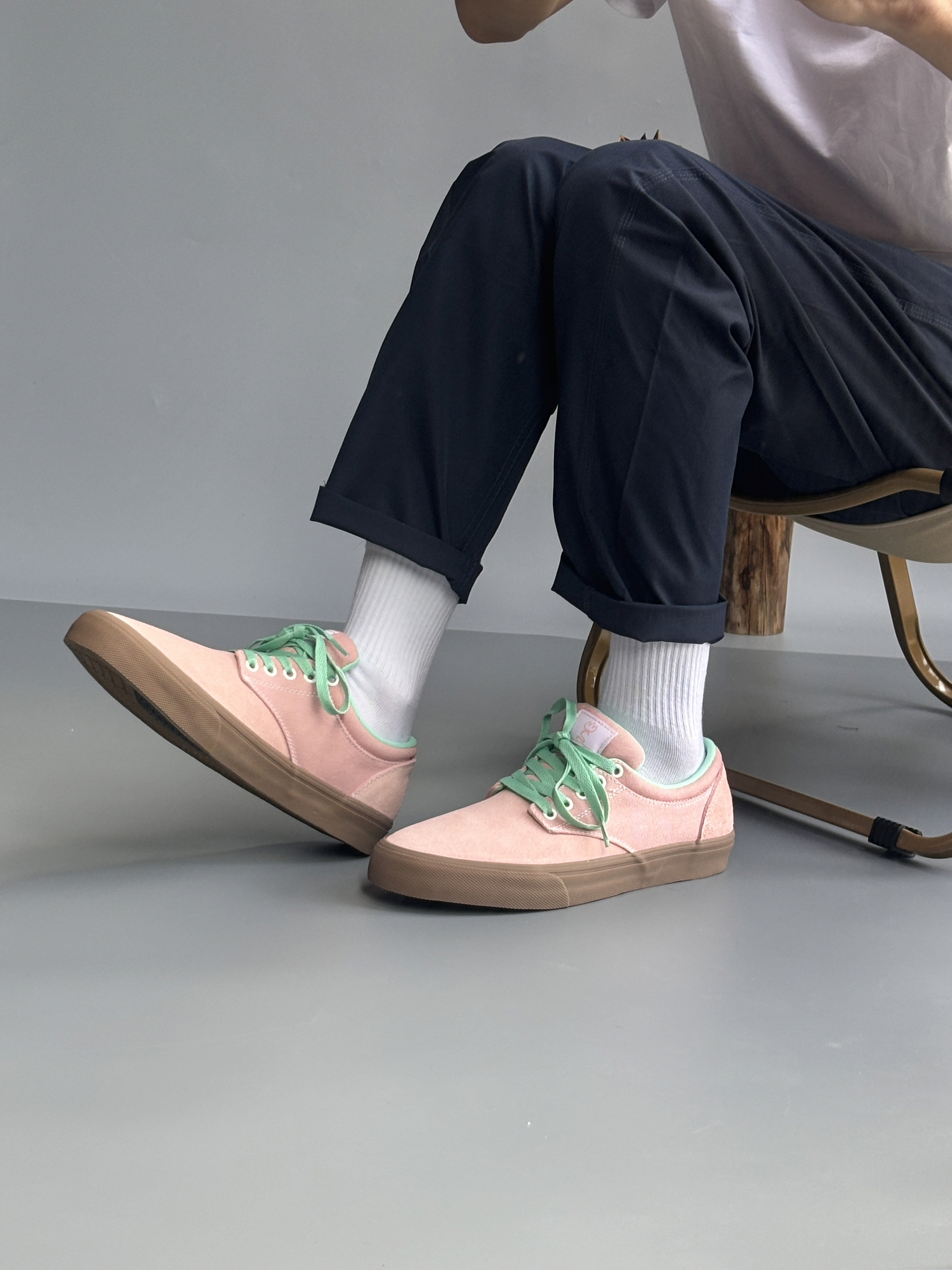 第一次尝试穿粉色鞋子,怕不好搭衣服,但这双柔粉色真的绝了!是那种很温柔的粉,一点不显黑,男生女生都能穿! 鞋面是翻毛皮+帆布的,摸起来质感特别好,而且透气不闷脚。鞋底软硬适中,穿去逛街走半天都不累~ 最惊喜的是这鞋才一百多块,做工细节很yYYDS😂 今日搭配: ▪️藏青色工装裤+白T
