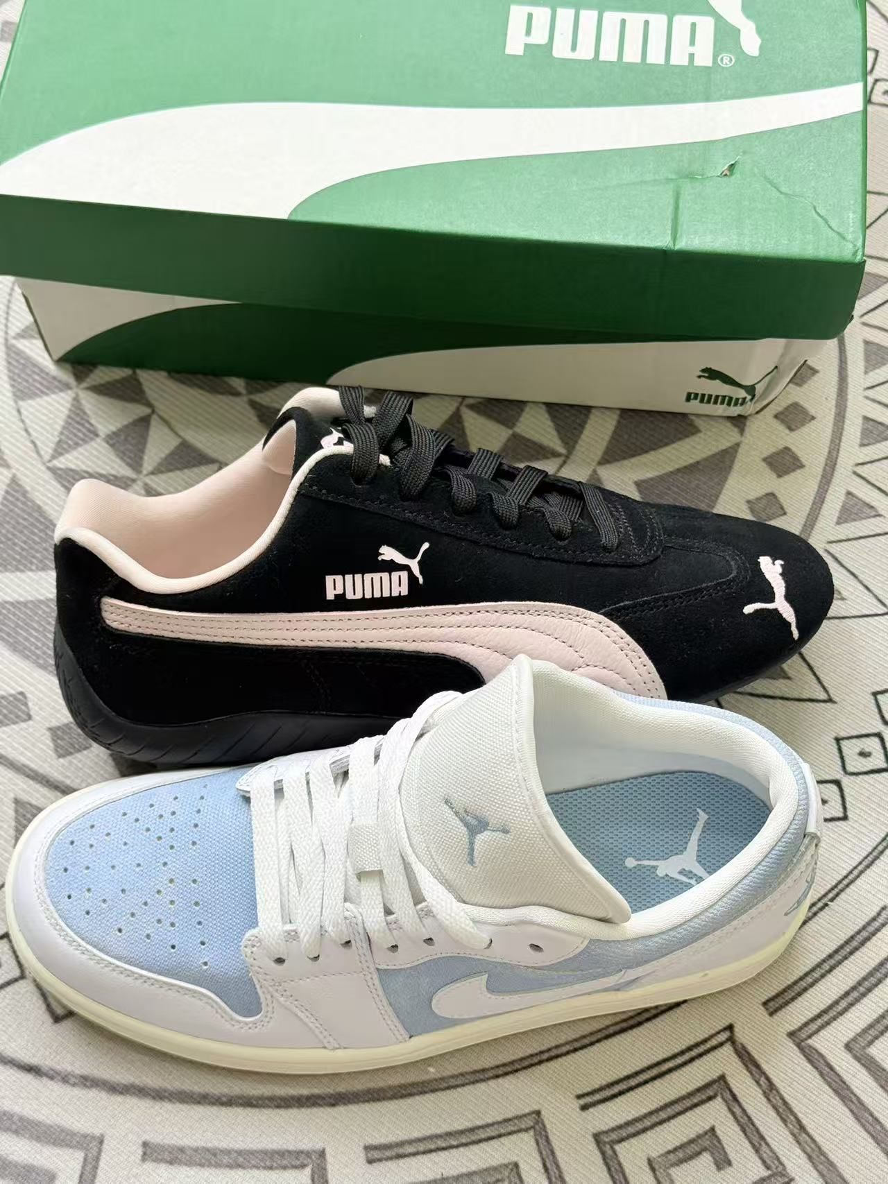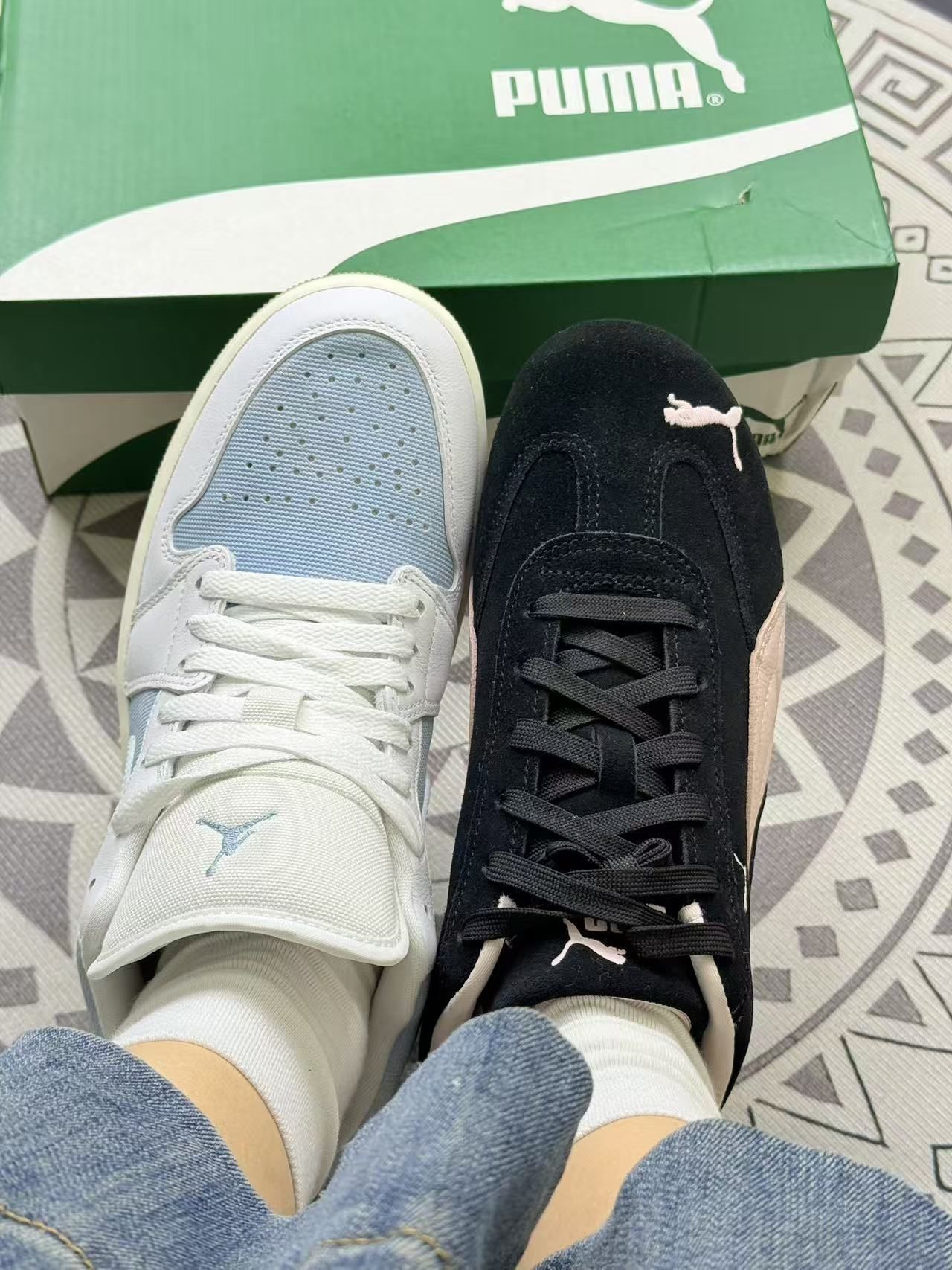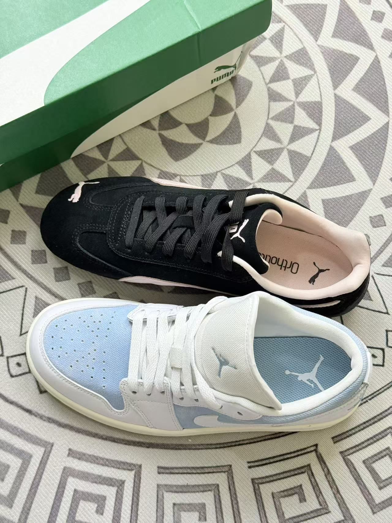 分享下最近入的这两双鞋的真实上脚体验~ 先说说左边这双蓝白配色的,上脚挺清爽,搭配牛仔裤、休闲裤都不突兀。不过鞋型偏板正,长时间走路的话,前掌会有点闷脚,透气性一般般😅。 再看右边黑杏色的这双,复古感是有的,日常穿搭很百搭。但它的鞋舌有点厚,刚开始穿的时候,脚踝处会有点压感,得磨合个两三天才行🙃。 两双鞋的做工都还算精细,没有明显的溢胶。但要是追求极致舒适,它们都不算顶尖,胜在配色和风...