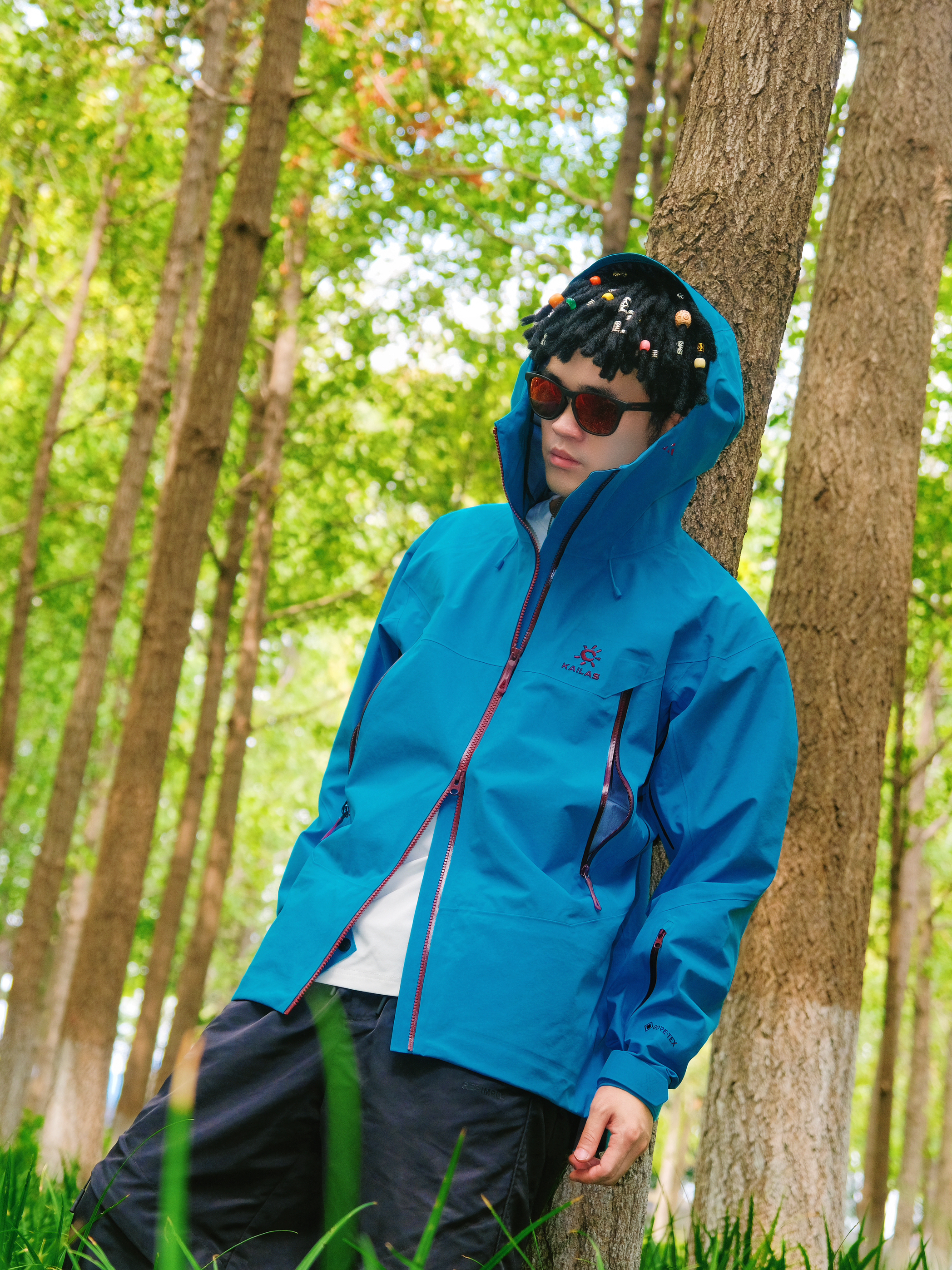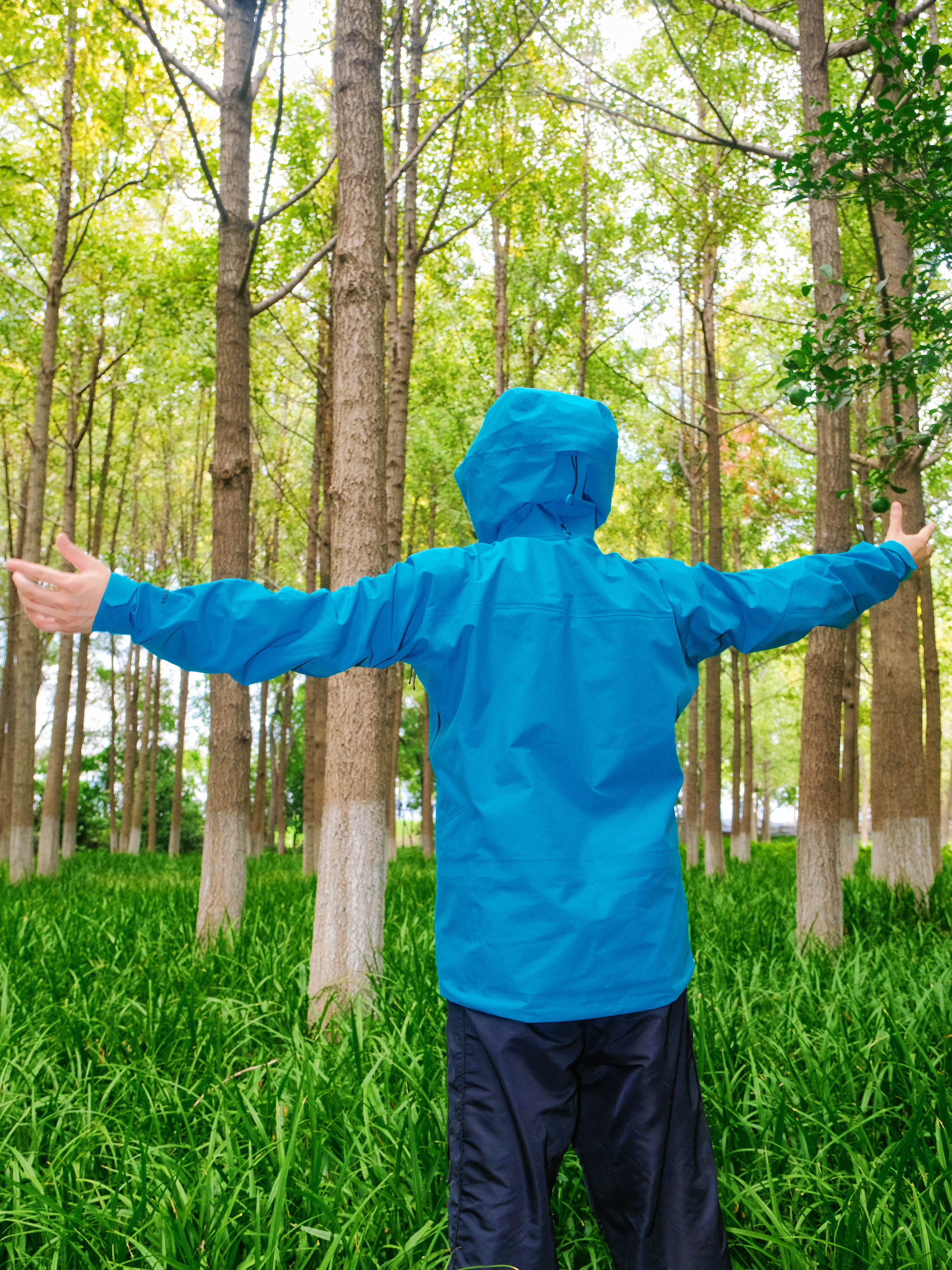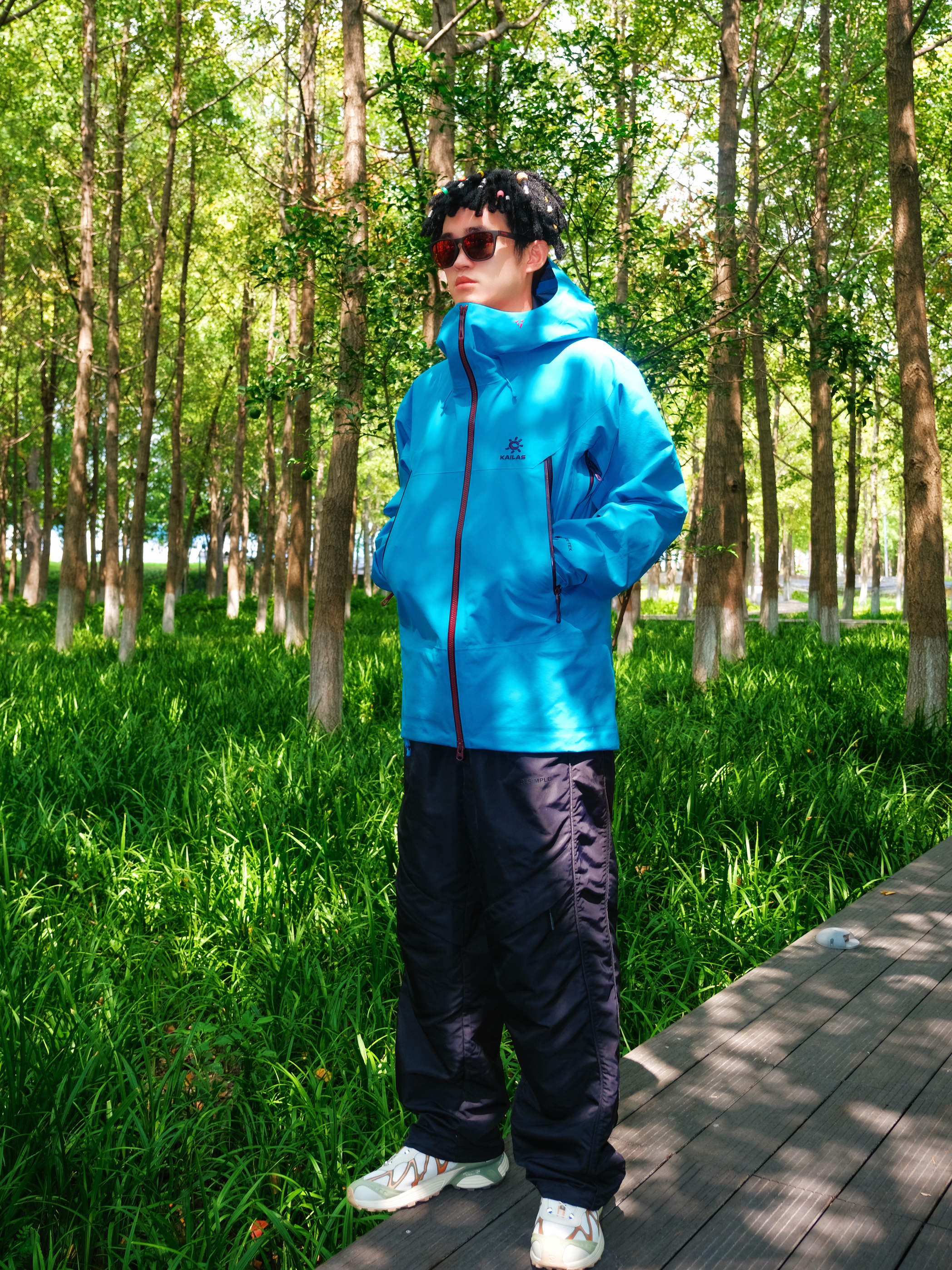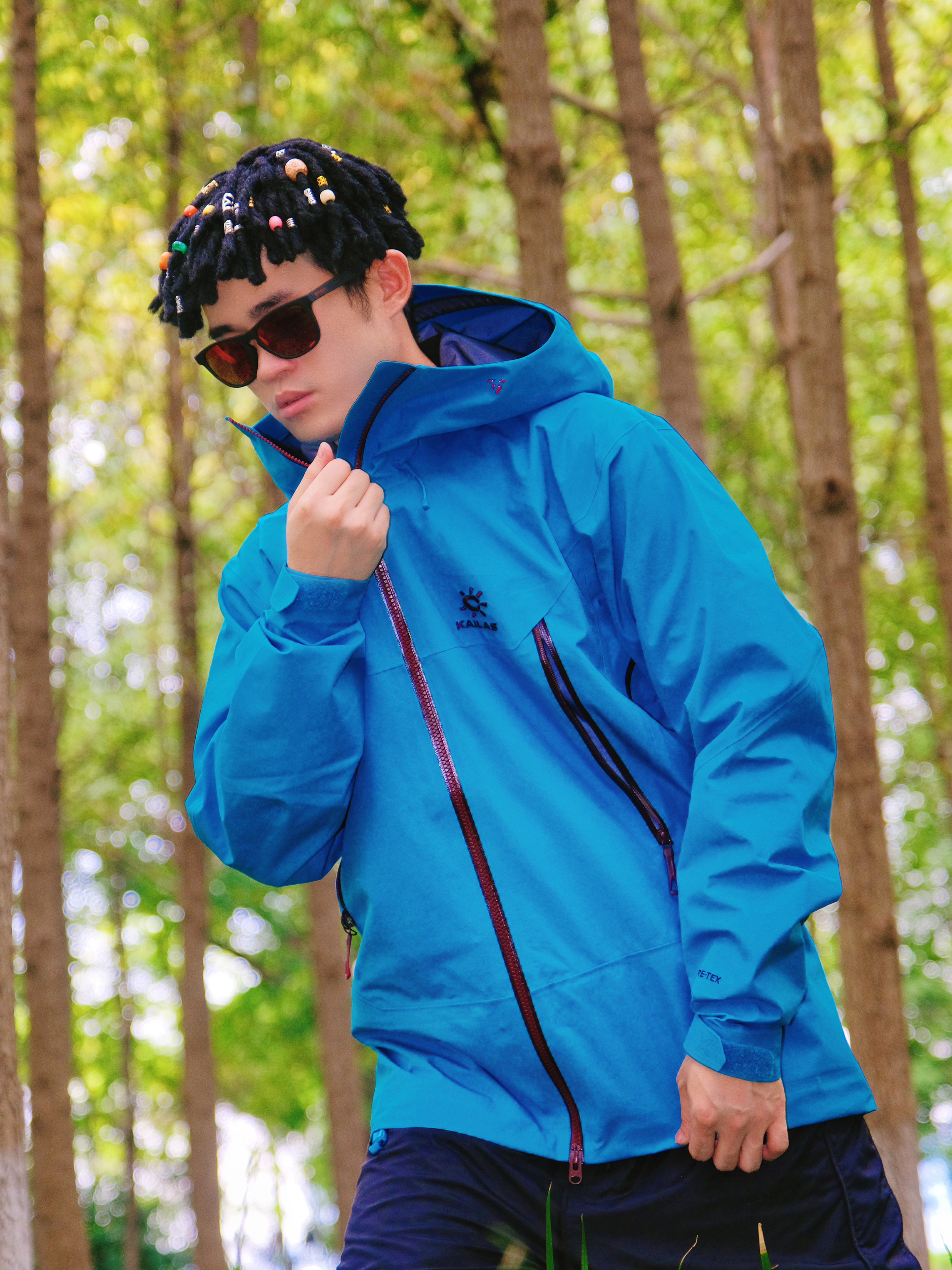 突然降温的雨季户外🌧️ 还是得靠专业硬壳来给安全感~ @凯乐石KAILAS MONT-X冲锋衣的山涧蓝真的好显白 在绿树林里拍照超吸睛📸 GORE-TEX面料防风防水超靠谱 突然下雨也完全不用担心👌 穿它爬山徒步活动超自在 不会闷汗也不束缚动作 内搭选了白色速干T 下身简单配黑色户外长裤 整体轻机能风➕休闲感 日常穿也不违和✨ 尺码按平时正码选就OK 肩宽和衣长都合适 女生穿也不会显臃肿~