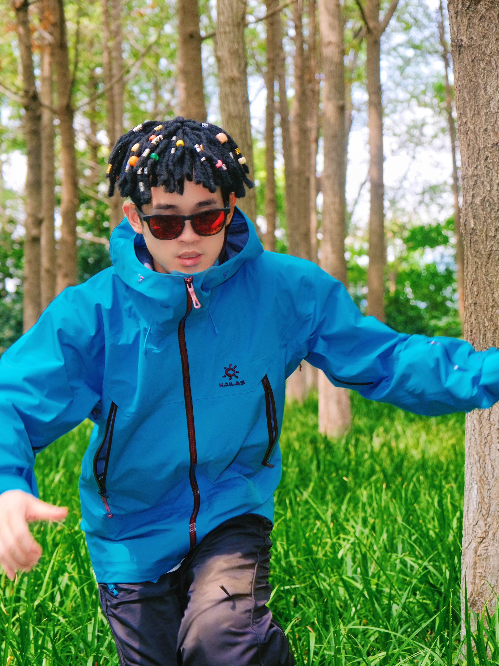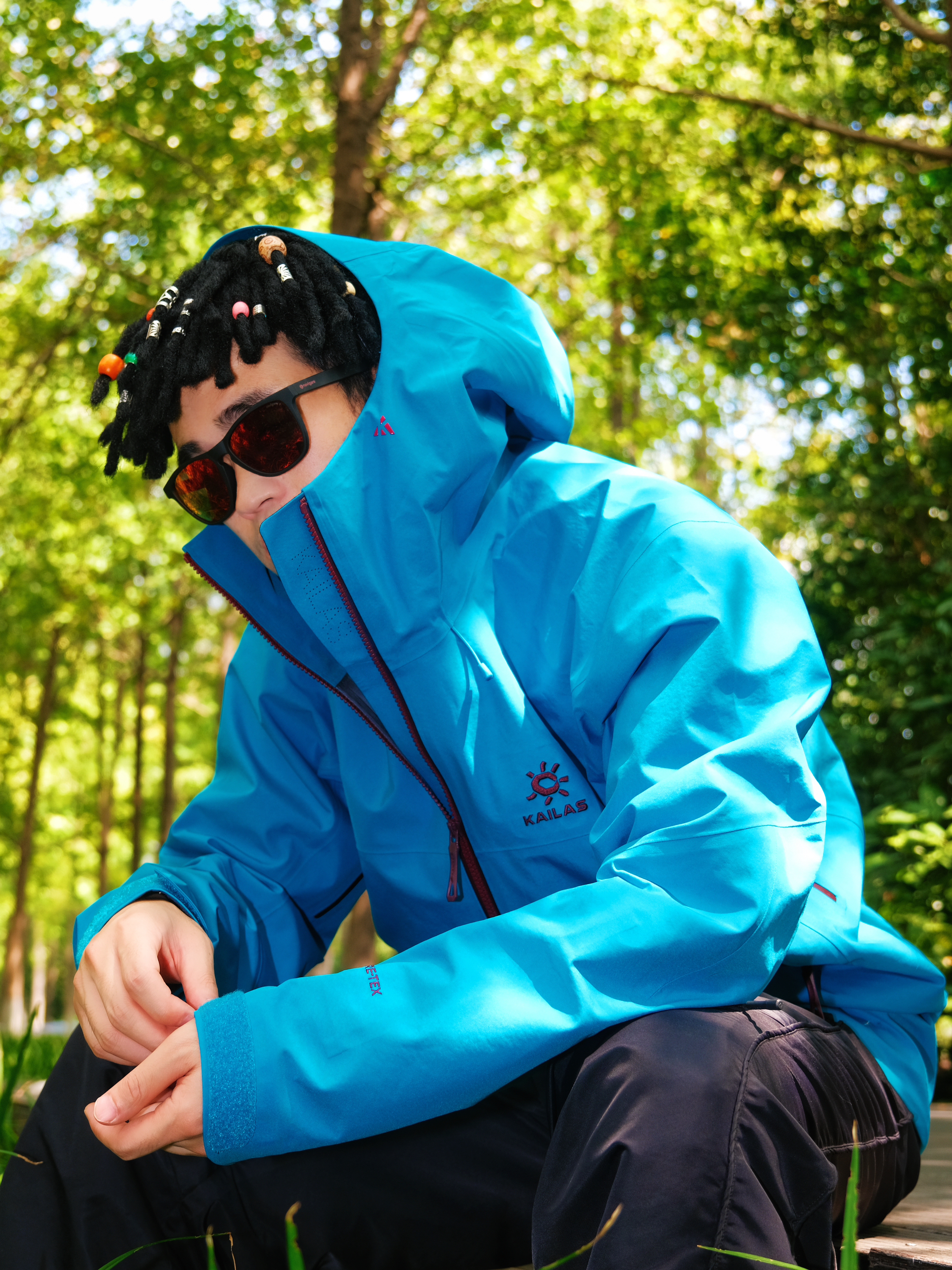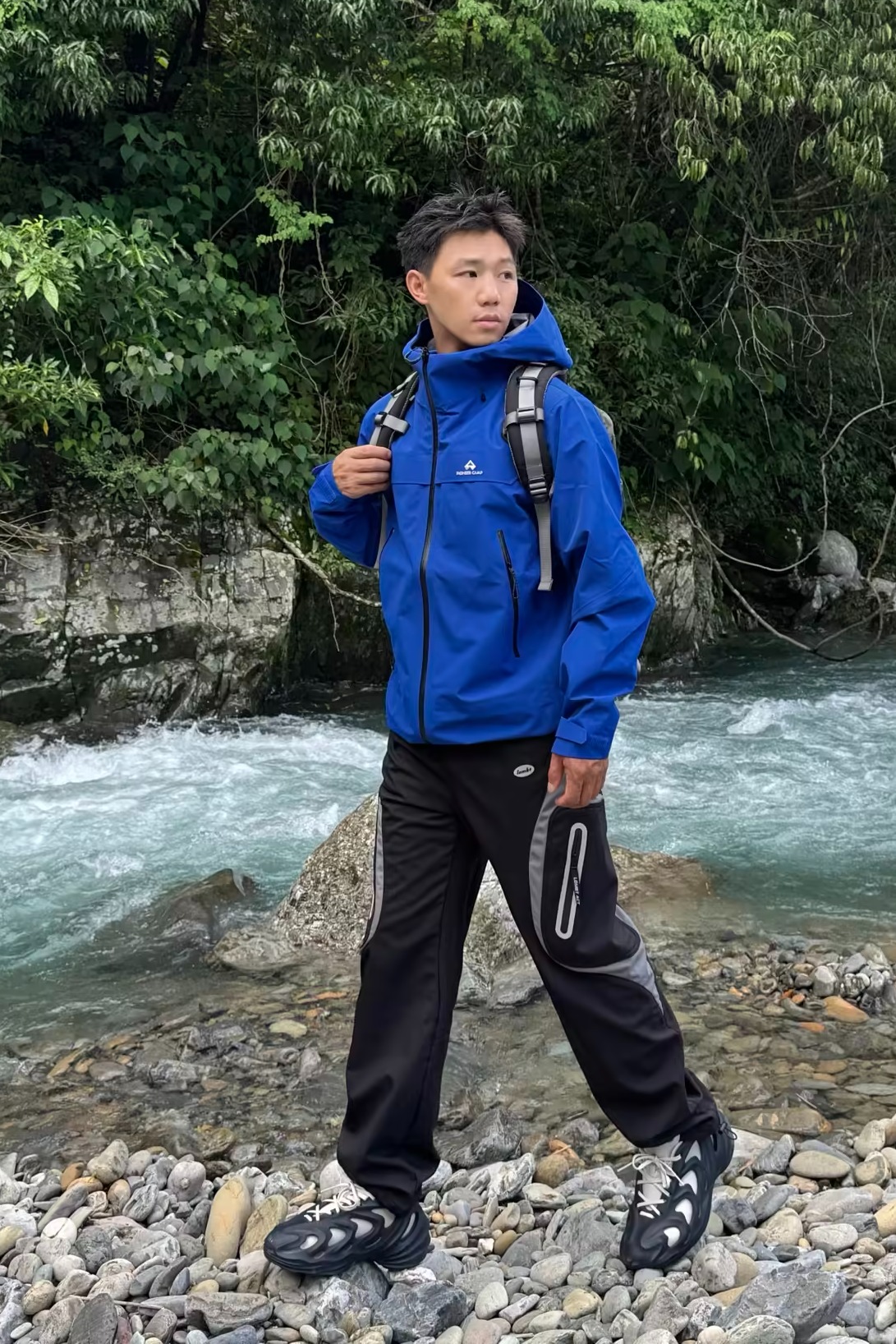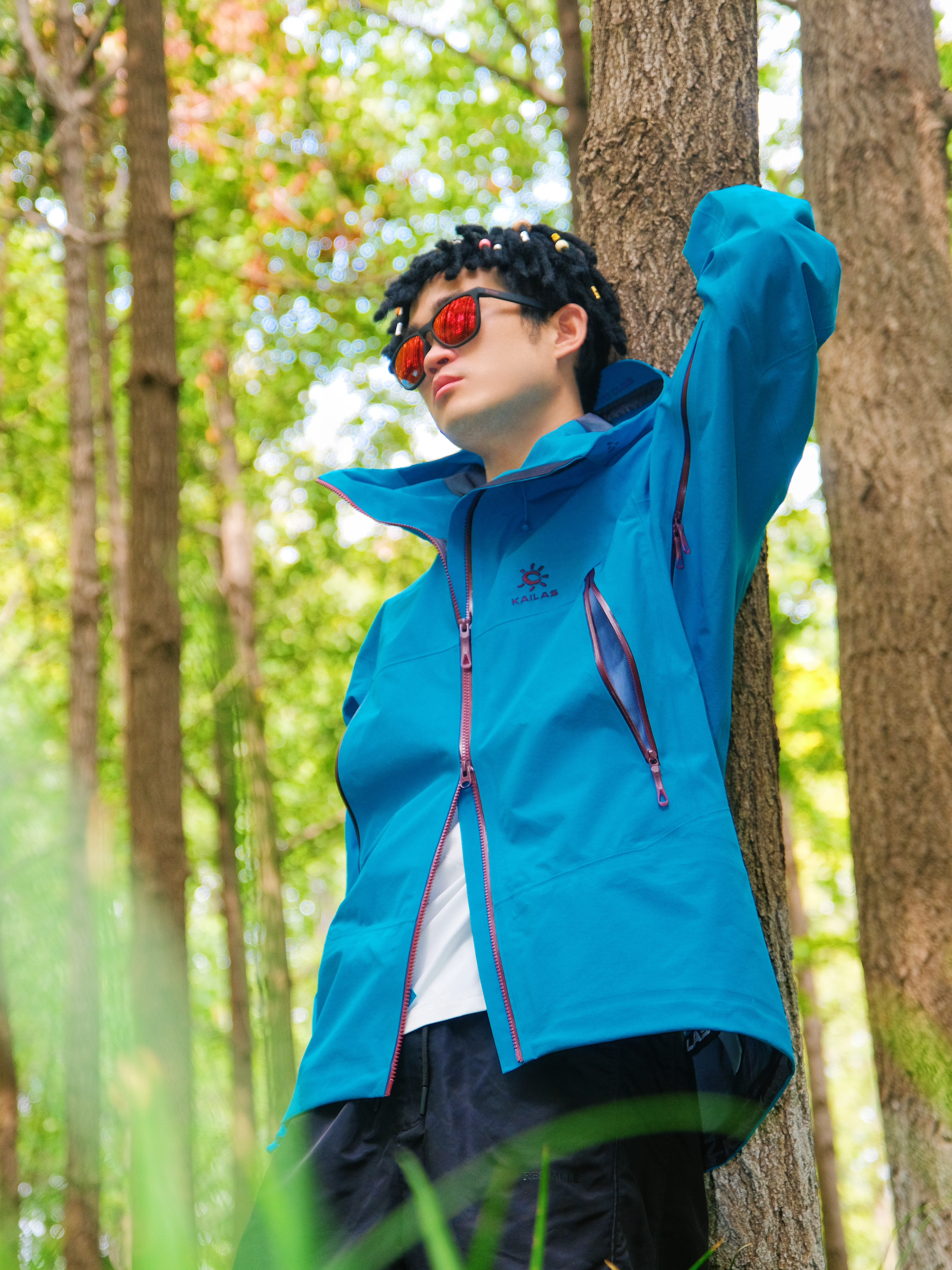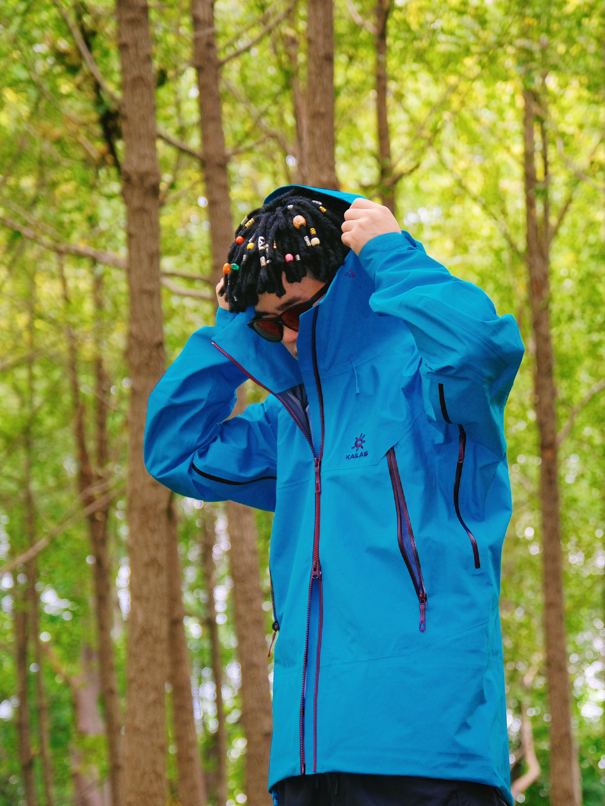突然降温的雨季户外🌧️ 还是得靠专业硬壳来给安全感~ @凯乐石KAILAS MONT-X冲锋衣的山涧蓝真的好显白 在绿树林里拍照超吸睛📸 GORE-TEX面料防风防水超靠谱 突然下雨也完全不用担心👌 穿它爬山徒步活动超自在 不会闷汗也不束缚动作 内搭选了白色速干T 下身简单配黑色户外长裤 整体轻机能风➕休闲感 日常穿也不违和✨ 尺码按平时正码选就OK 肩宽和衣长都合适 女生穿也不会显臃肿~