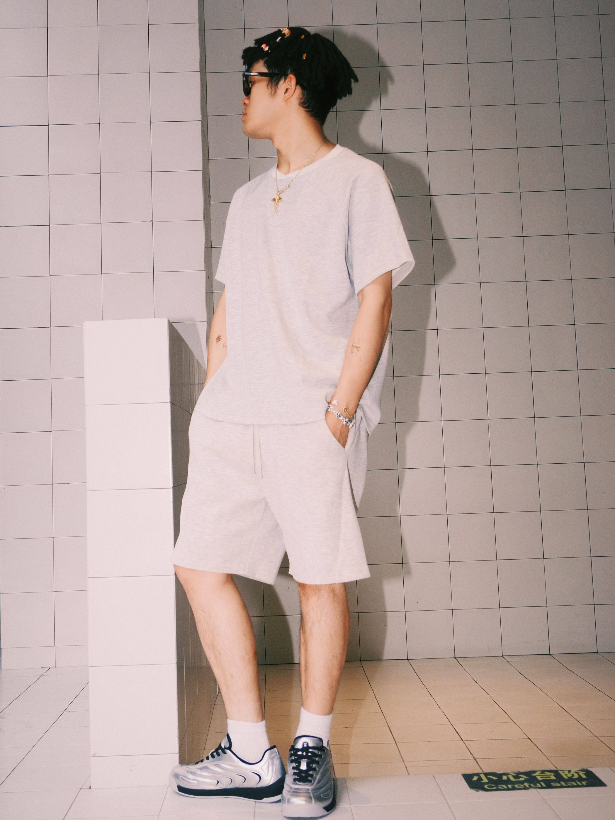 分享一套近期超爱的休闲look ▫️上衣:浅灰宽松T恤 DRK ▫️下装:同色系短裤 DRK ▫️鞋子:银色运动鞋(超百搭! 维动 VEIDOORN ▫️配饰:金属项链+多层手链 整体采用同色系叠穿思路 银鞋点睛灰色系懒人穿搭 墨镜和金属配饰增加层次感 轻松打造慵懒又不失细节的cityboy风格 最重要的是真的舒服! 轻薄面料+休闲鞋组合 走一整天都不会累脚👟
