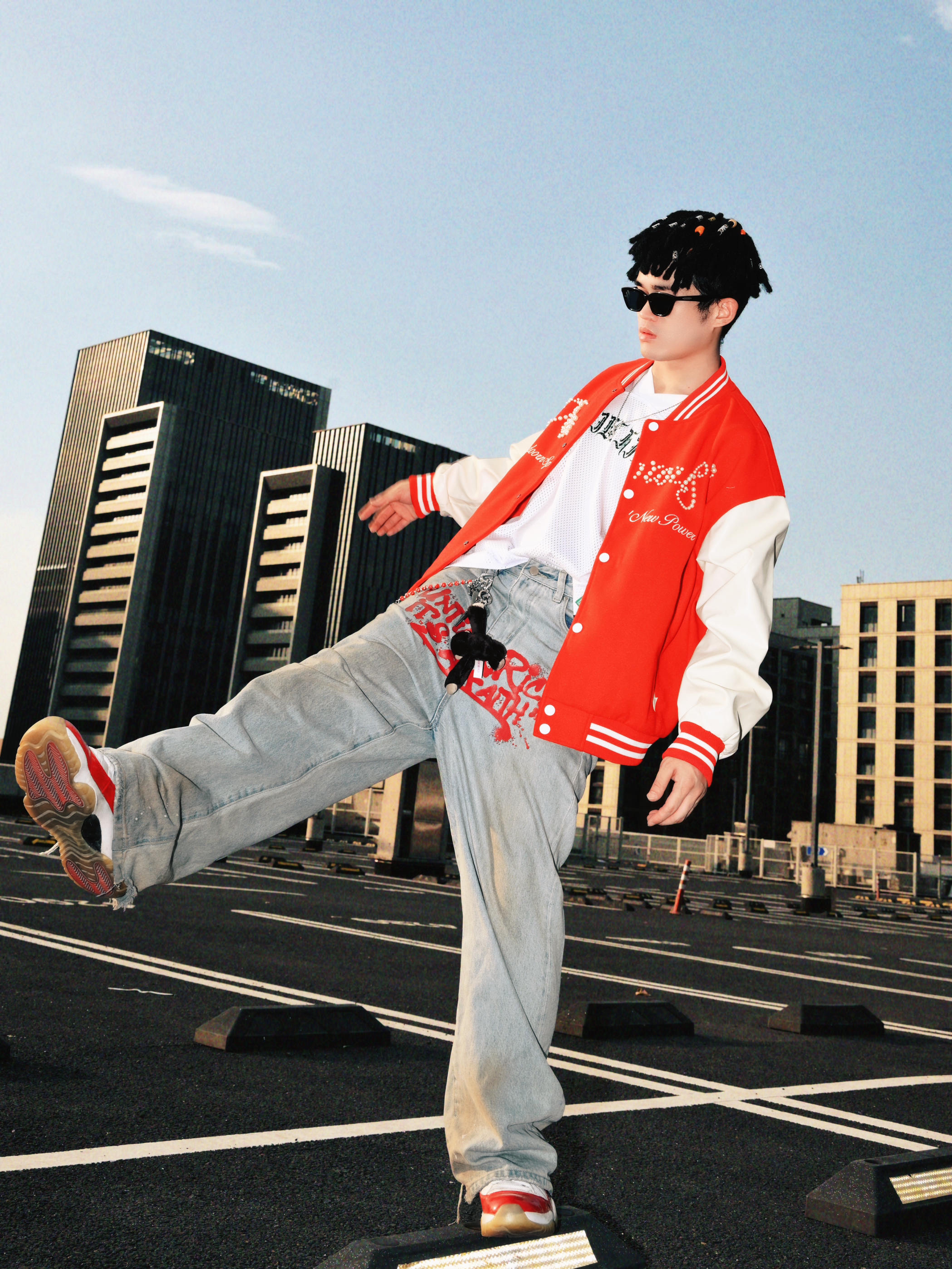 最近天气太适合户外拍照啦📸 停车场+蓝天背景真的好出片☁️ ▪️穿搭思路: 美式复古棒球服➕阔腿牛仔裤➕运动鞋 红白蓝配色经典又吸睛👌 裤腰挂饰增加街头感🔗 墨镜一戴谁也不爱😎 ▪️单品推荐: ▫️外套: 维动 VEIDOORN 拼色棒球服(厚度适中秋穿刚好 ▫️内搭:纯白T恤(简约干净 ▫️裤子:水洗牛仔裤(阔腿版型显腿长 ▫️鞋子:红白板鞋(百搭又好走 ▪️日常出街,轻松打造慵懒潮流感🛹