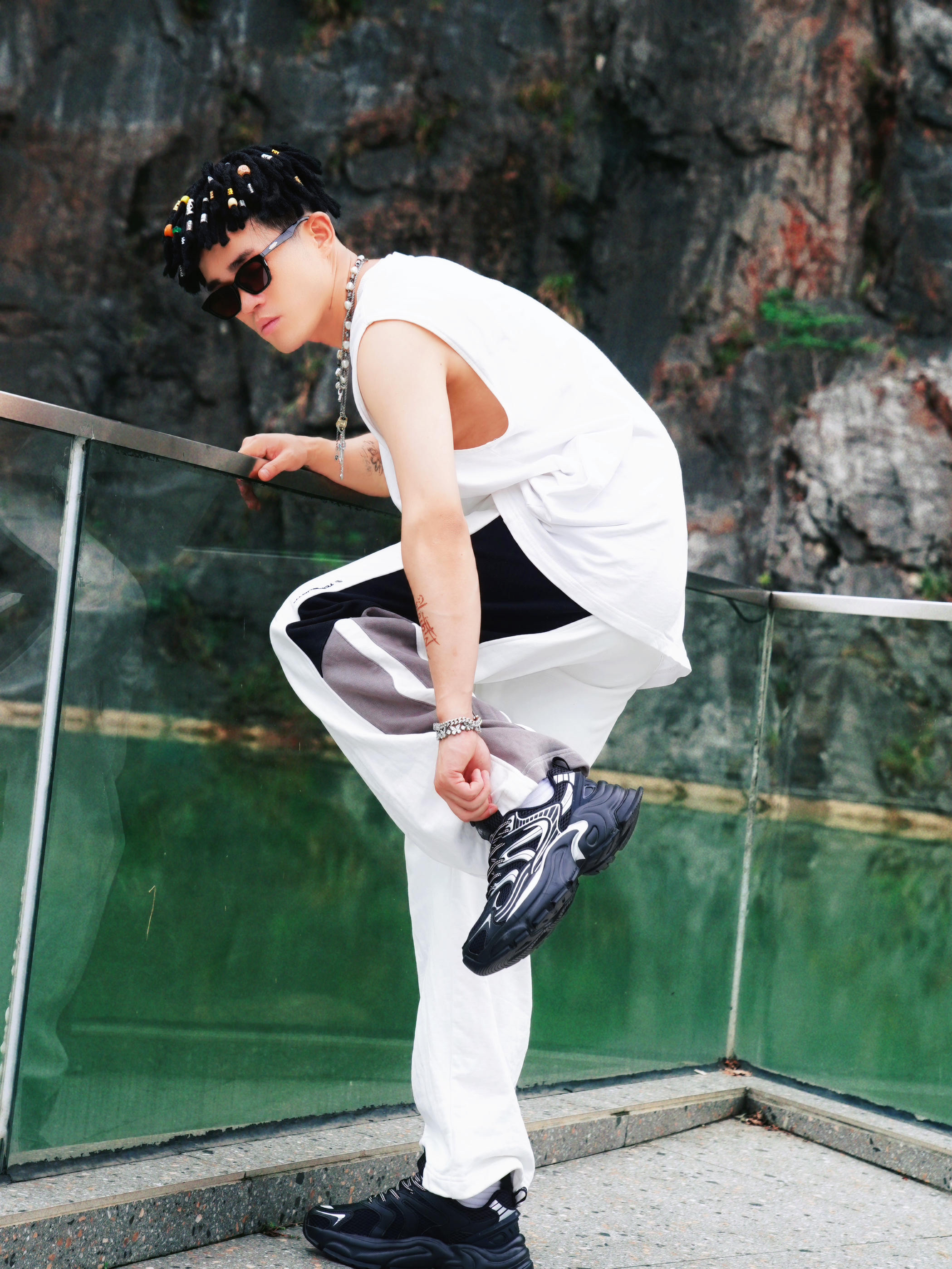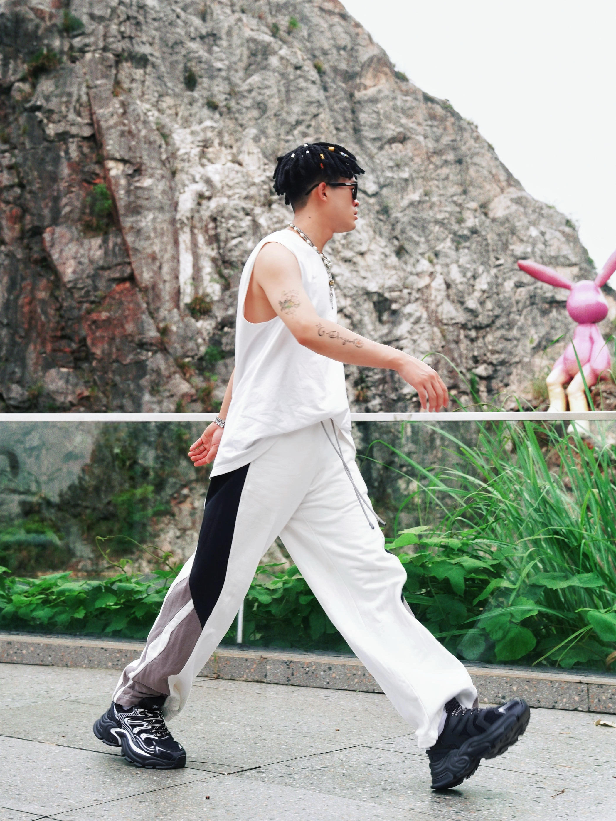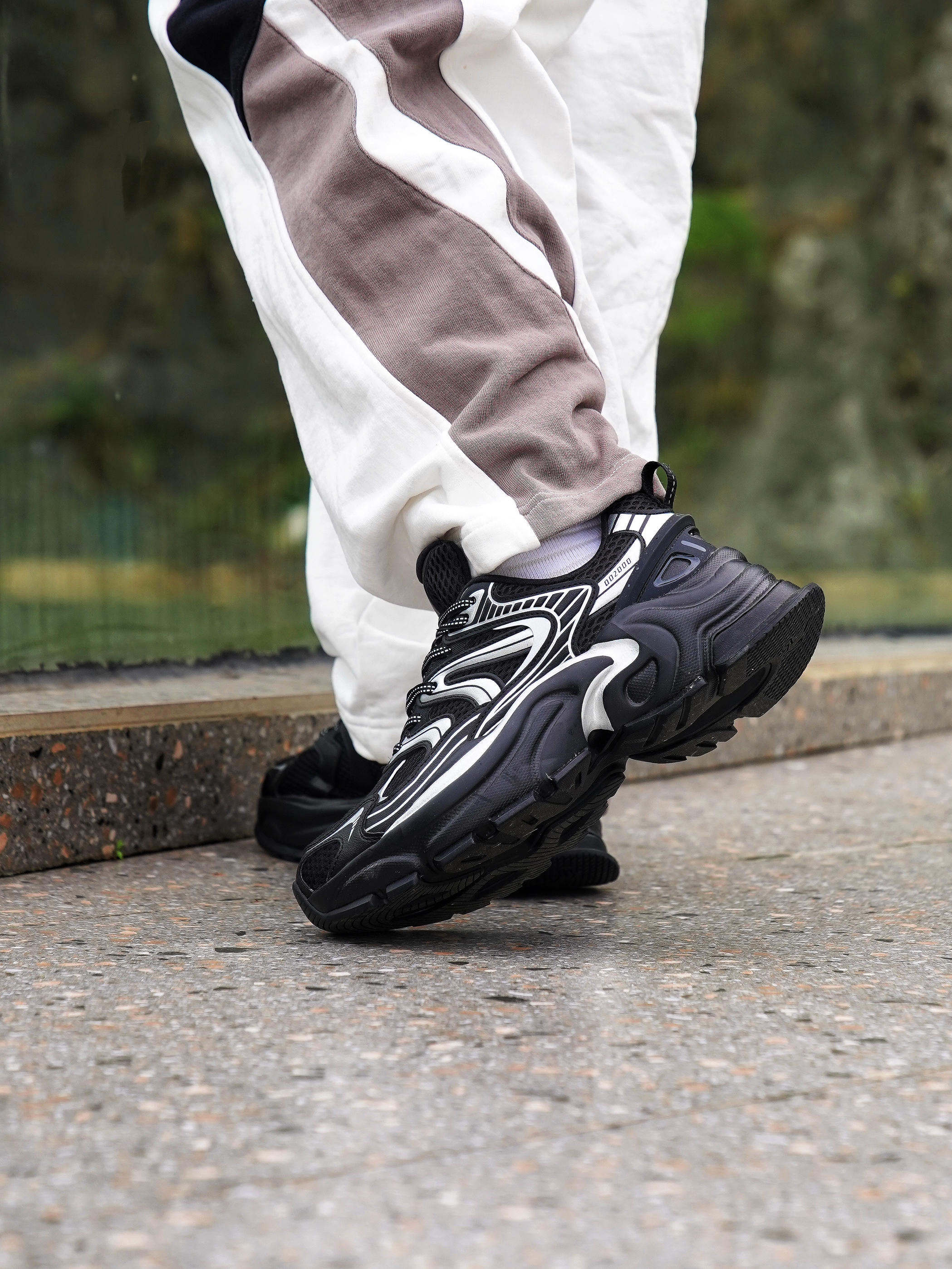 最近天气超适合户外活动,分享一套我的日常运动穿搭,简单又出片!🌳 🎽上身是白色无袖背心,清爽透气; 👖下装搭配黑白灰拼色的阔腿裤,侧边设计显瘦又潮流。⚠️👟重点来啦——脚上这双乔丹玄武mix老爹鞋,大廓形超吸睛,黑色鞋身加上银色线条,颜值超高,走路舒适不累脚,适合散步、出游各种场景。💨 📷在岩石绿植的背景里拍照,氛围感直接拉满,运动风中带点时尚感,日常穿也不会夸张。整体就是舒适、百搭,懒人也能轻松...
