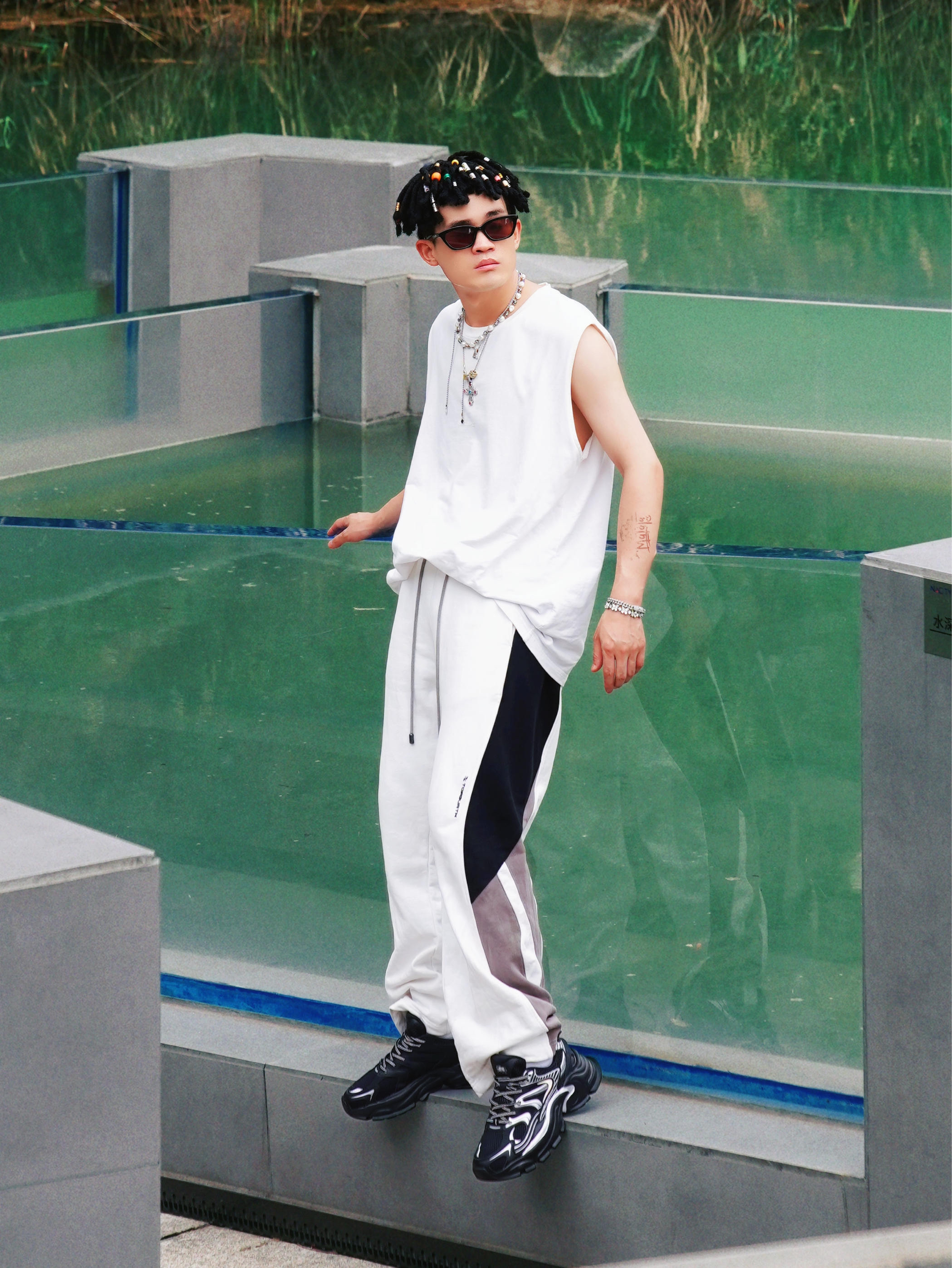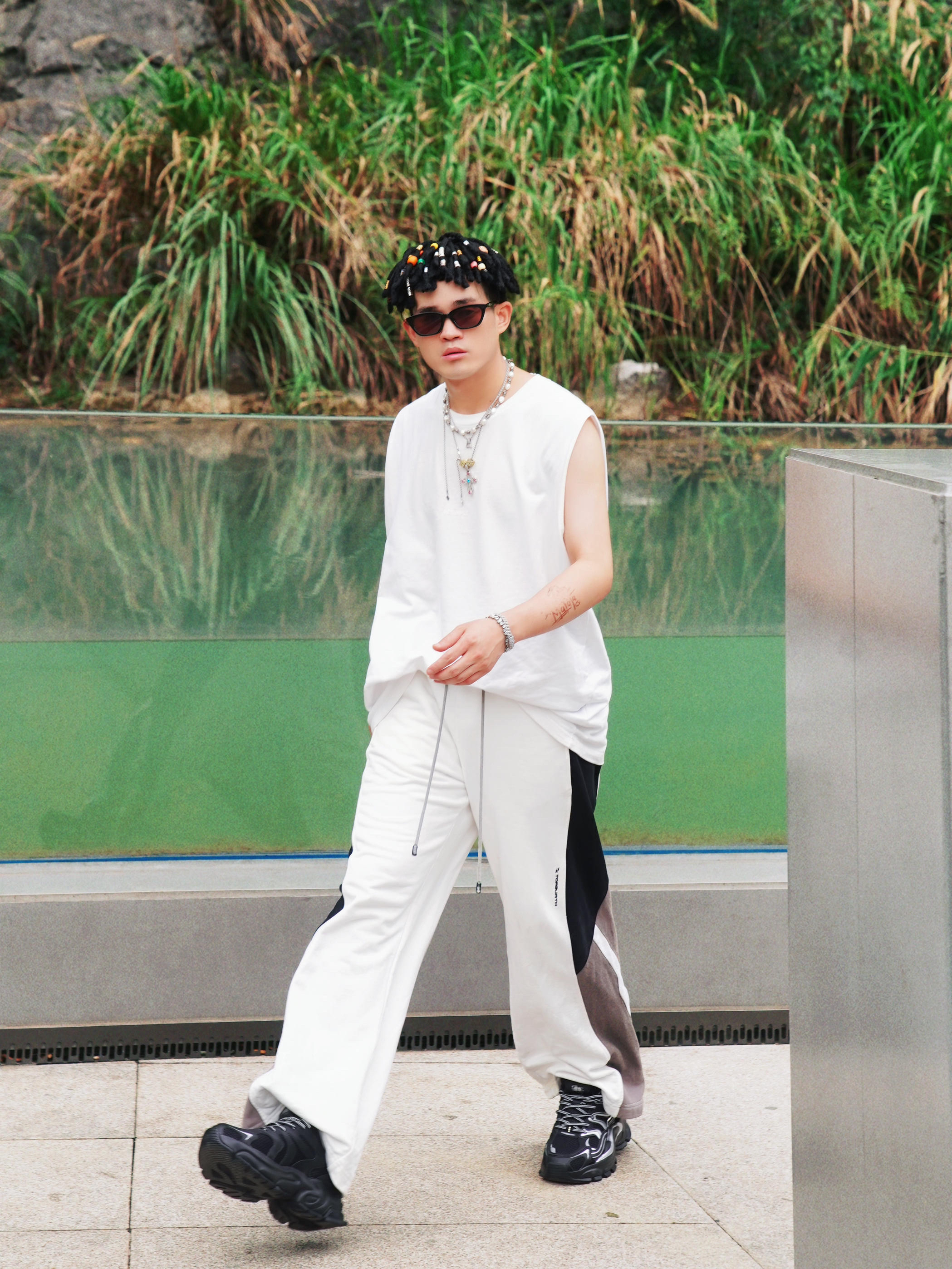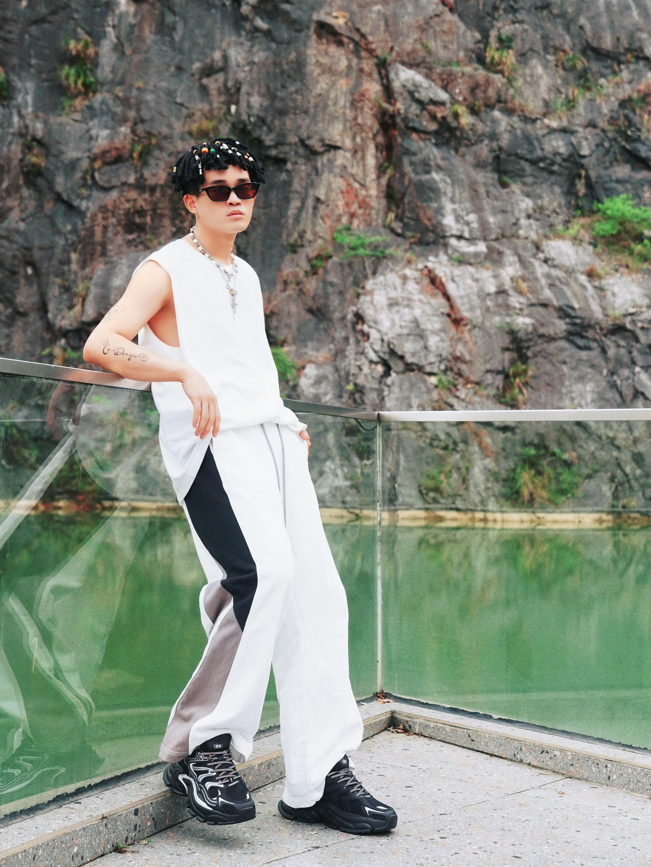 最近天气超适合户外活动,分享一套我的日常运动穿搭,简单又出片!🌳 🎽上身是白色无袖背心,清爽透气; 👖下装搭配黑白灰拼色的阔腿裤,侧边设计显瘦又潮流。⚠️👟重点来啦——脚上这双乔丹玄武mix老爹鞋,大廓形超吸睛,黑色鞋身加上银色线条,颜值超高,走路舒适不累脚,适合散步、出游各种场景。💨 📷在岩石绿植的背景里拍照,氛围感直接拉满,运动风中带点时尚感,日常穿也不会夸张。整体就是舒适、百搭,懒人也能轻松...