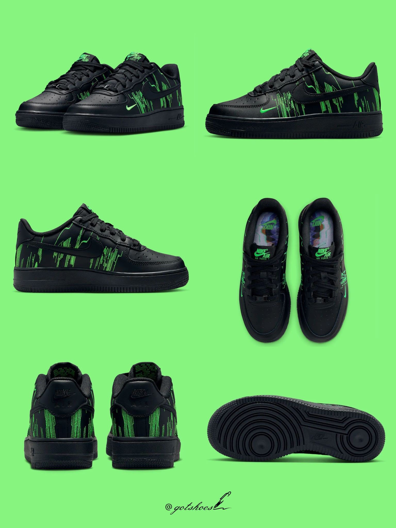 据悉,这款全新配色的Air Force 1设计灵感源自经典电影《黑客帝国》,鞋面以绿色刺绣模拟出数字代码般的视觉效果,整体风格相当炫酷。鞋身依旧采用熟悉的皮革材质包裹,质感一如既往地出色,不仅易于打理,搭配起来也毫无压力。 目前,全新 Nike Air Force 1 Low “Matrix”(GS)已在海外正式发售,定价为 $100 美元。感兴趣的朋友不妨多加留意后续消息。