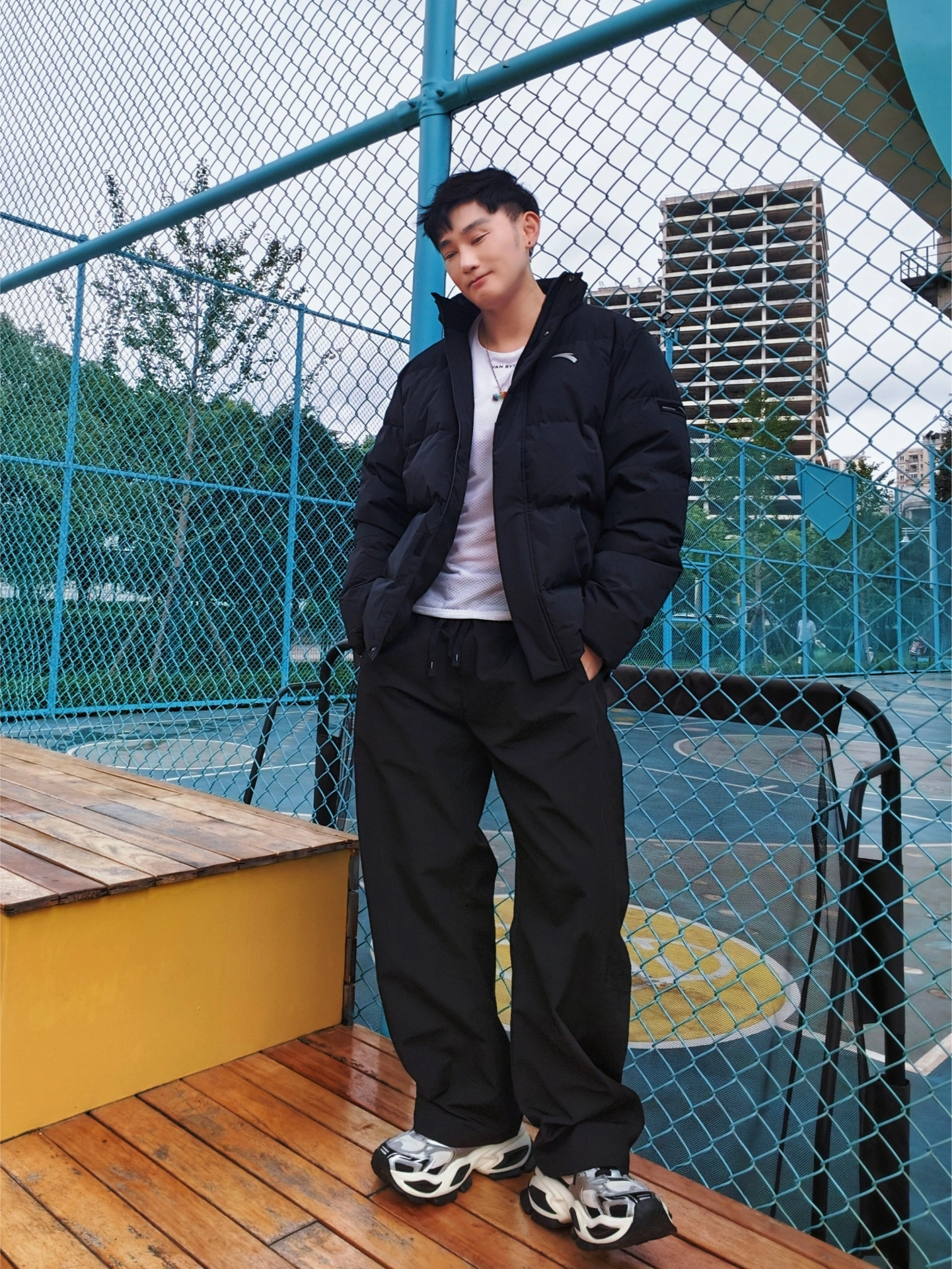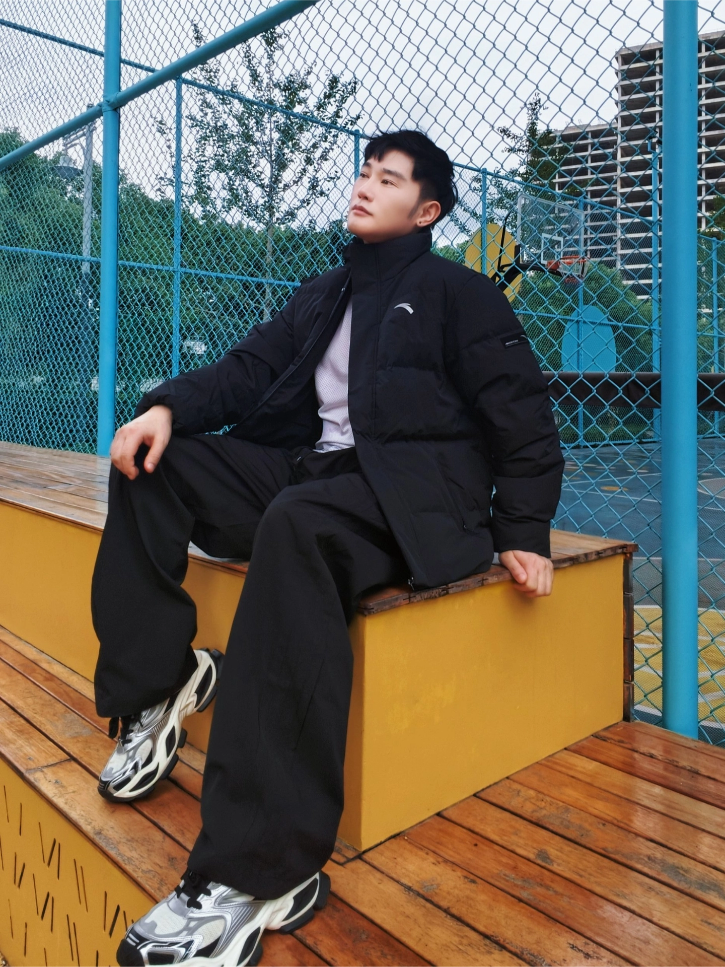 作为一年四季都要运动出街的人 我觉得秋冬保暖重要,但帅气也不能少。 我喜欢内搭白色运动背心,运动不闷💦; 下搭黑色运动弯刀裤,动起来不拘束,好看; 脚踩舒适老爹鞋,走路运动都轻松。 不同于其他季节,我秋冬保暖基本套一件羽绒服就好了。今天选择#安踏 家黑色羽绒服,基础款立领设计。主要是黑色百搭不挑人,哑光面料有看着有质感,四防耐磨还耐脏,个人觉得很适合运动男生。关键75%鸭绒保暖的很,拿着很轻,速暖...