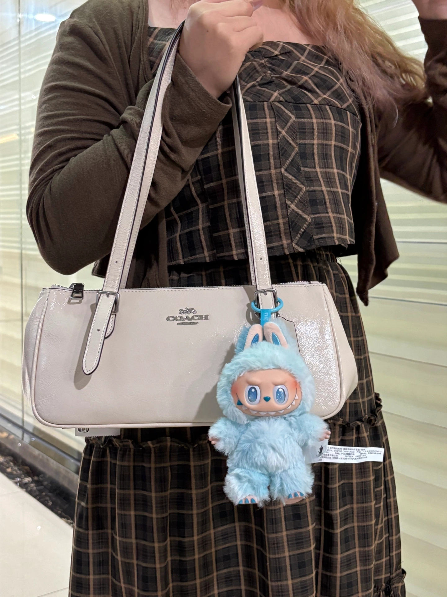 我发现夏天背白色包包好清新呀~这个包型长长的,日常出门要带的东西都能装下!肩带能自己调节长短,背起来很方便~而且真的很百搭,搭裙子、T恤都好看🥳 不过要是有个夹层分类放东西就更完美啦~