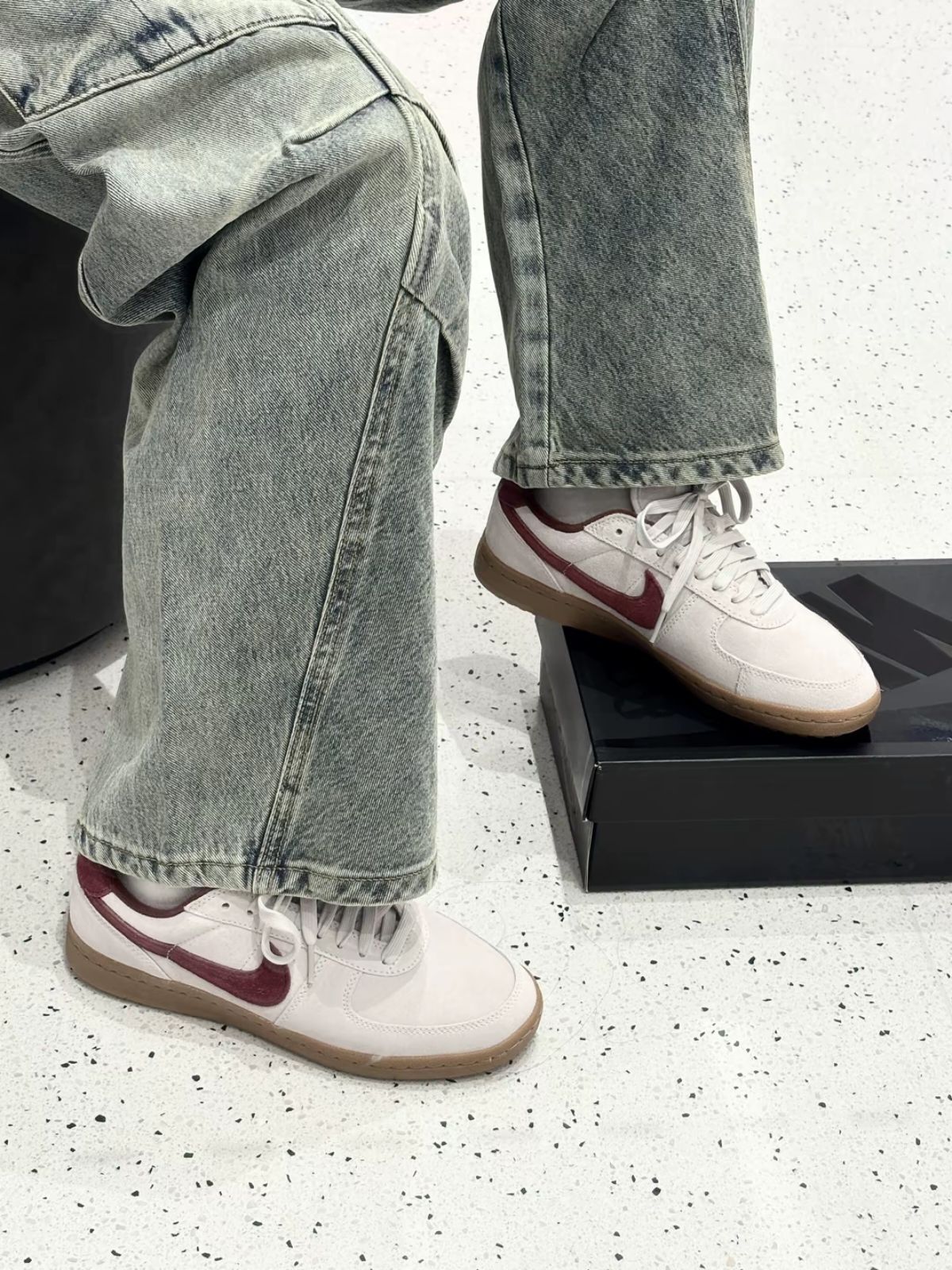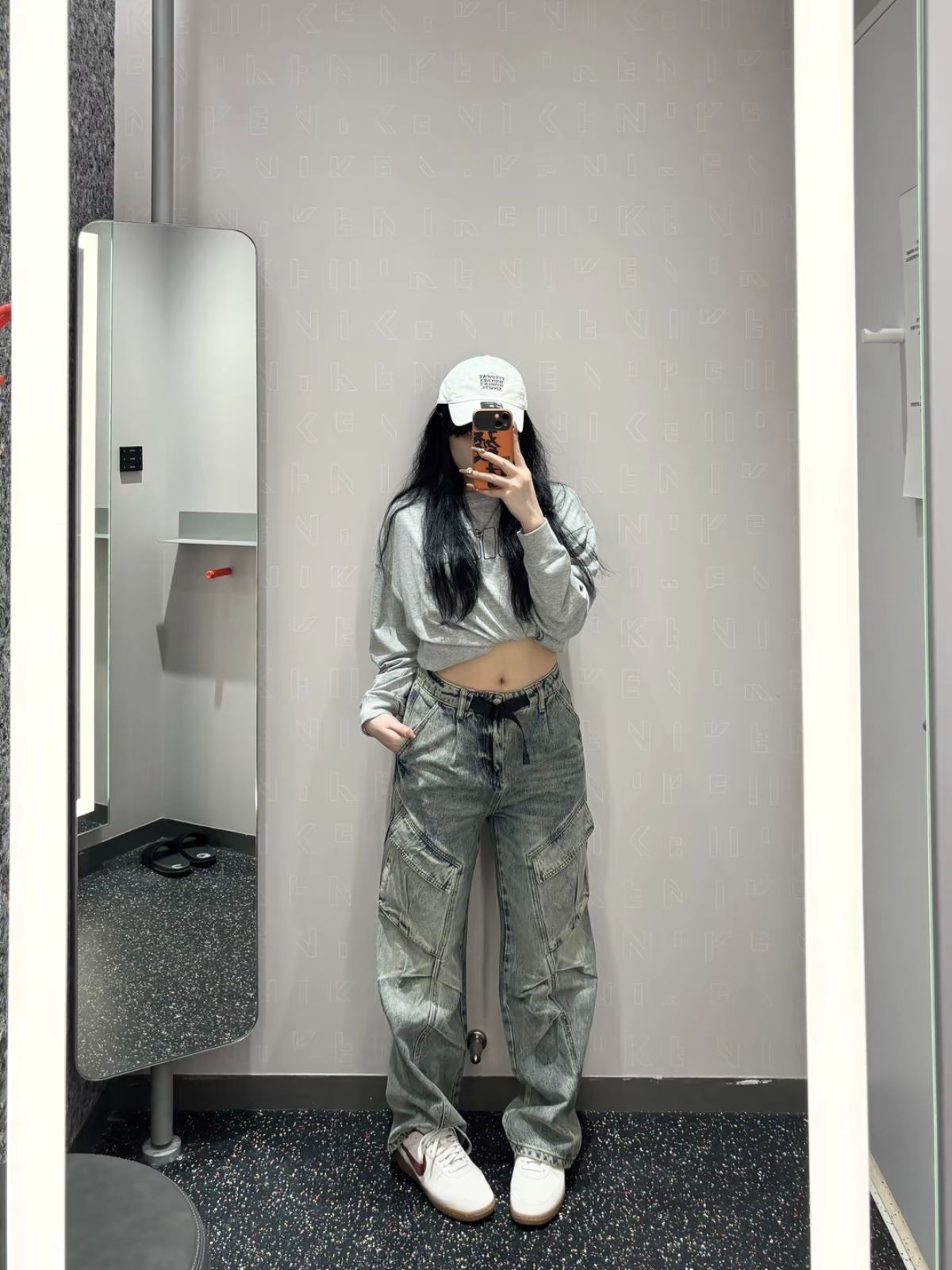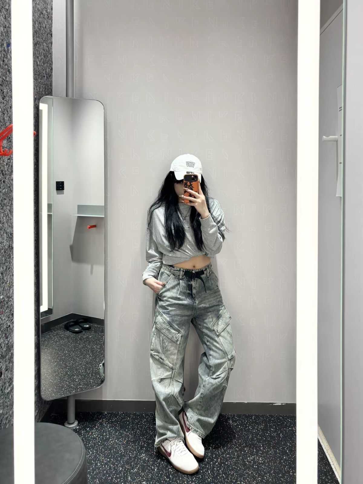 芜湖,nike太会出板鞋啦~ 今日份分享ootd 藕粉小板鞋搭配一套通勤look 偏甜酷风噢😍 灰色长T恤➕牛仔裤👖 T恤版型宽松慵懒 裤子街头风,宽松直筒 一套街头风look 搭配个帽子更好看啦~