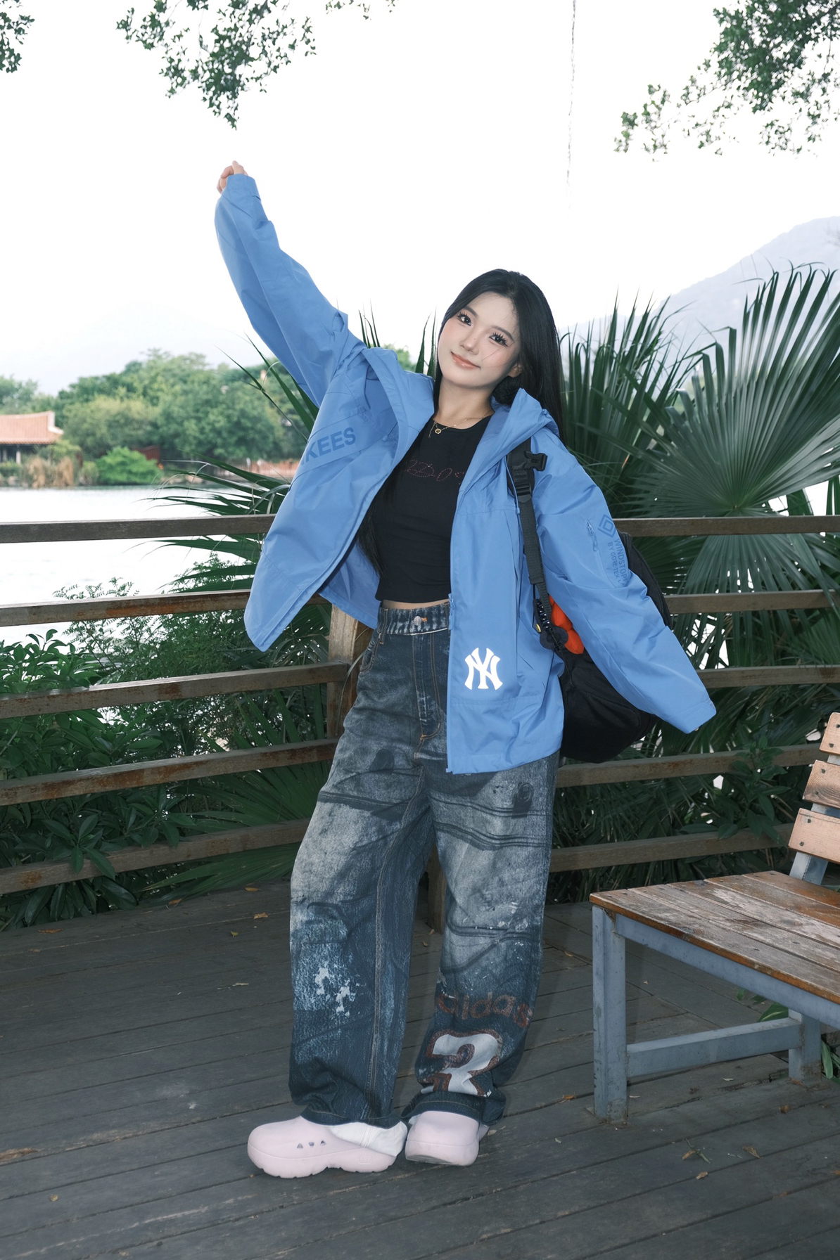 宝子们看过来👀 这件蓝色山系冲锋衣赢麻了 穿上它去户外撒野🌳 防风又好看,亮蓝色特别显白✨ 搭配做旧牛仔裤和洞洞鞋,休闲感拉满~ 不管是去湖边散步还是爬山都很适配,主打一个舒适又潮酷😎 山系女孩的日常穿搭这不就有了嘛!