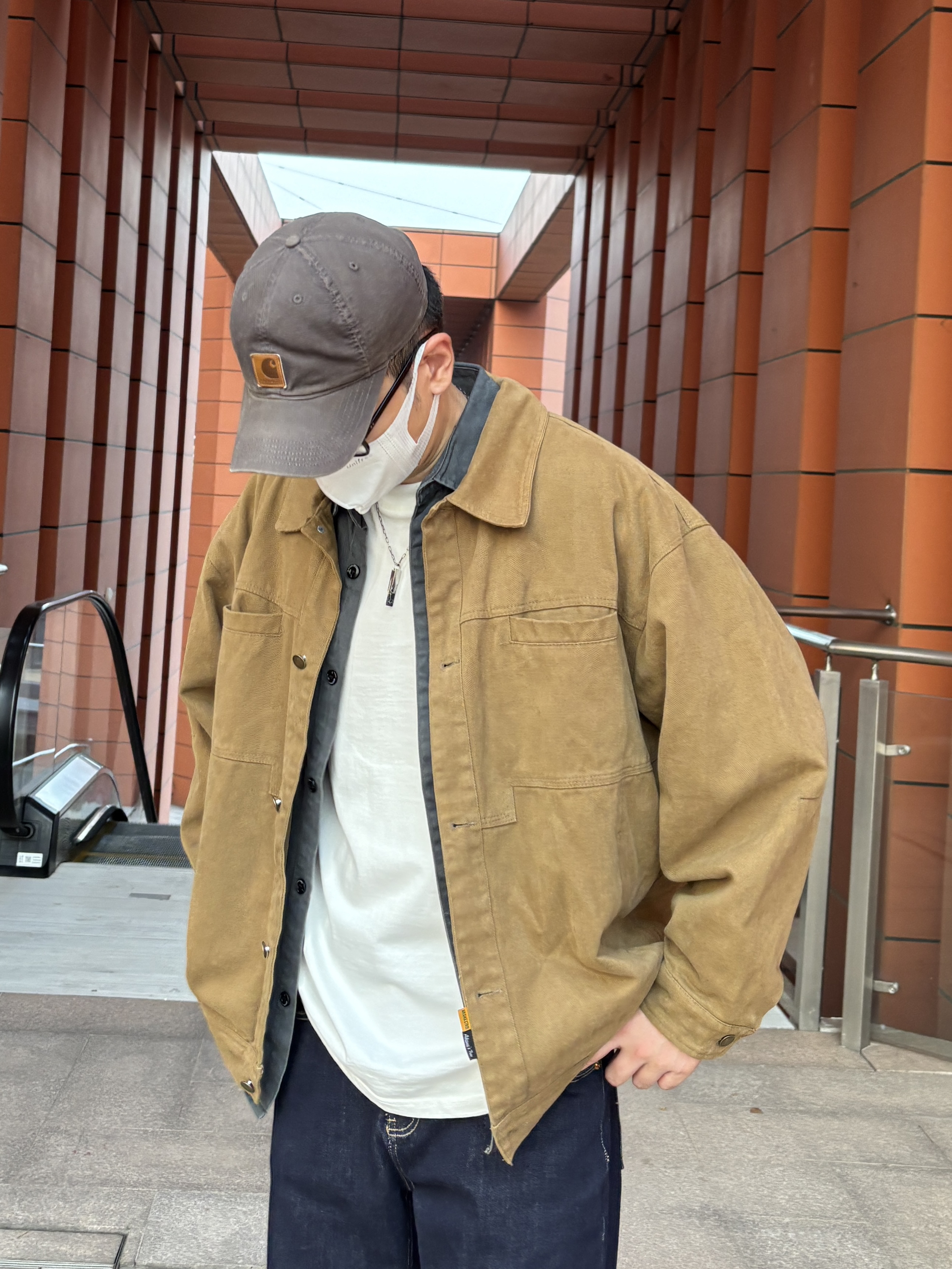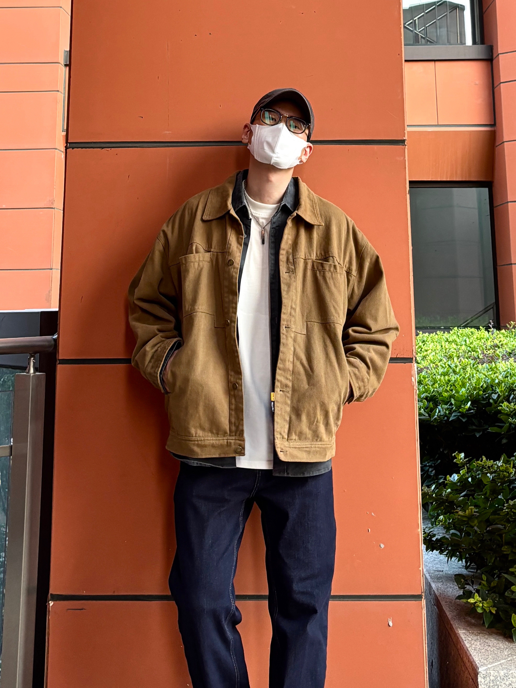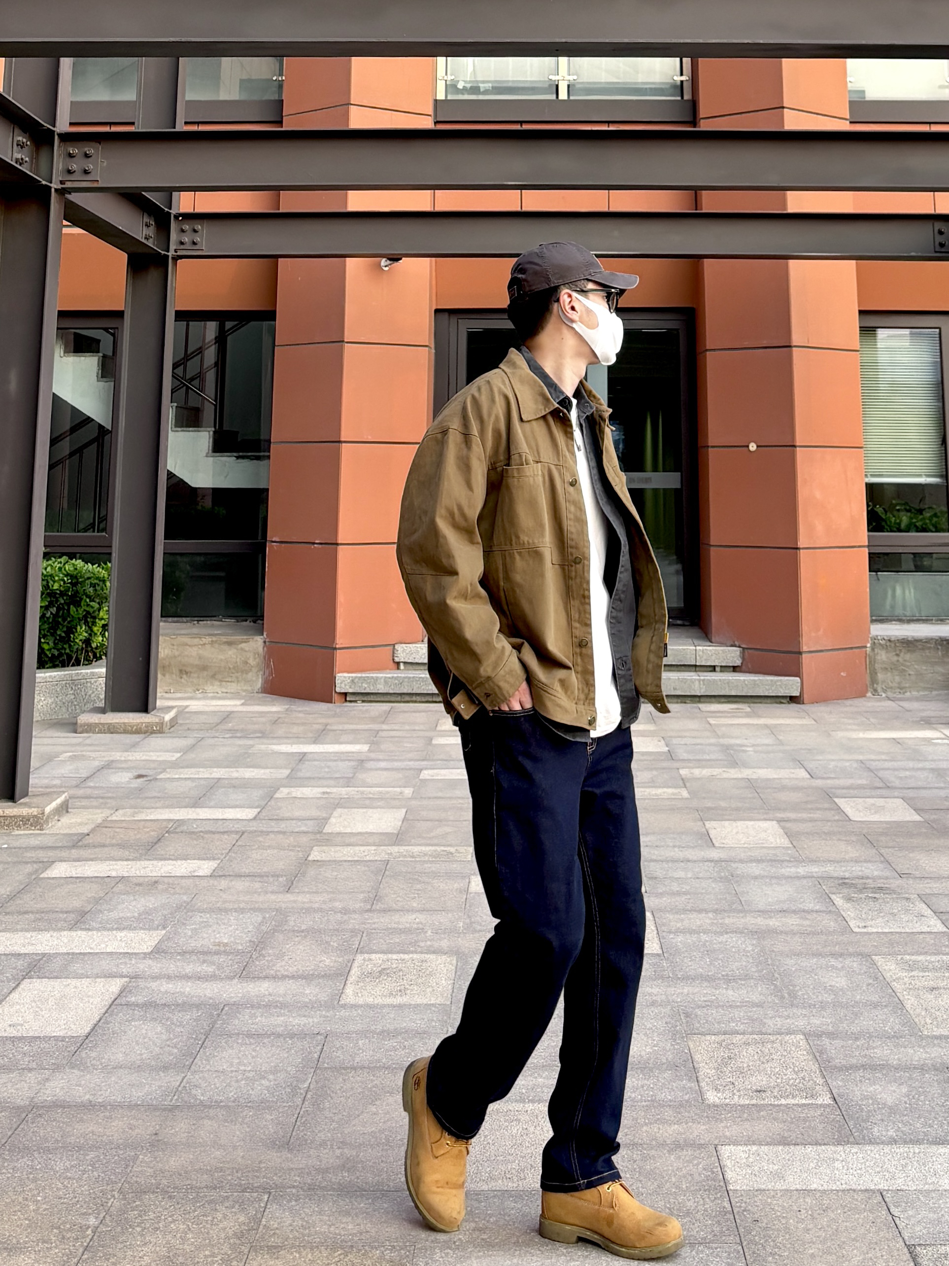 今天上身灰色工装衬衫搭配卡其色工装夹克,搭配原色水洗牛仔裤,主打一个硬帅。 - 今日搭配 衣服裤子都来自:NICE LILI 鞋子:timberland