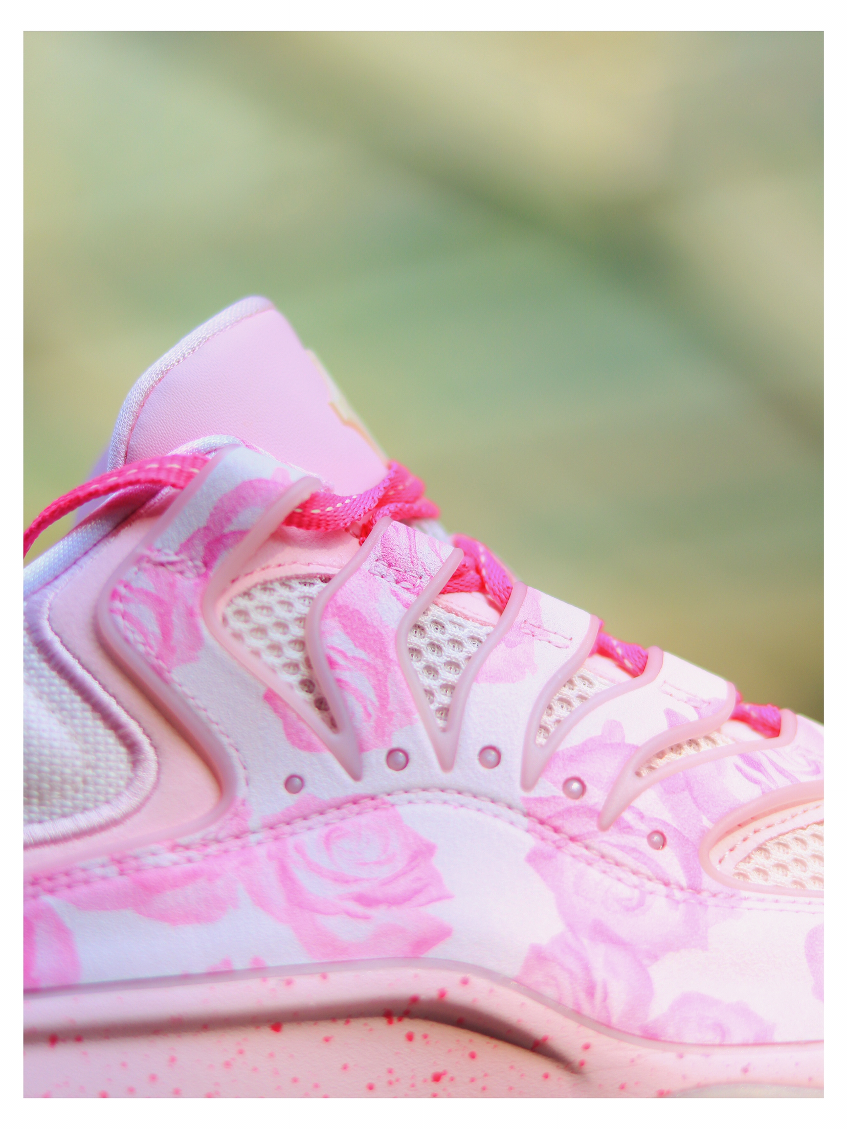 #人人都是球鞋博主 休闲运动风KD18 篮球鞋开箱分享 粉白色系织物料结合皮革包裹帮面 花朵🌺印花细节 中底缓震 大底面橡胶耐磨防滑 尺码正常 出街搭配高级舒适
