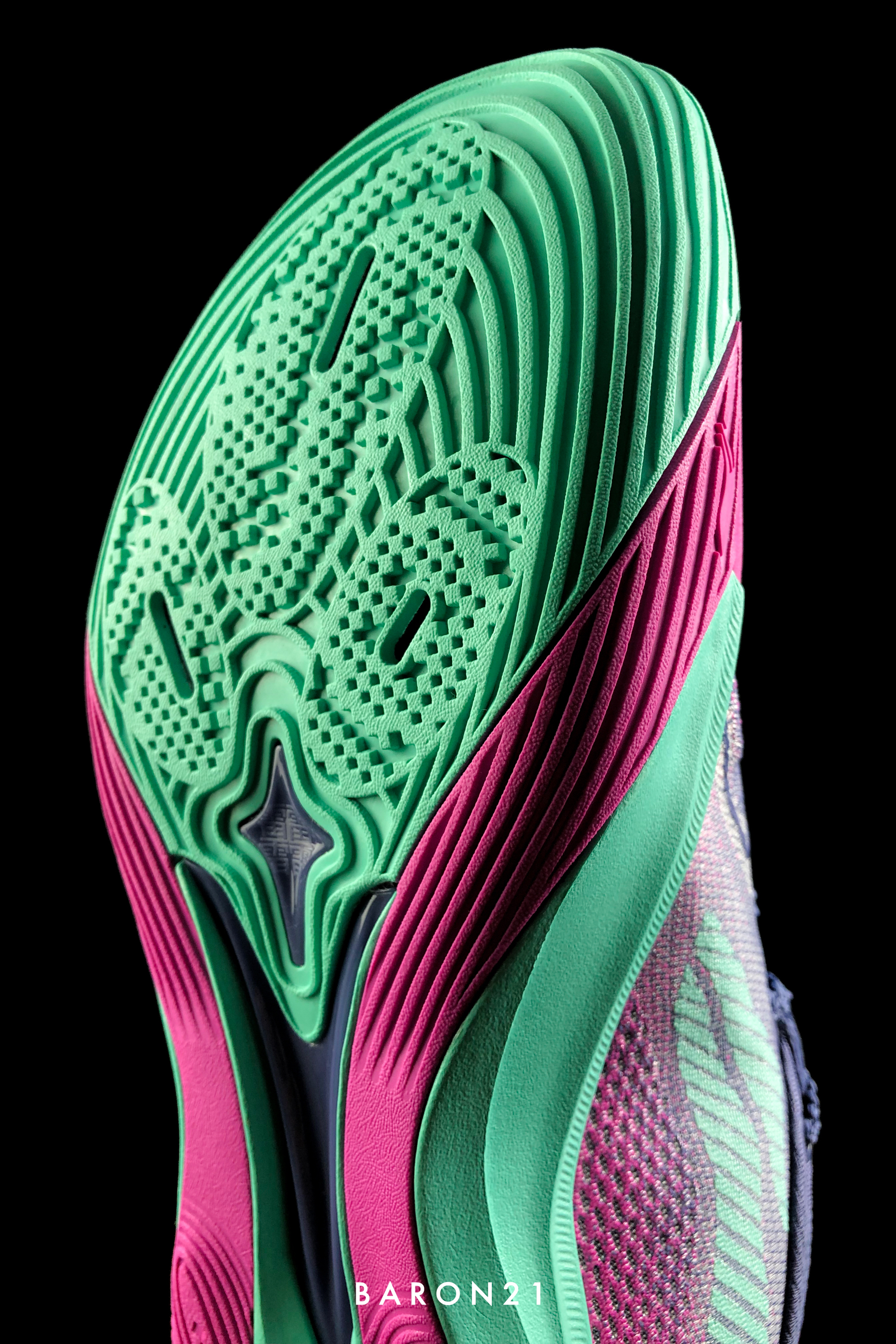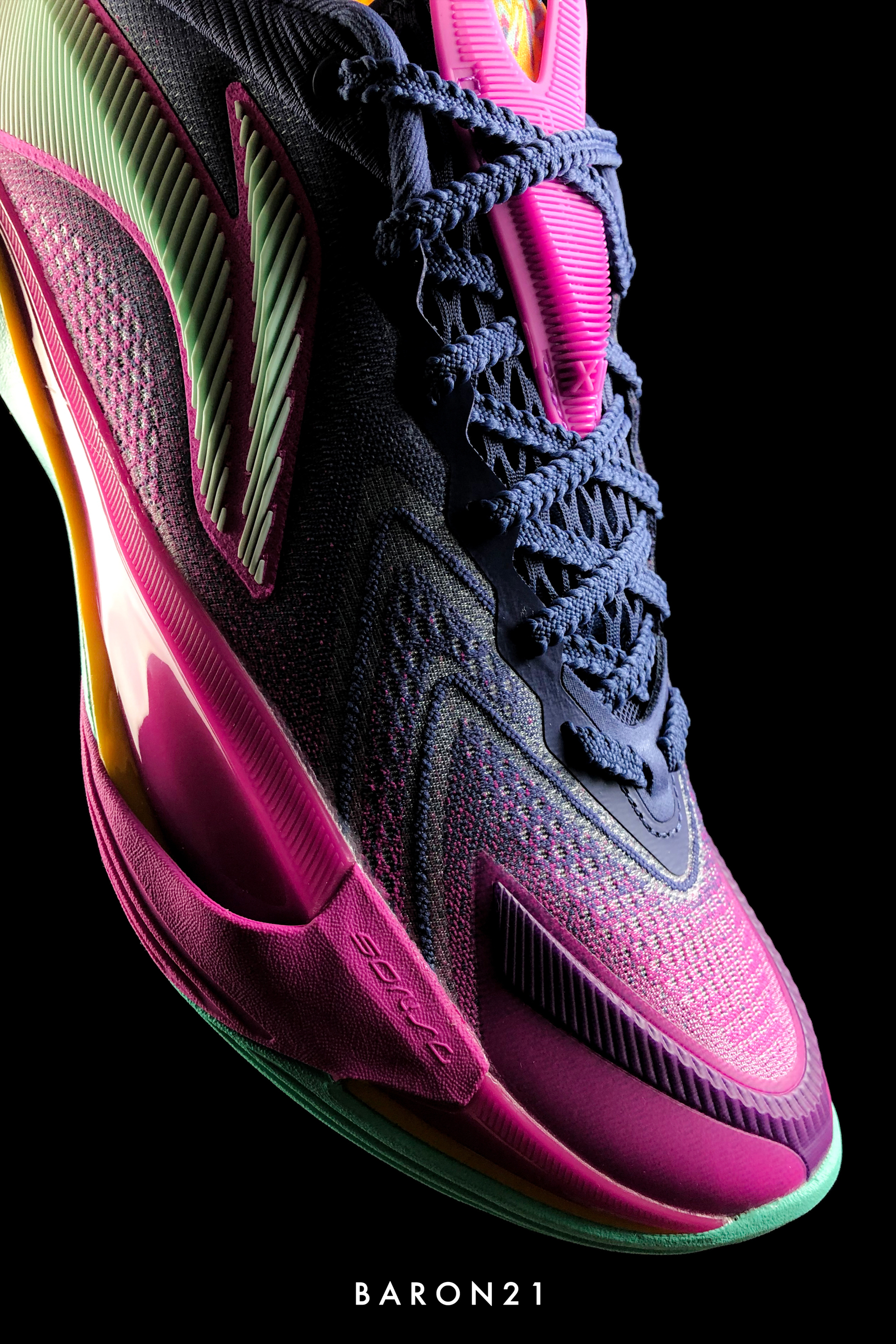 入手了一双音速13V2新配色:危险植物,原因就是这个配色太好看了!虽然这双用了多色彩搭配,但实物看起来丝毫不“缤纷水果”。能看出来设计师在色系选择和搭配上的用心程度,所以才会有这样一双显高级的配色。我愿称之为音速13的颜值担当! 拍完这组照片后,顺带上脚试了试。力线比较正,足弓支撑可以。前掌属于比较弹一些,脚感并不软,适合跑动型后卫。尺码正,包裹适中。