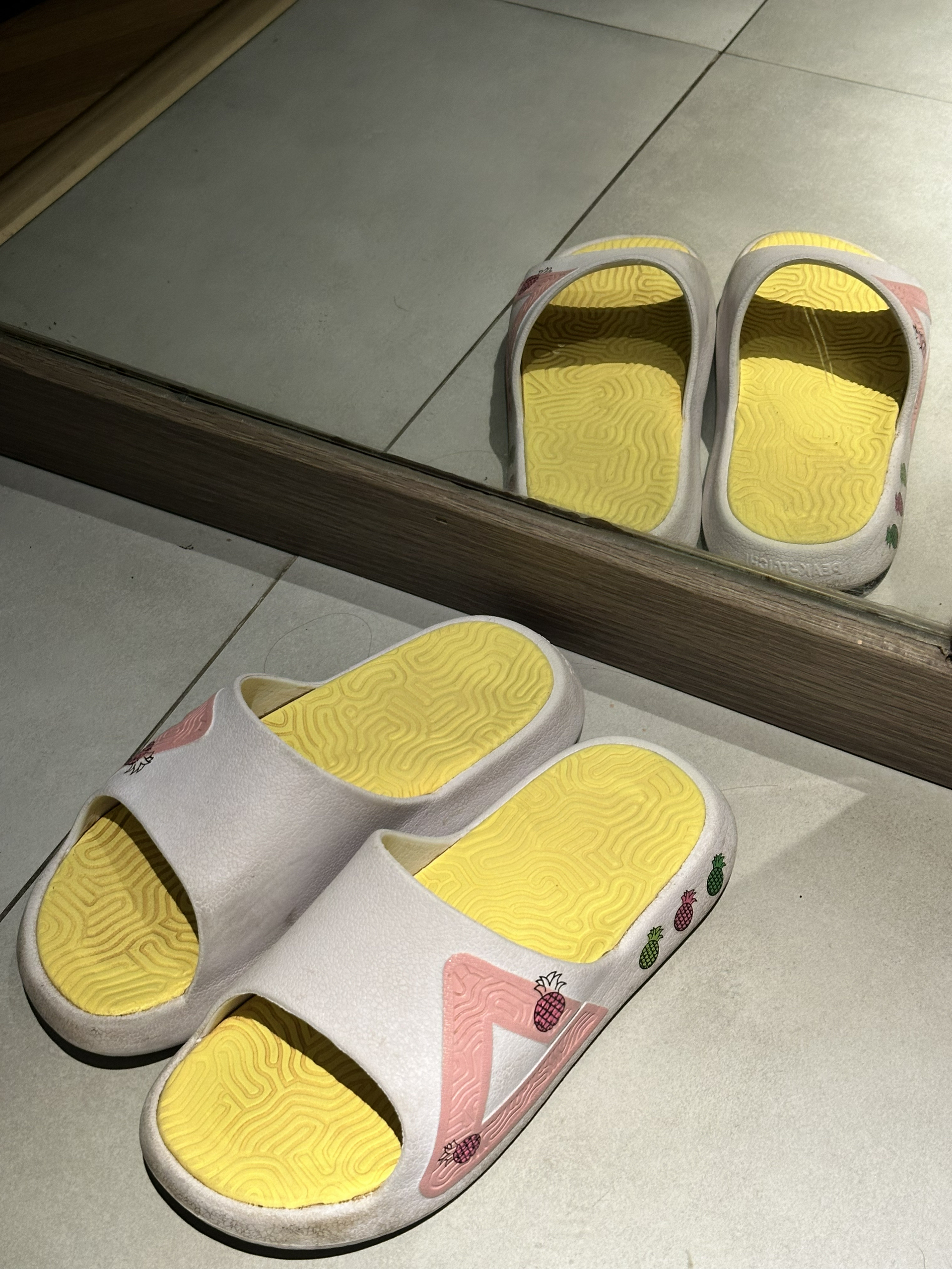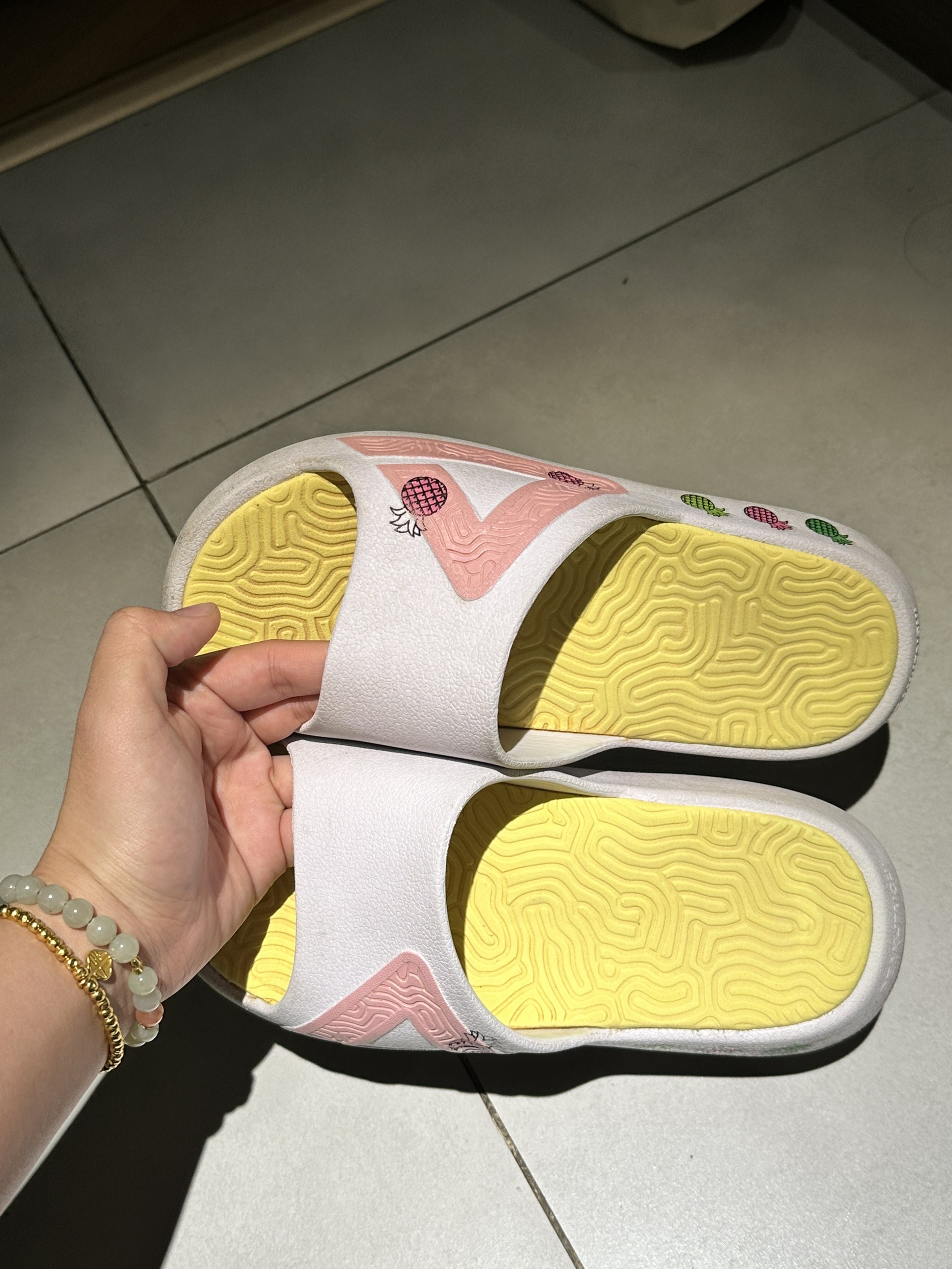 虽然这双拖鞋已经被我穿久了 但是也是我最喜欢的一双拖鞋了!!!😻 脚感很舒服 软软的🥰 而且这个配色真的很好看!!非常高颜值!!! 超级推荐大家购买!!!🤩