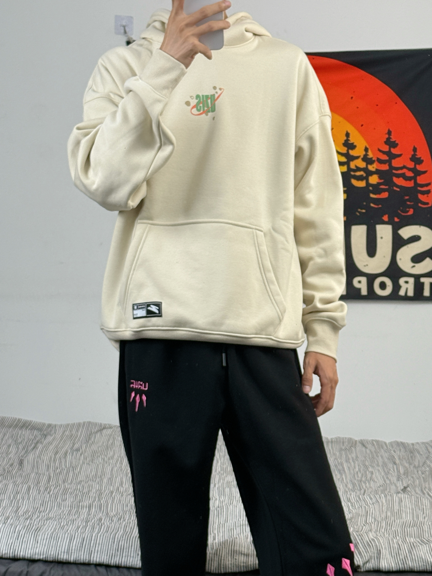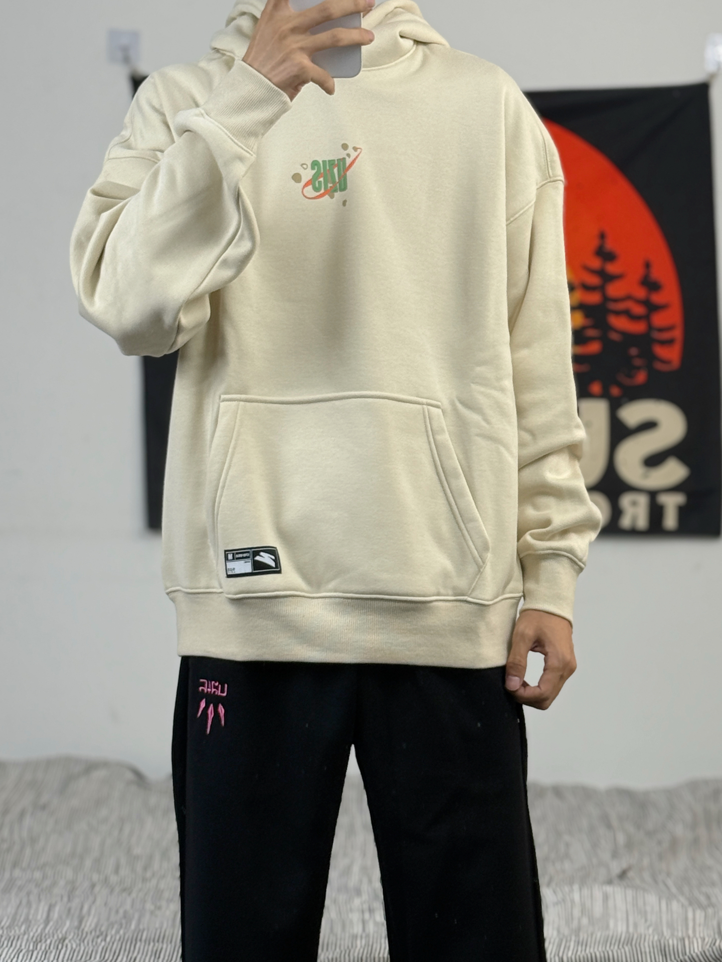 身高174体重48kg 今日上身 休闲卫衣+休闲裤+板鞋 😃😃 👔 #有志者UZIS 上身搭配的有志者家的杏色卫衣 美式校园风格,宽松版型,胸口有小logo设计,后背也有大片印花,比较有个性[爱心_blue] 上身柔软舒适 内里做了加厚处理,比较保暖,适合深秋来穿 174/48kg 上身m码 刚刚好🥸 🤓🤓 👖 #有志者UZIS 裤子搭配的这种直筒休闲裤 美式风格,有粉色刺绣设计😘 直筒版型...