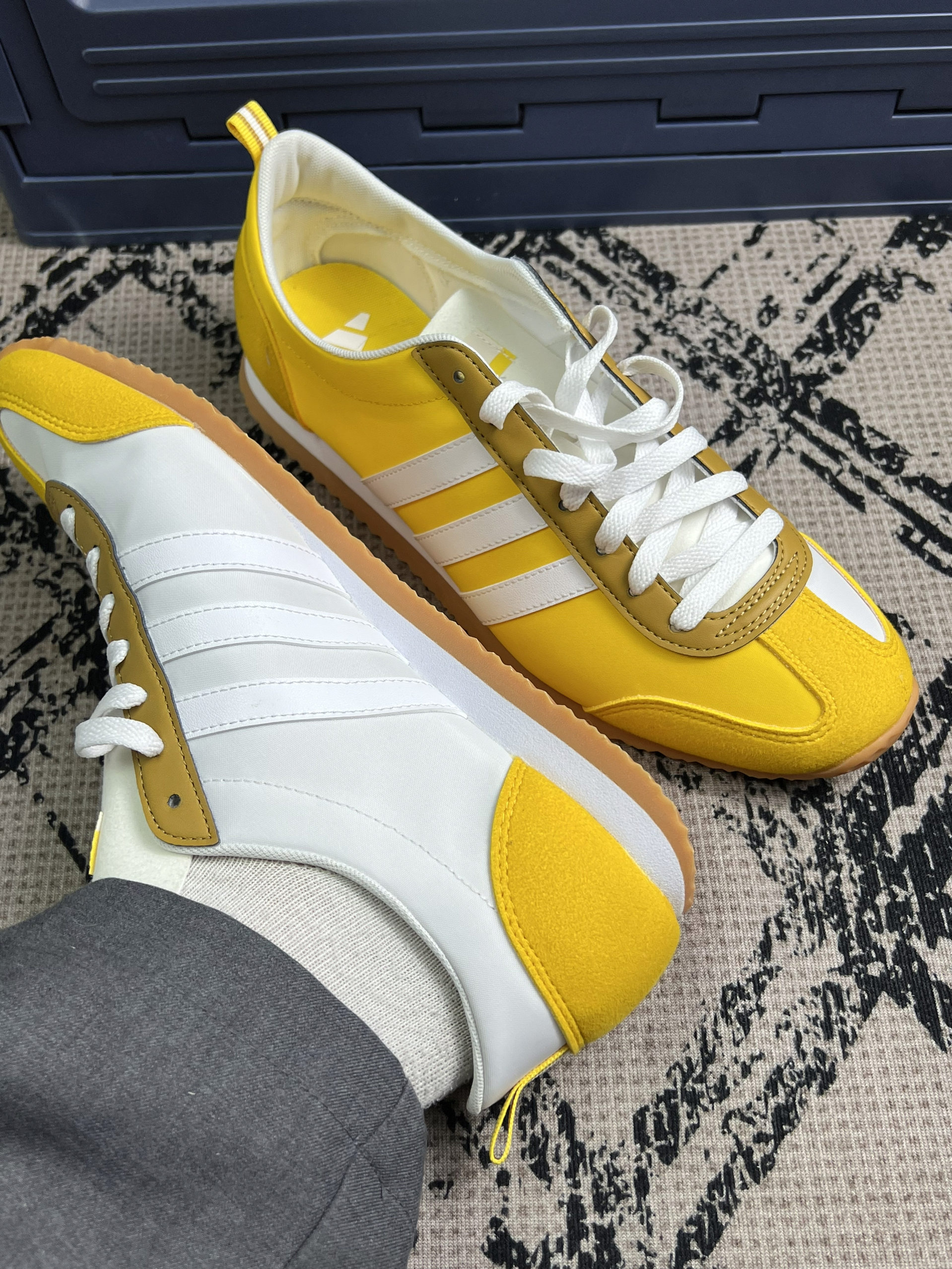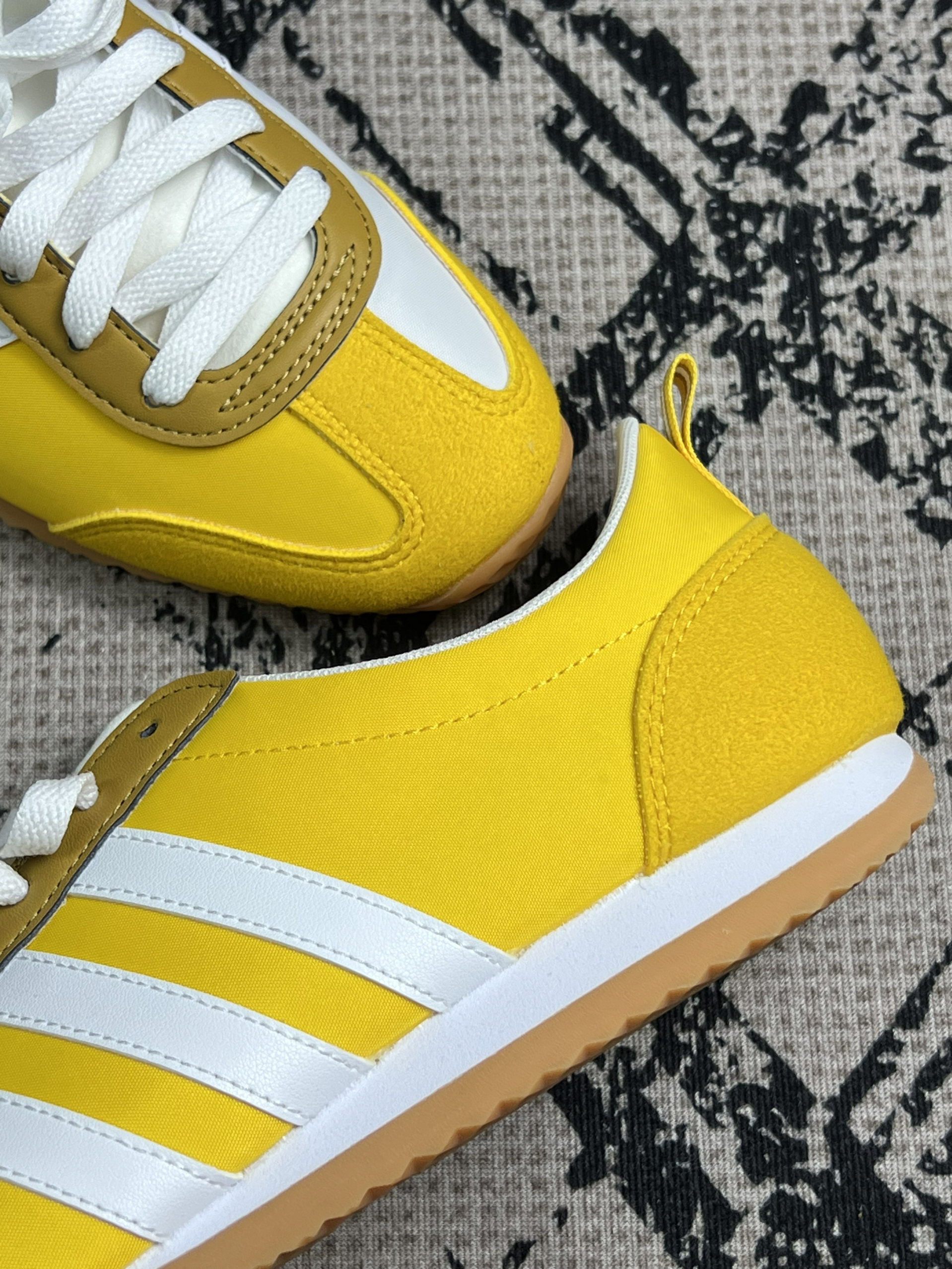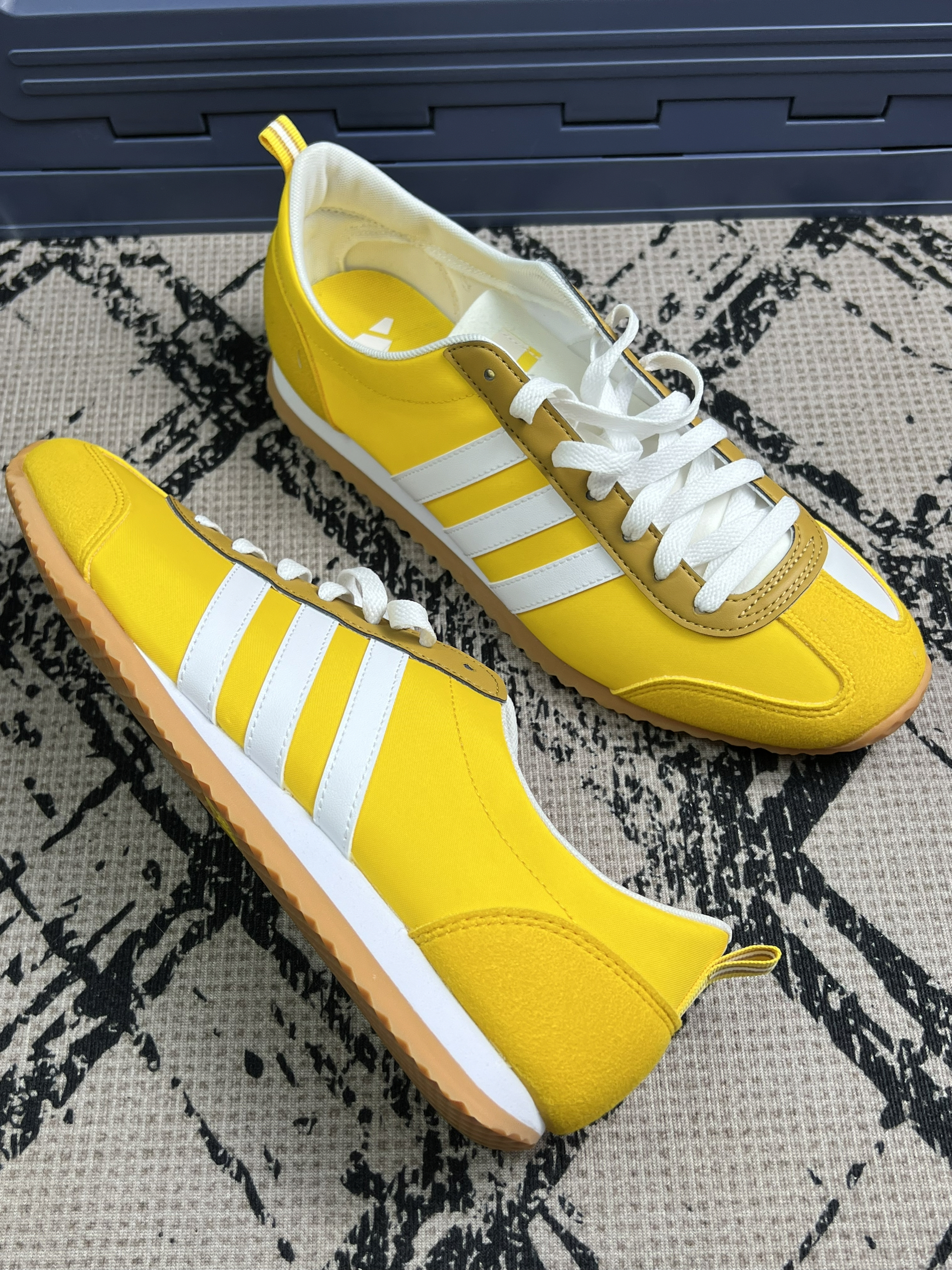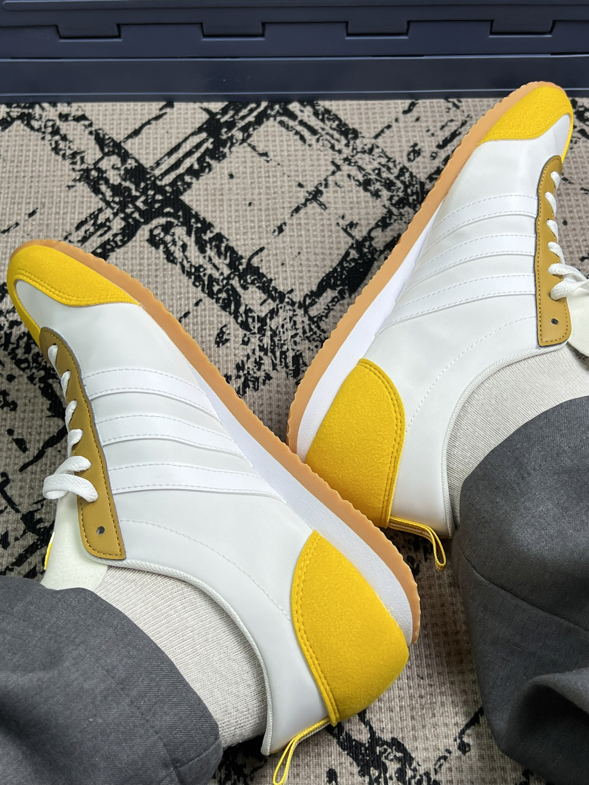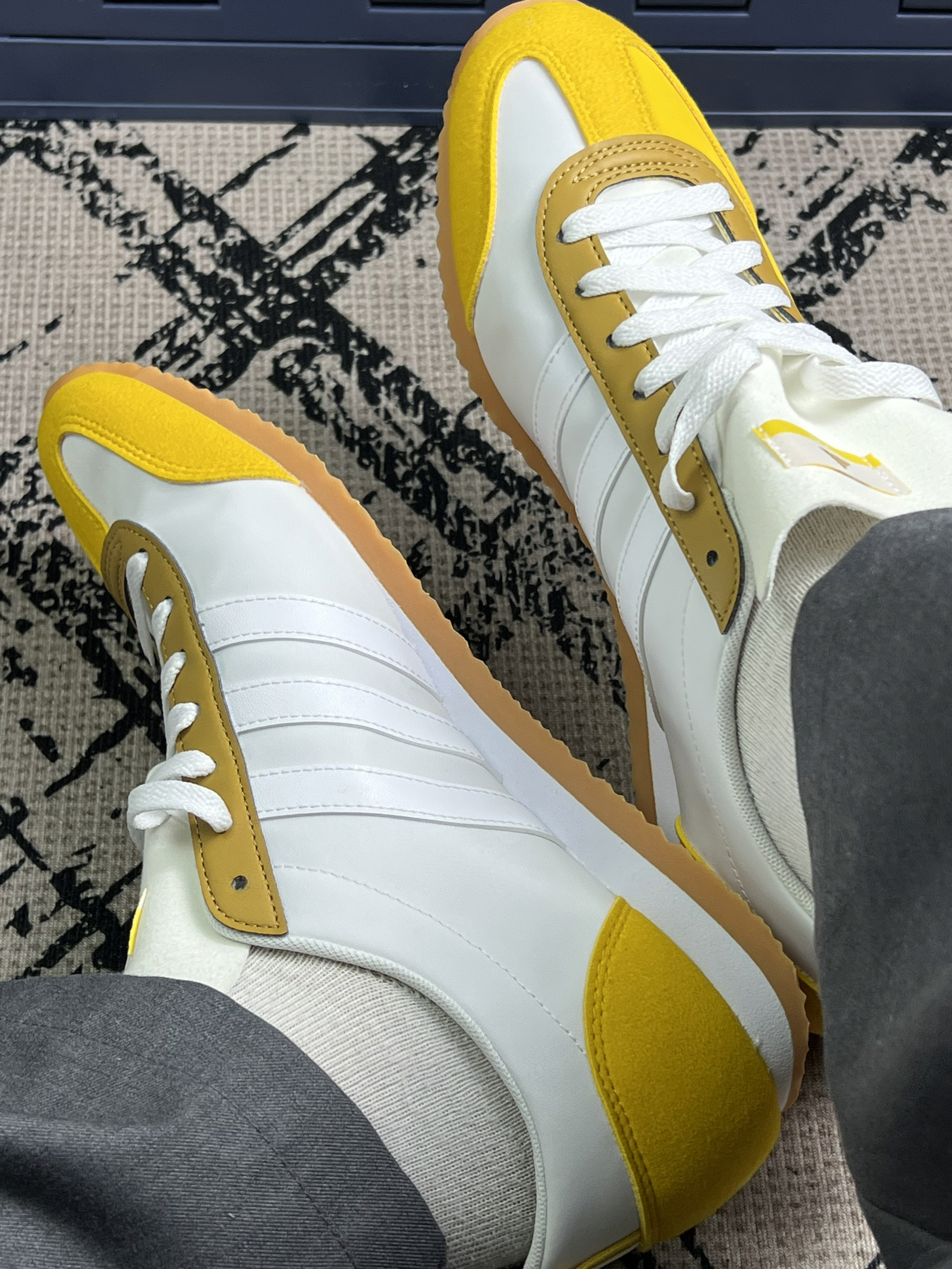 这双黄白配色的鞋子,拿到手第一感觉是颜色挺亮眼,像夏天的阳光☀️。 穿了几天,先说让我愿意留着它的点:鞋型比较复古,配牛仔裤或者短裤都不突兀;重量很轻,走路时脚不会有负担,日常逛公园、买个菜还挺舒服;鞋带是白色的,和鞋身对比明显,系紧了也不容易松。 但缺点也得说清楚:鞋面是那种偏软的布料,下雨天肯定不能穿,一沾水就透;鞋底的胶感有点重,刚开始穿那两天,脚底板磨得慌,得穿厚袜子才能缓解;还有鞋头...