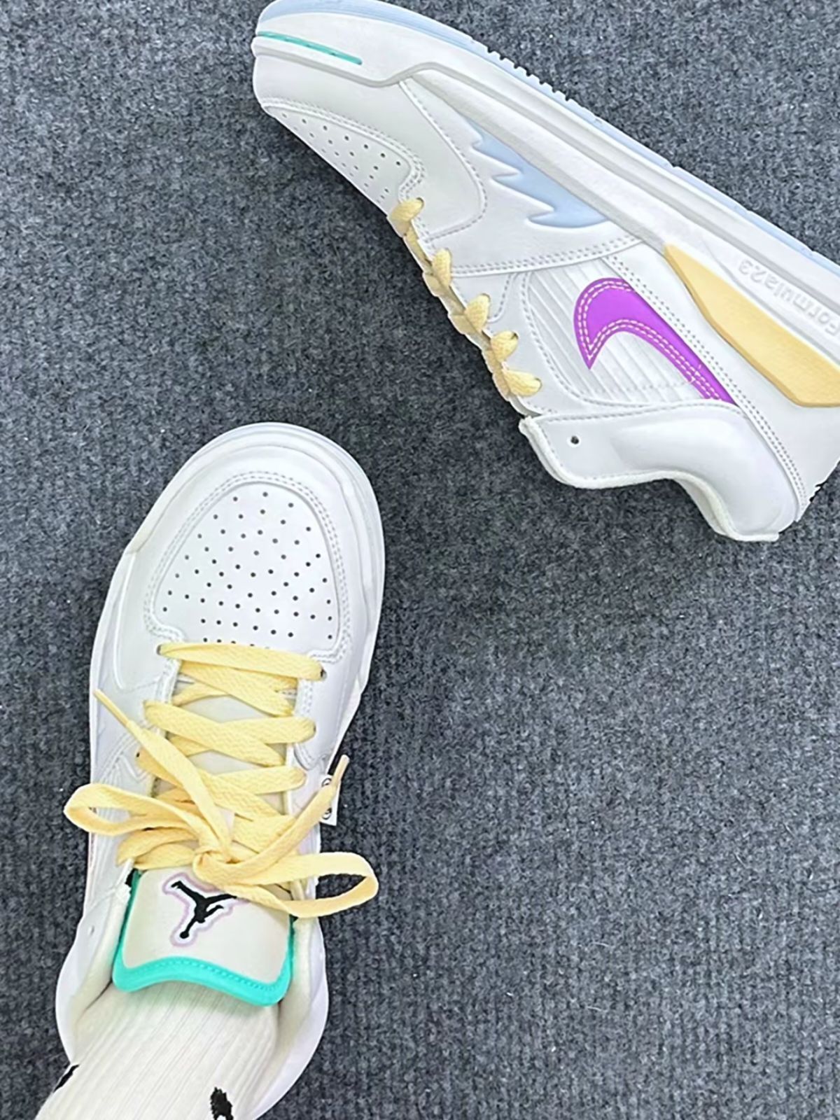 这双白黄蓝的配色很干净 夏天穿显得清爽。上脚后发现比摆着更好看 配浅色衣服挺协调🌟 尺码正,穿着舒适 是双适合日常的亮眼鞋款✨