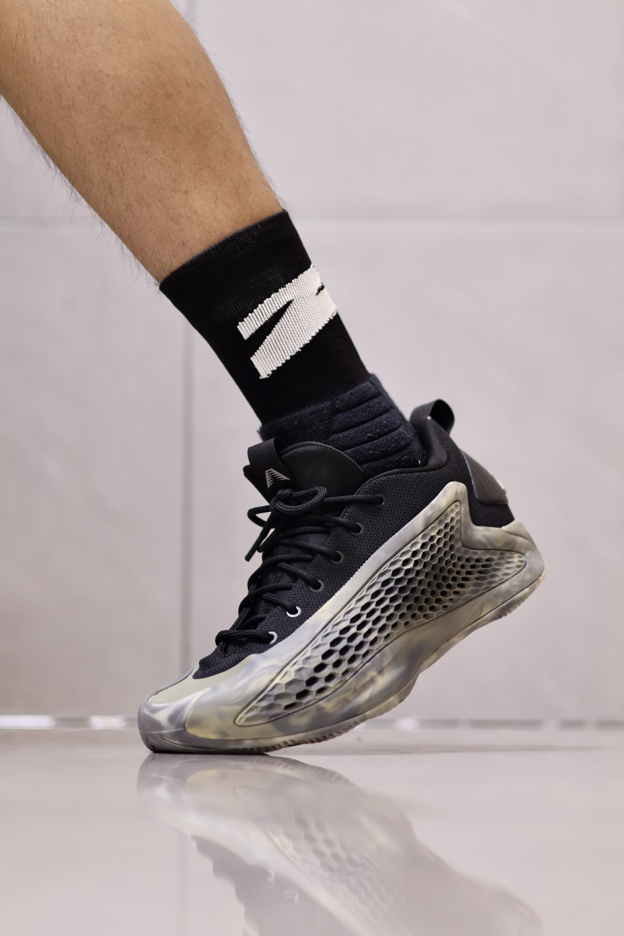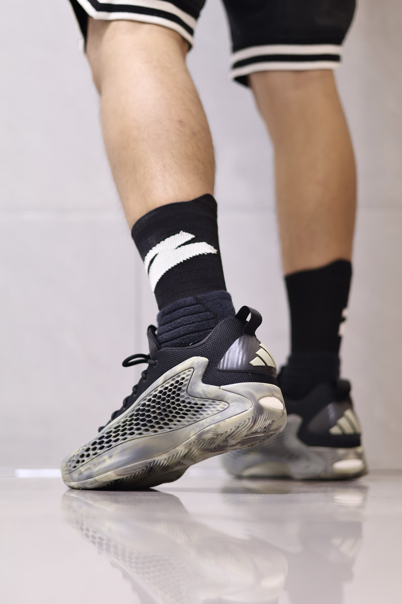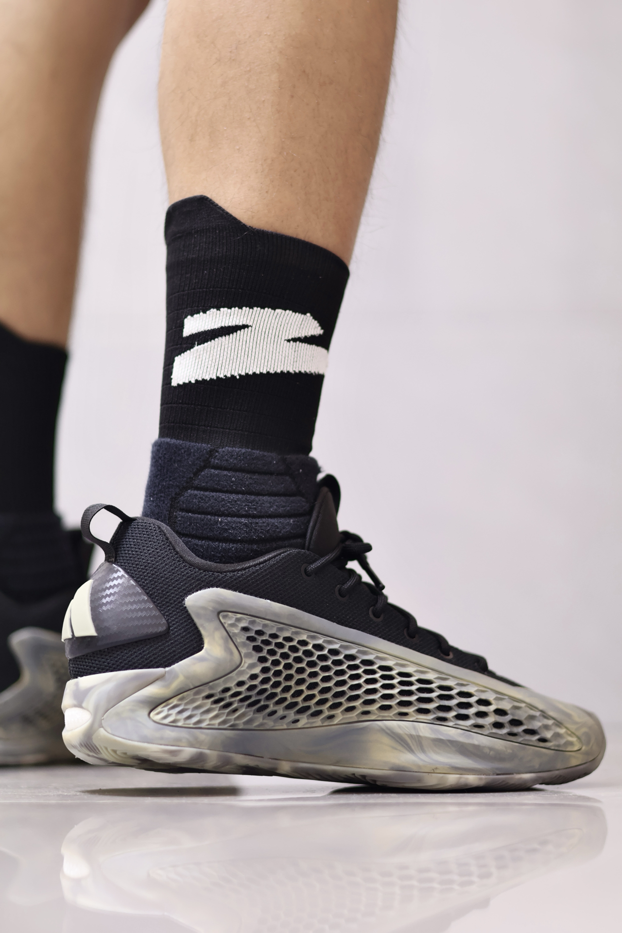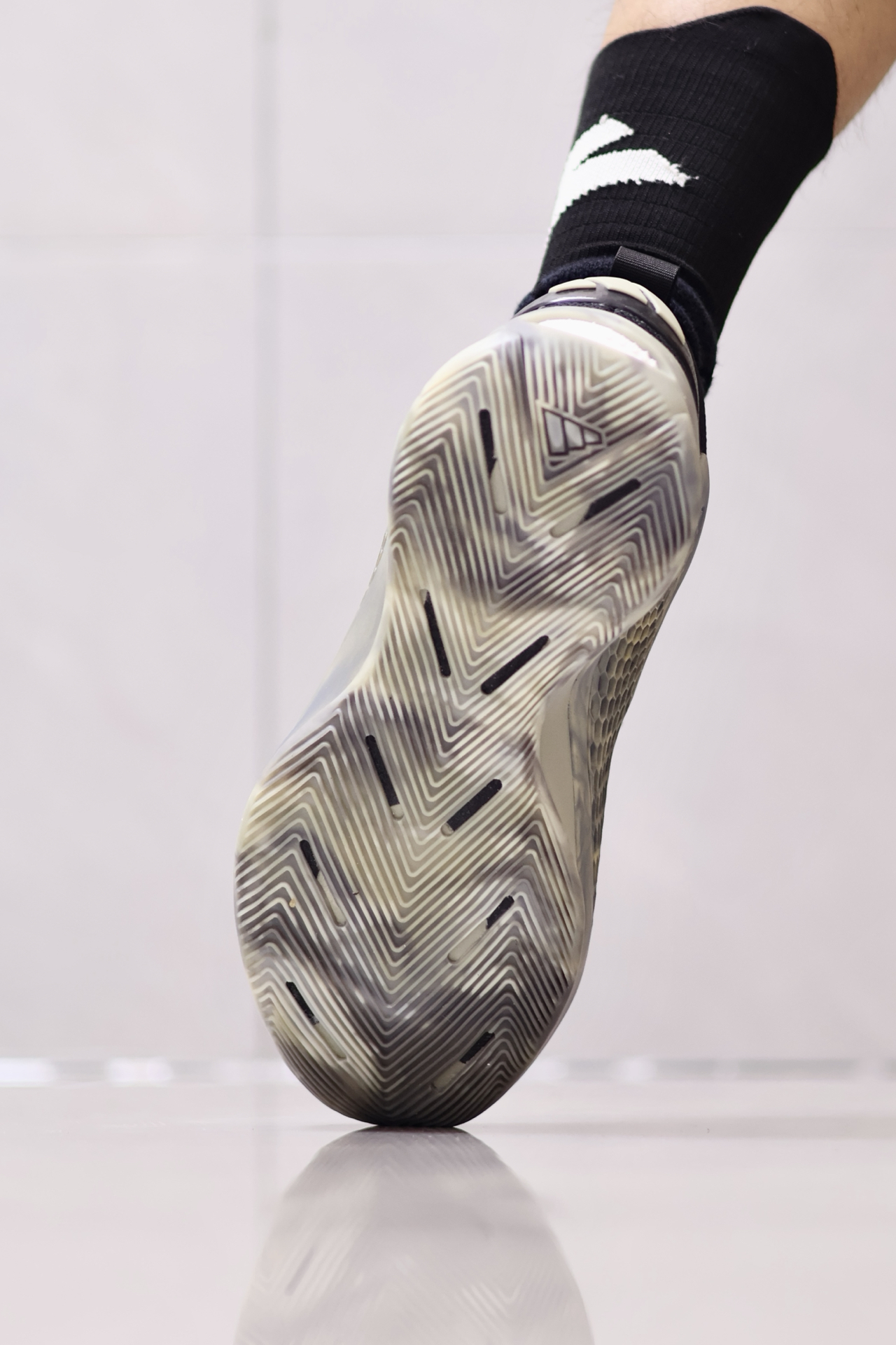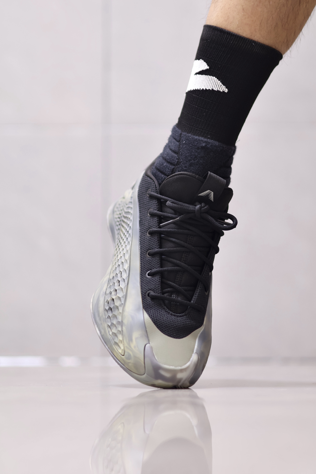 🤔AE1把抗扭板抽掉换成厚一点Boost的话,说不定还真能当成新的“YEEZY850”了。 🔍回到正题,AE1是阿迪签名鞋里包裹数一数二的了✔️,贴合很好,楦型正确不挑脚型。 侧面蜂窝状鞋面是软橡胶的状态,不硬,不卡脚,但侧向支撑稍弱。 🔒防侧翻没有国产公式鞋那么稳,不过也及格了~ 抗扭转没问题💯,全掌抗扭板贴在底部,甚至带来一点板脚的感觉,磨合前有一点顿挫感。 ...