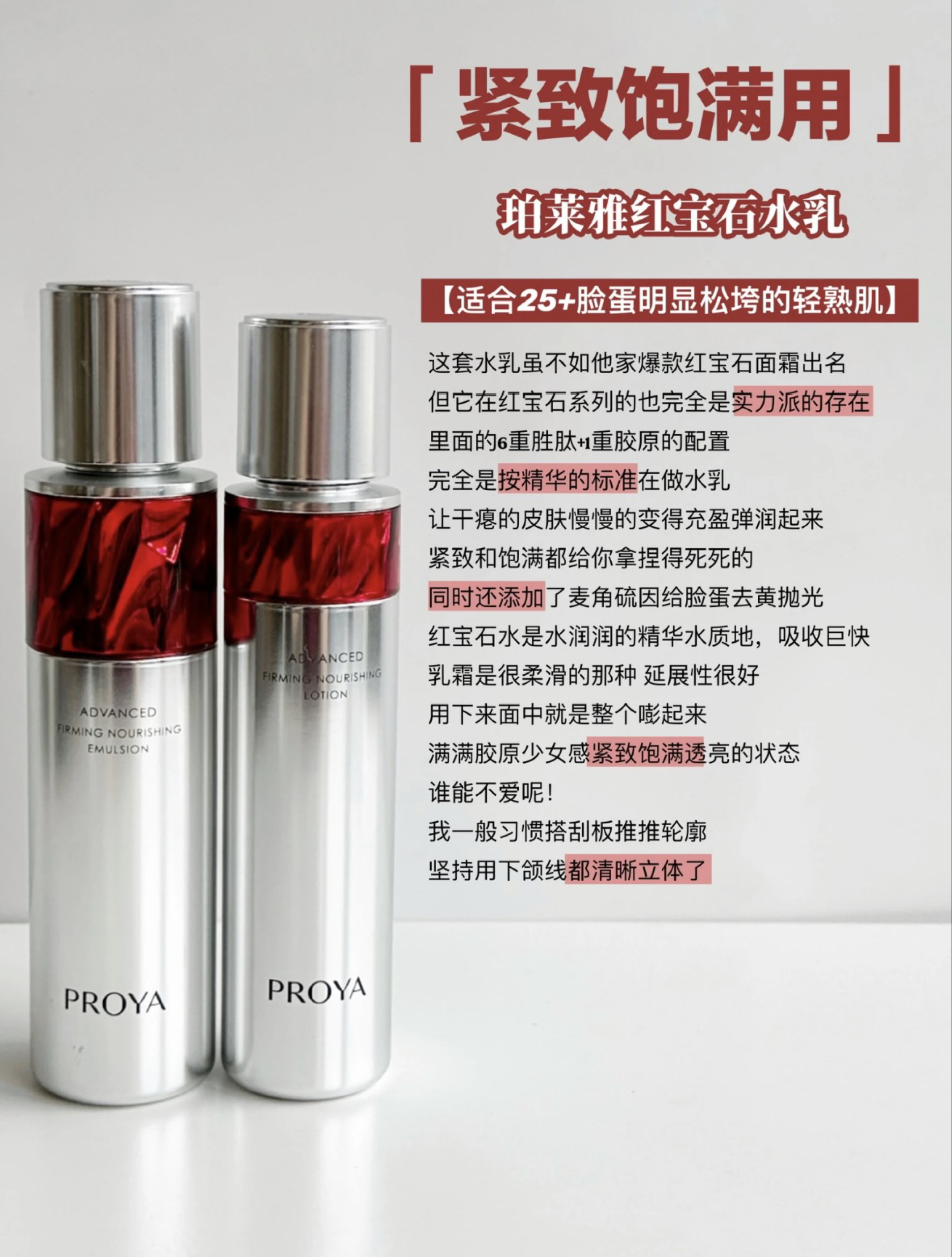 本篇笔记关联了PROYA/珀莱雅 赋能红宝石护肤套装【水+乳】抗皱提拉紧致淡纹饱满鲜颜活肤 【2.0】水120ml+【2.0】乳120ml、HBN 视黄醇双A塑颜精华乳 抗皱焕亮提拉紧致淡化细纹 细腻肌肤、smpcare/溪木源 药用层孔菌护肤套装【水+乳】舒缓修护敏感肌控油保湿混油皮平衡水油 水120ml+乳100ml等商品,为用户提供真实的使用体验和购买参考。