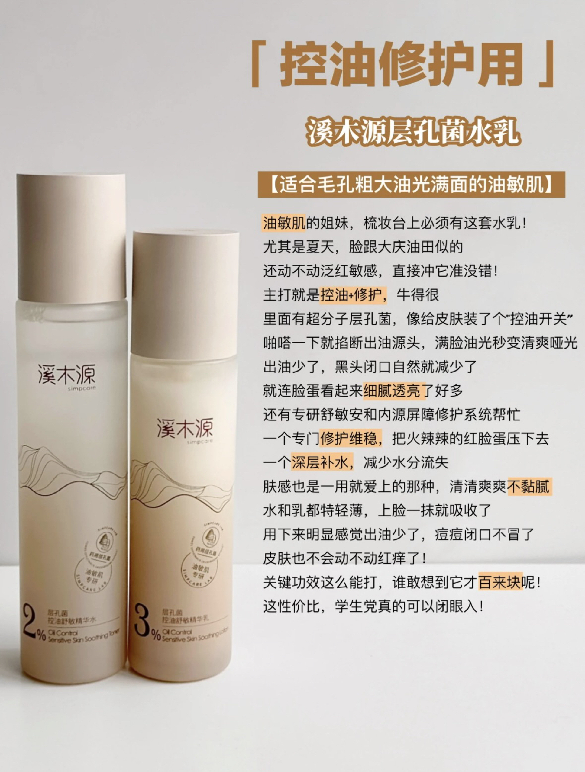 一、溪木源层孔菌水乳——油敏肌天菜 适合肤质:油皮/混油皮/毛孔粗大易泛红肌 • 2%层孔菌水+3%层孔菌乳黄金配比,像给皮肤装"控油开关",T区油光秒变哑光 • 添加专研舒敏安成分,泛红刺痒时湿敷5分钟即刻降温退红 • 百元价位性价比无敌,水质地清透如水,乳液一抹化开不黏腻,夏天用零负担 ------ 二、珀莱雅红宝石水乳——垮脸救星 适合肤质:25+干瘪松垮肌/有抗老需求的轻熟肌 • 6重...