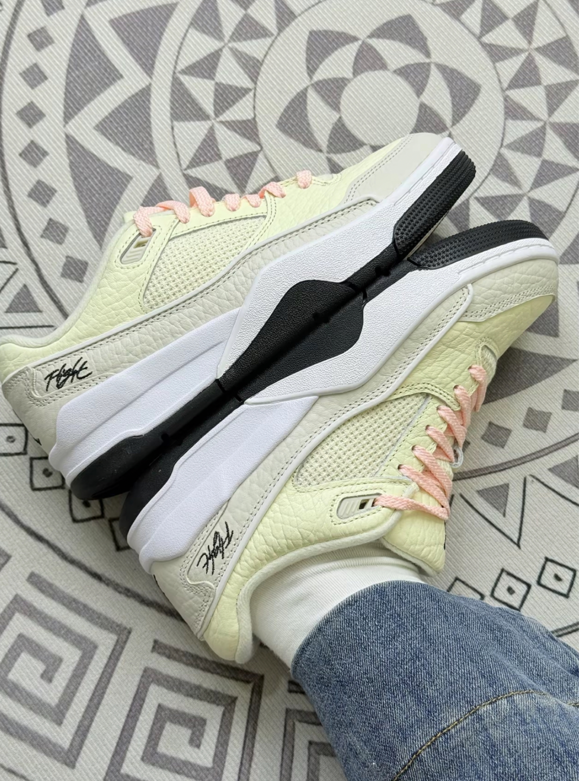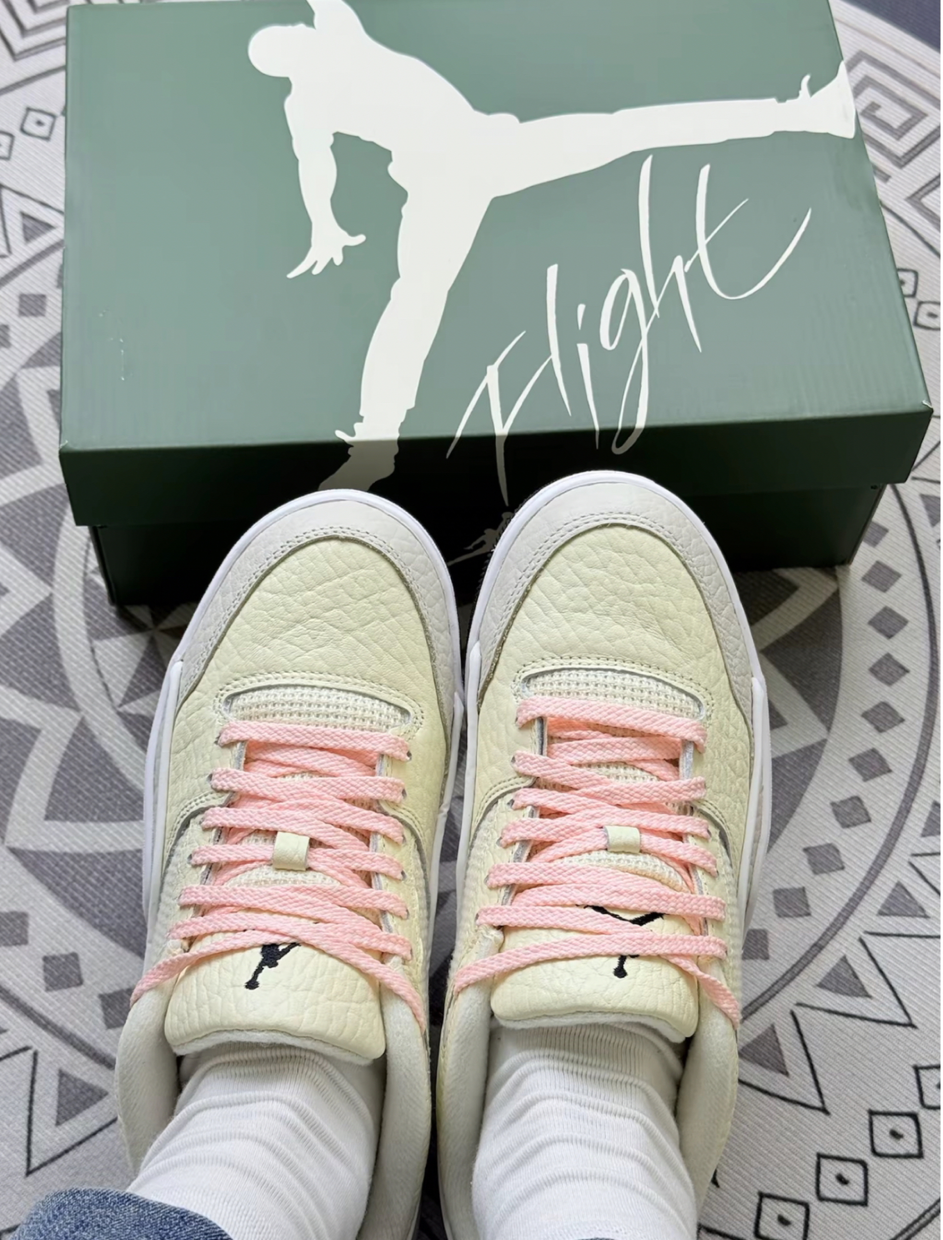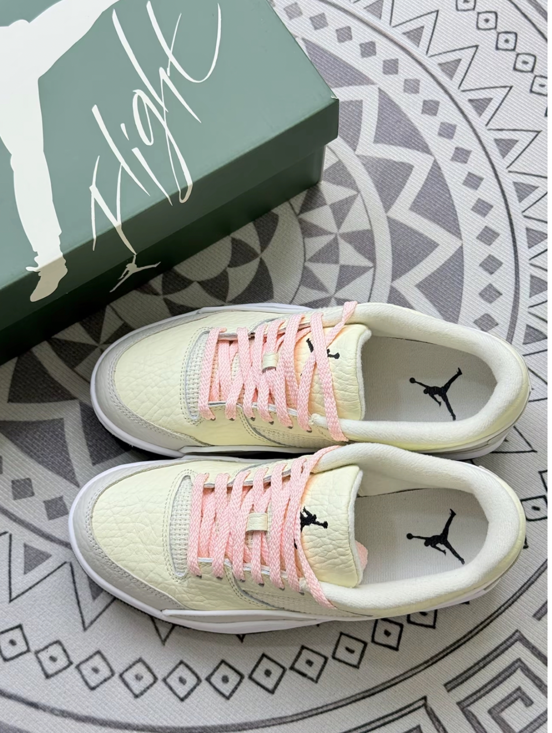 入手这双AJ3有段时间了,说说真实体验。颜色是那种淡淡的奶黄色配浅粉鞋带,视觉上挺清新的,日常搭浅色裤子还不错。 上脚第一感觉,鞋型挺秀气,对脚型的修饰还可以。但有个小缺点,刚穿那几天,鞋舌的贴合度一般,走路时偶尔会有点移位,得适应几天。舒适度方面,中底的缓震属于中等水平,日常逛街、通勤是够用的,要是长时间暴走,脚底板会有点累。 还有鞋盒的设计挺有质感,那个绿色很特别,但鞋盒这东西除了...