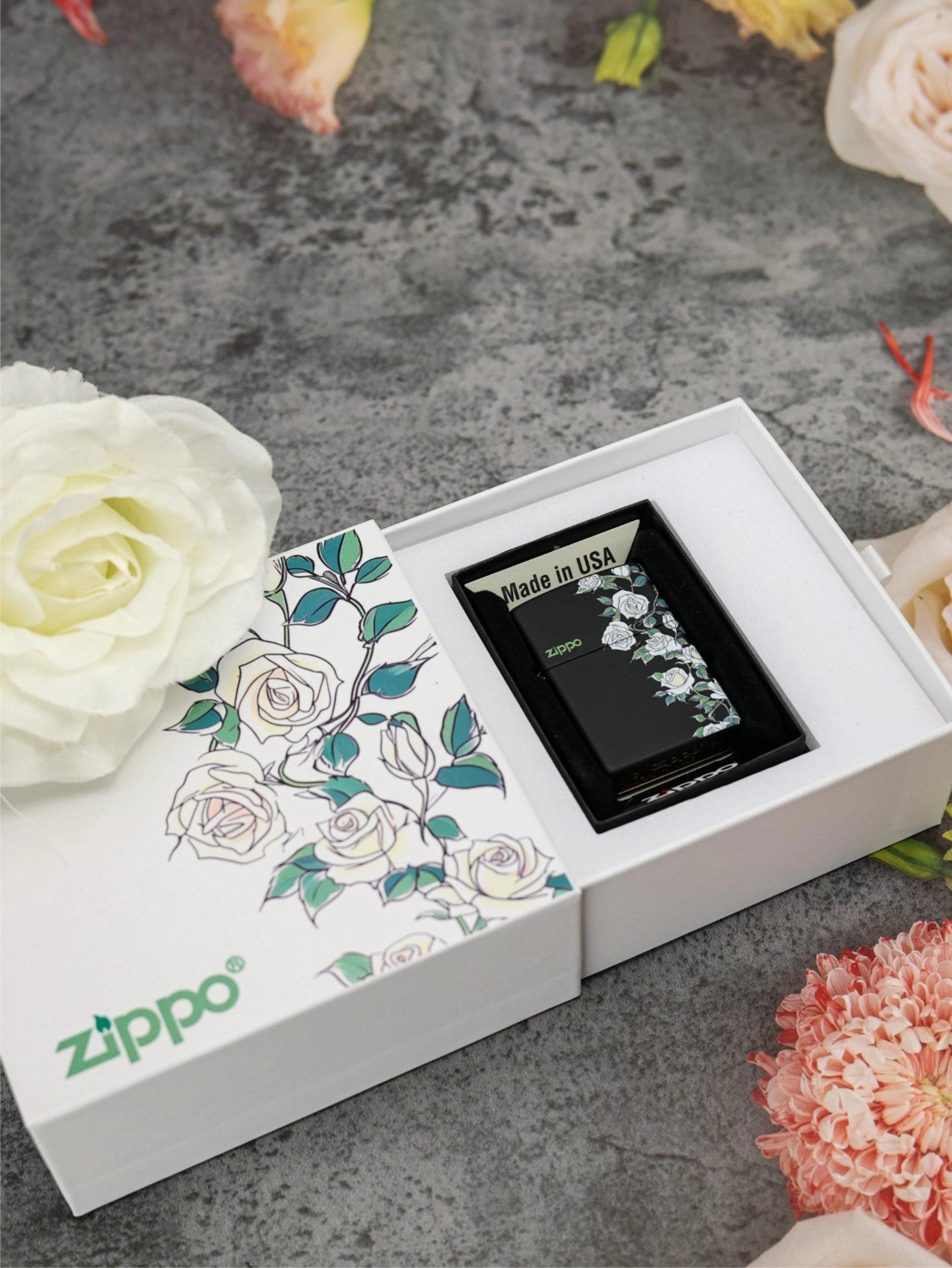 我发现这个打火机还挺适合送礼的~外观是黑底配白玫瑰彩印,拿在手里精致,礼盒也有同风格玫瑰图案,送出去仪式感足。黄铜外壳质感不错,重量50 - 60g左右,日常带身上不重。不过要是追求特别简约风格的,可能会觉得图案有点花哨。我送对象的时候,对方还挺惊喜,说平时点烟或者当摆件都好看,感觉拿来当情侣间小礼物或者纪念日送还蛮合适,能定制的话还能再加些专属感~#ZIPPO点燃热爱 #ZIPPO送礼好物打火机