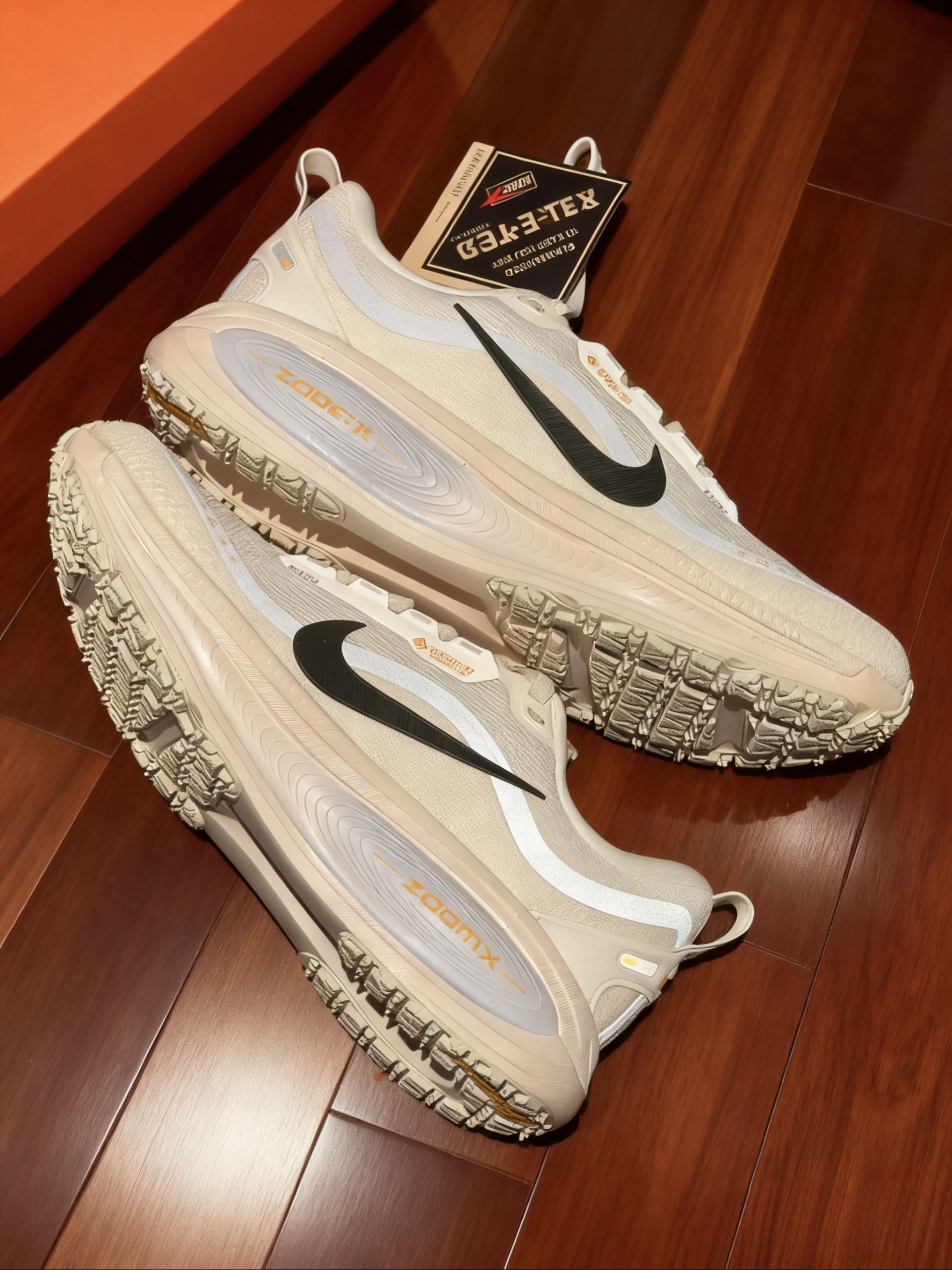 Nike Vomero 18 GORE-TEX真的太懂跑者了🥹 ✅ GORE-TEX防水鞋面 雨天跑步双脚完全不会湿,网眼布透气性也很🉑️ ✅ 全鞋身反光细节 ✅ 双重缓震科技 ✅ 轮胎纹路外底