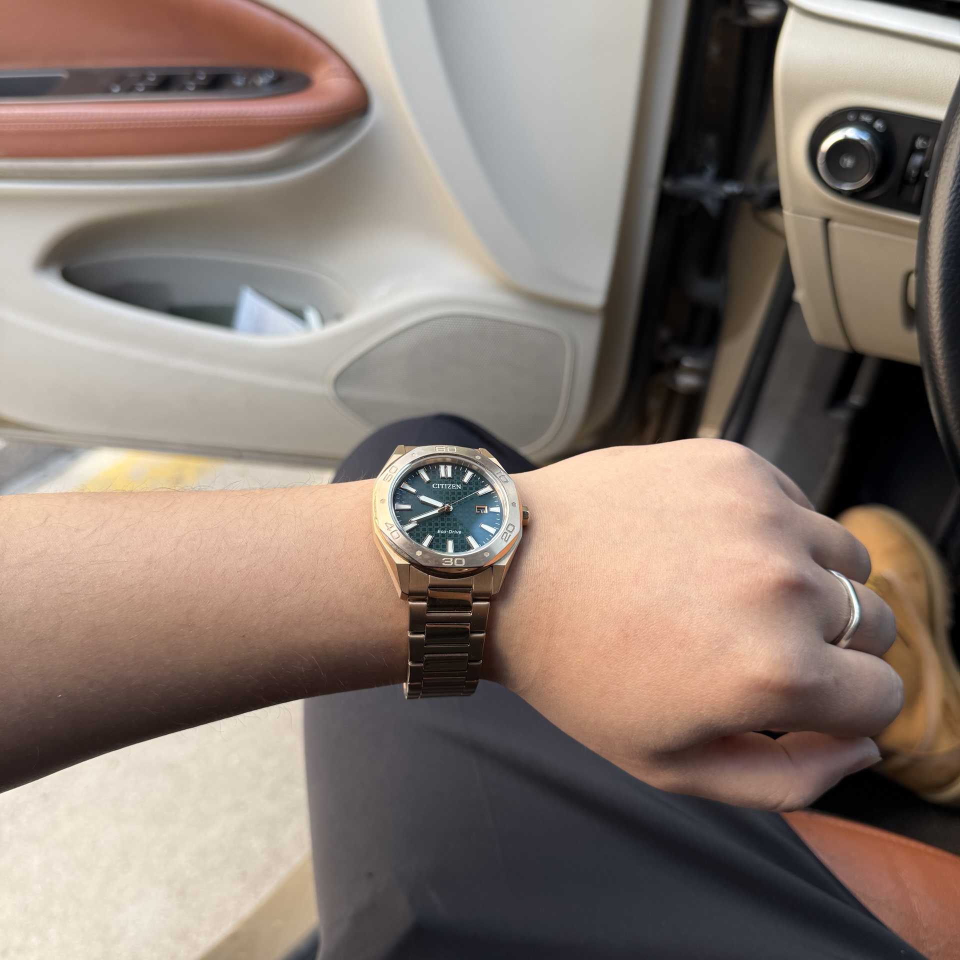 本篇笔记关联了Citizen/西铁城 不锈钢表带100米防水时尚光能石英男士手表 金带绿面 BM7633-81X等商品,为用户提供真实的使用体验和购买参考。