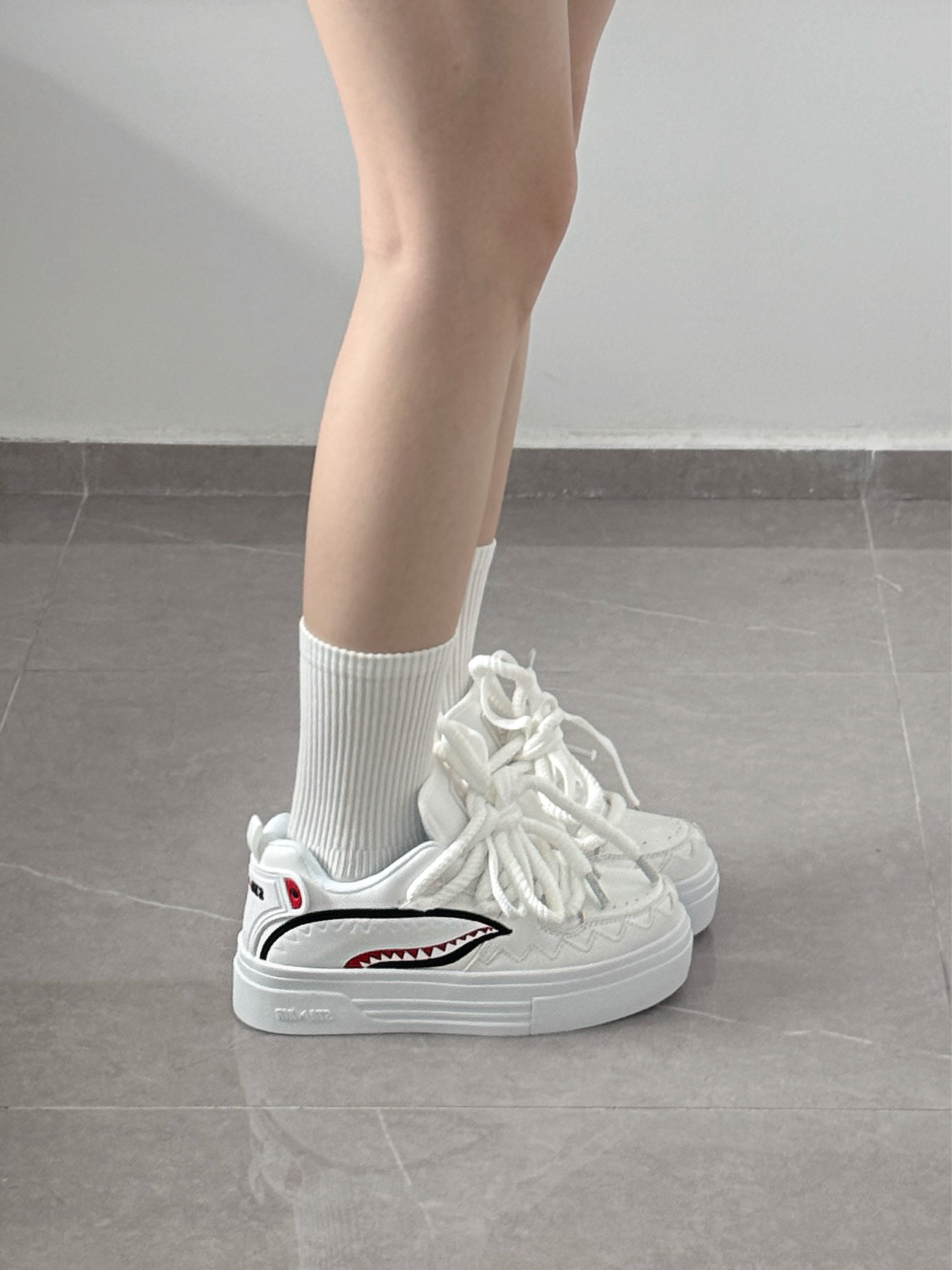 一年四季少不了的小白鞋~ 鲨鱼🦈设计真的好🆒呀! 厚底增高嘎嘎显腿细腿长~ 出门不容易撞款哦✌️ 而且也挺百搭舒服的🥰