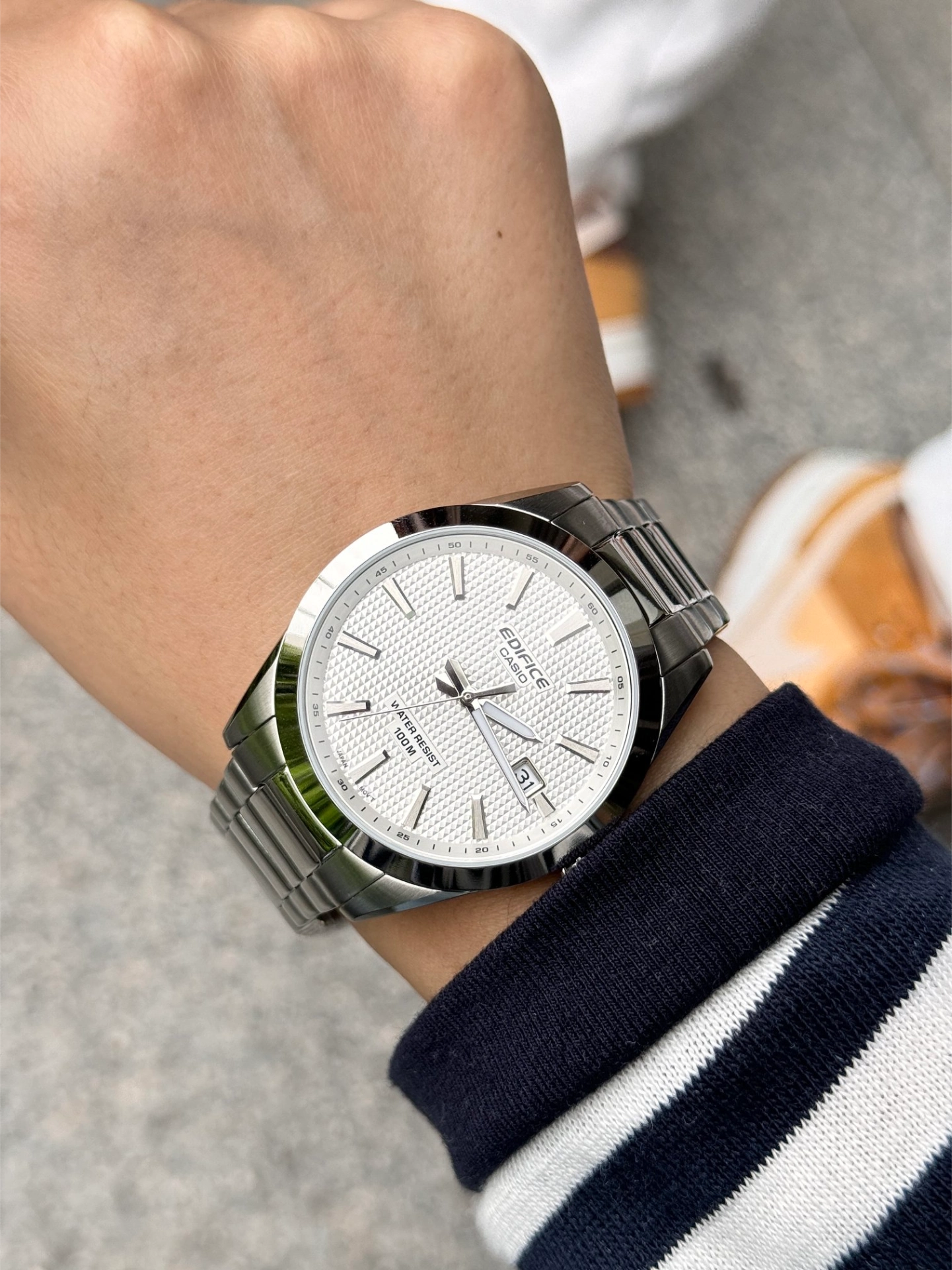 本篇笔记关联了Casio/卡西欧 EDIFICE EFV-160系列 不锈钢表带钉纹盘面轻薄百搭通勤石英男士手表 银白色 EFV-160D-7AVPR等商品,为用户提供真实的使用体验和购买参考。