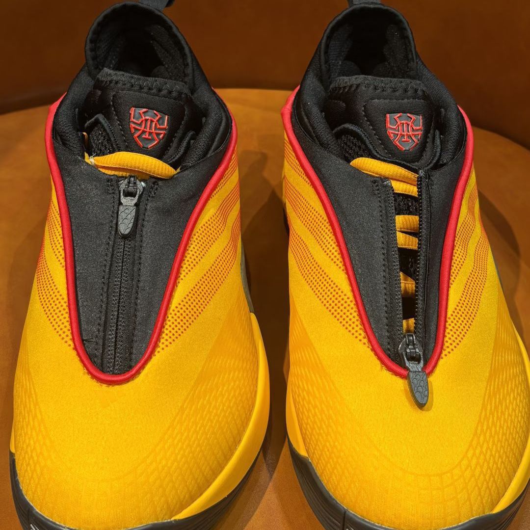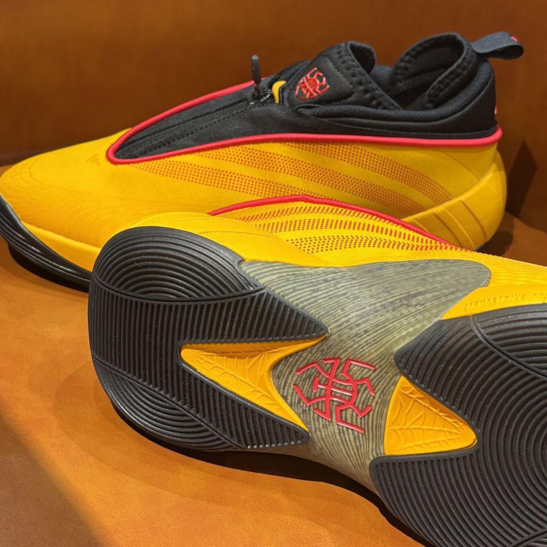 这是我第一次入手一双球鞋却不知道配色叫什么……看到有朋友说灵感来自乒乓球运动,因为米切尔是位乒乓球爱好者。鞋身黄色代表了乒乓球的颜色,黑色和红色是乒乓球拍的正反面,中底TPU则是模拟了乒乓球拍木柄的颜色和纹理。不过好像又不太确定,鞋身有用的信息就是“黄 黑 红”配色和鞋后跟提环上的“spike”字样,所以这双米切尔7的配色灵感来源哪???