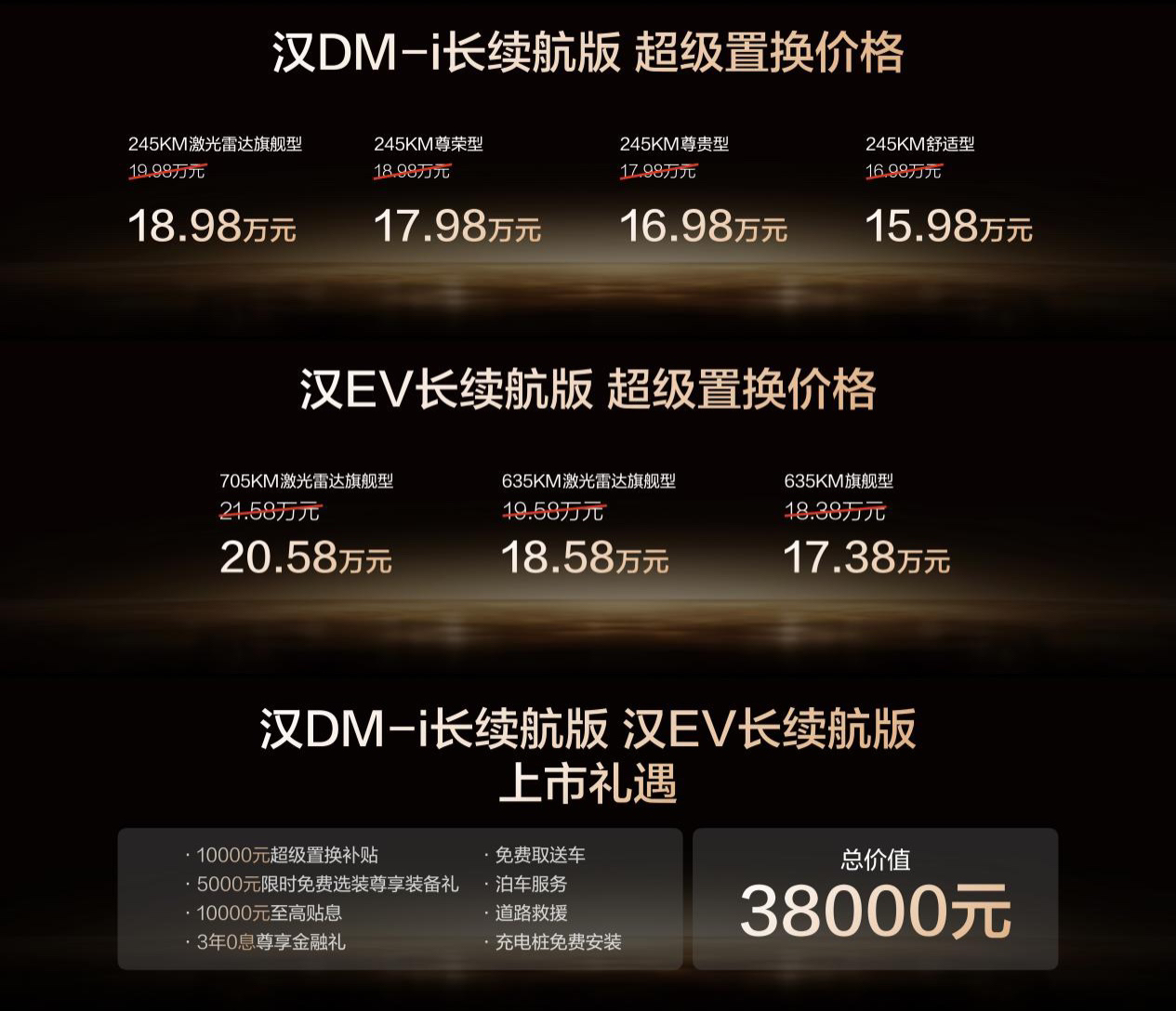 🚗比亚迪汉长续航版正式上市啦!这次新车在续航、配置、颜值、智能等方面全面进阶,价格也相当能打——补贴后15.98万元起,属实让人心动啊! 🔋汉DM-i长续航版纯电续航提升到245公里,亏电油耗低至3.44L,跨省出行基本告别焦虑;汉EV版续航最高达705公里,百公里电耗才10.6度,比不少小车还省! 🎨外观新增雾凇金、松影绿、远峰蓝三款高颜值车色,内饰也升级了激光拉丝面板、电子怀挡、智能冷暖冰...