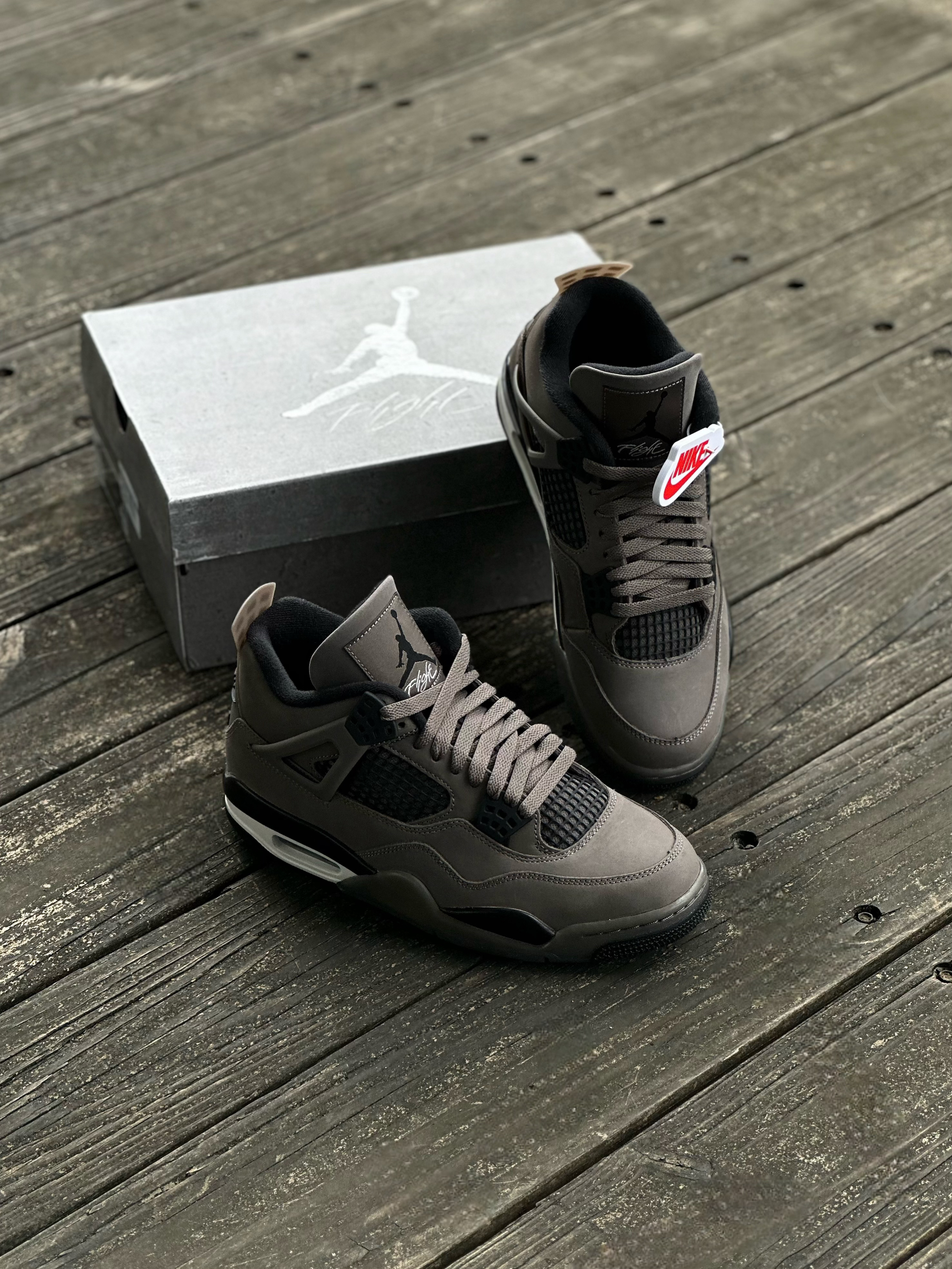 不得不说现在可真是穿AJ4的好时候了, 放到以前动不动就是溢价! 这个月刚发售的这双AJ4 "Cave Stone and Black", 棕黑配色+麂皮鞋面的组合就很契合秋冬, 而且像这样的暗色系也是蛮好穿搭的 男女同款,感觉拿去搭情侣鞋也挺不错!
